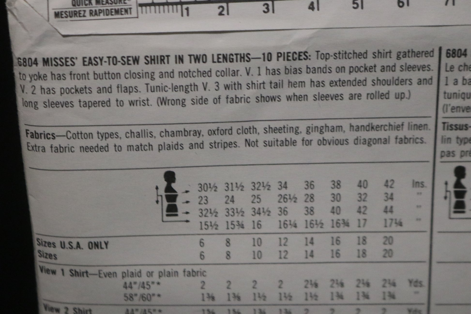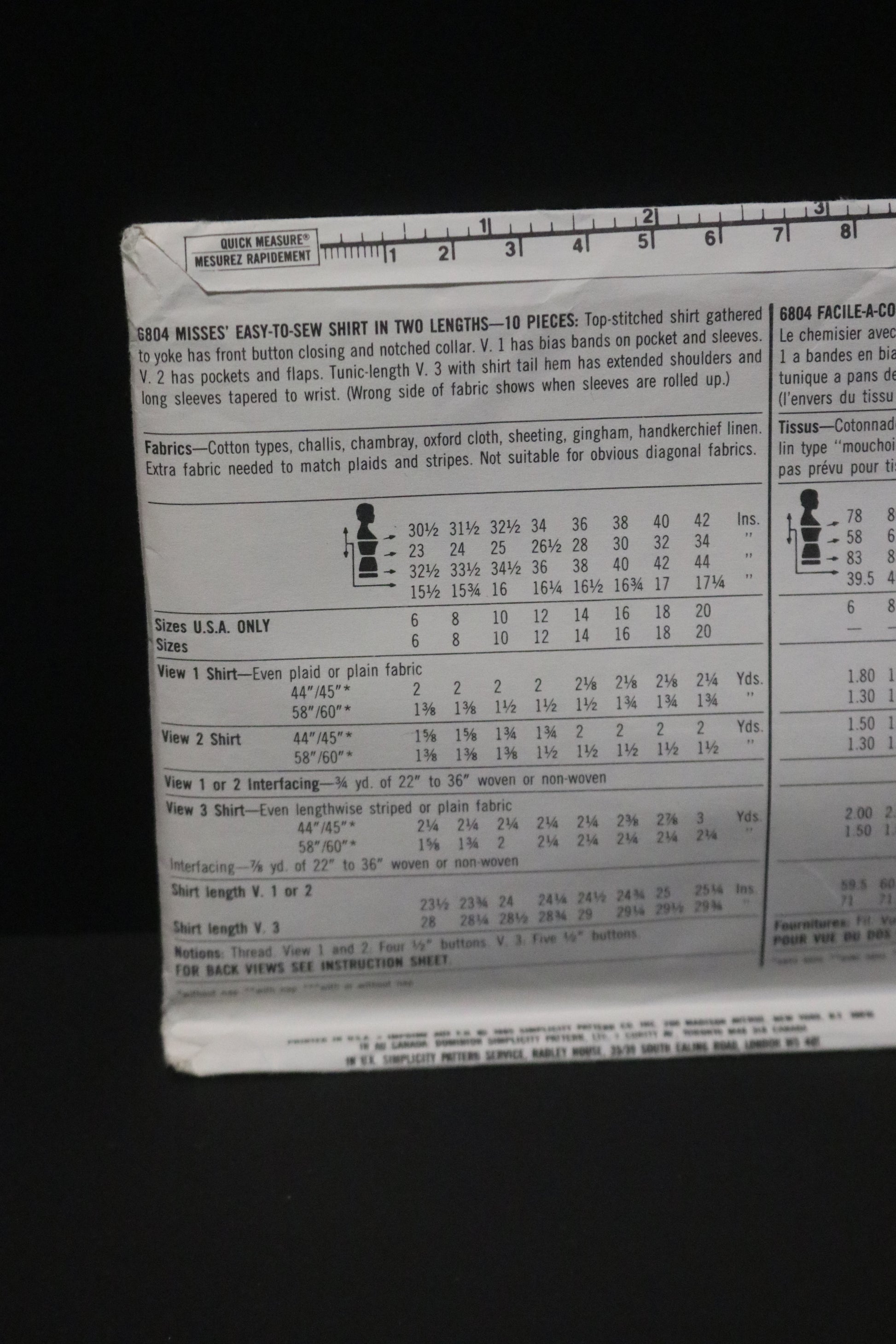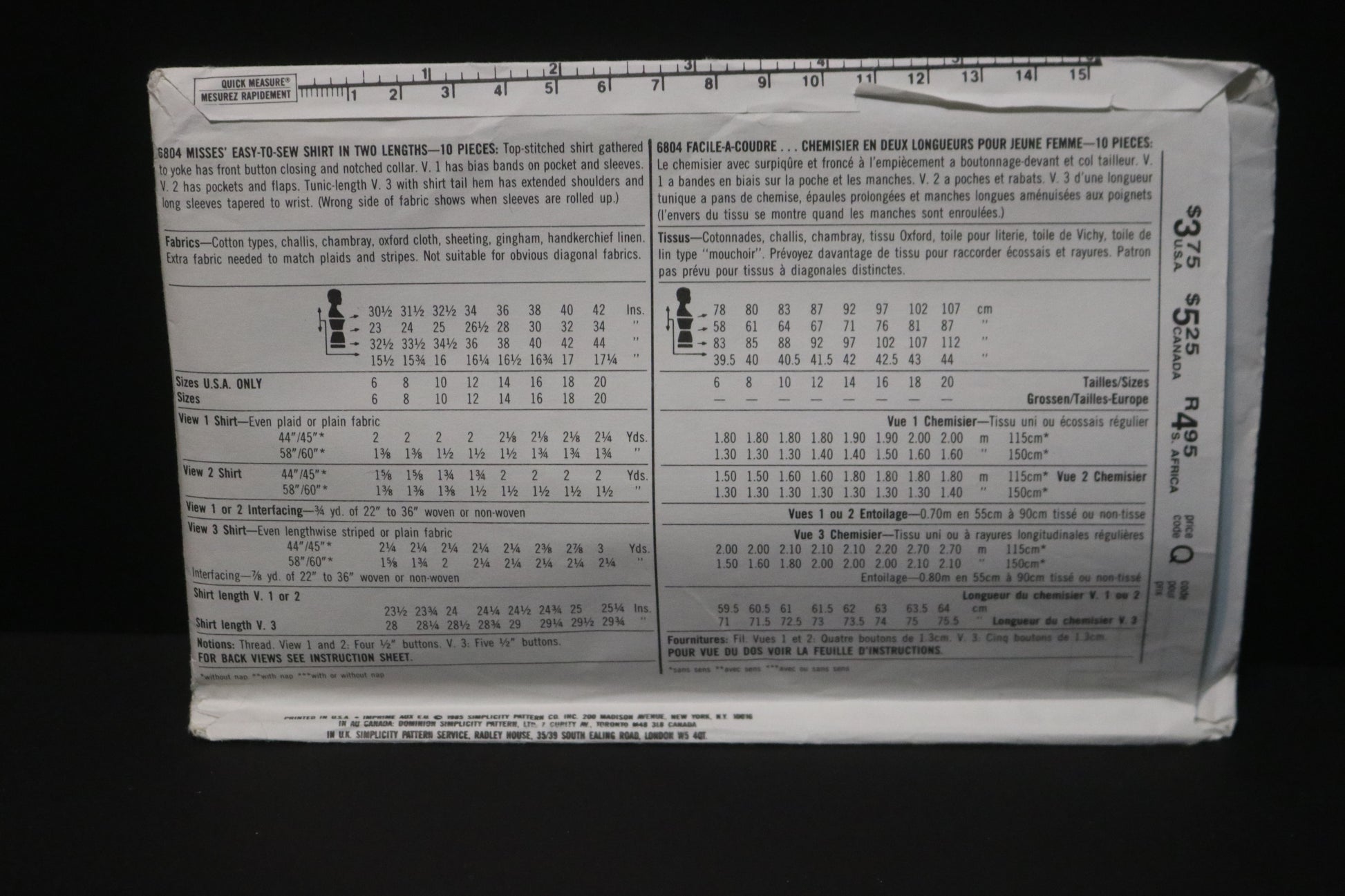 Simplicity 6804 Misses Easy to Sew Shirt in Two Lengths Sewing Pattern UNCUT Size 6 8 10