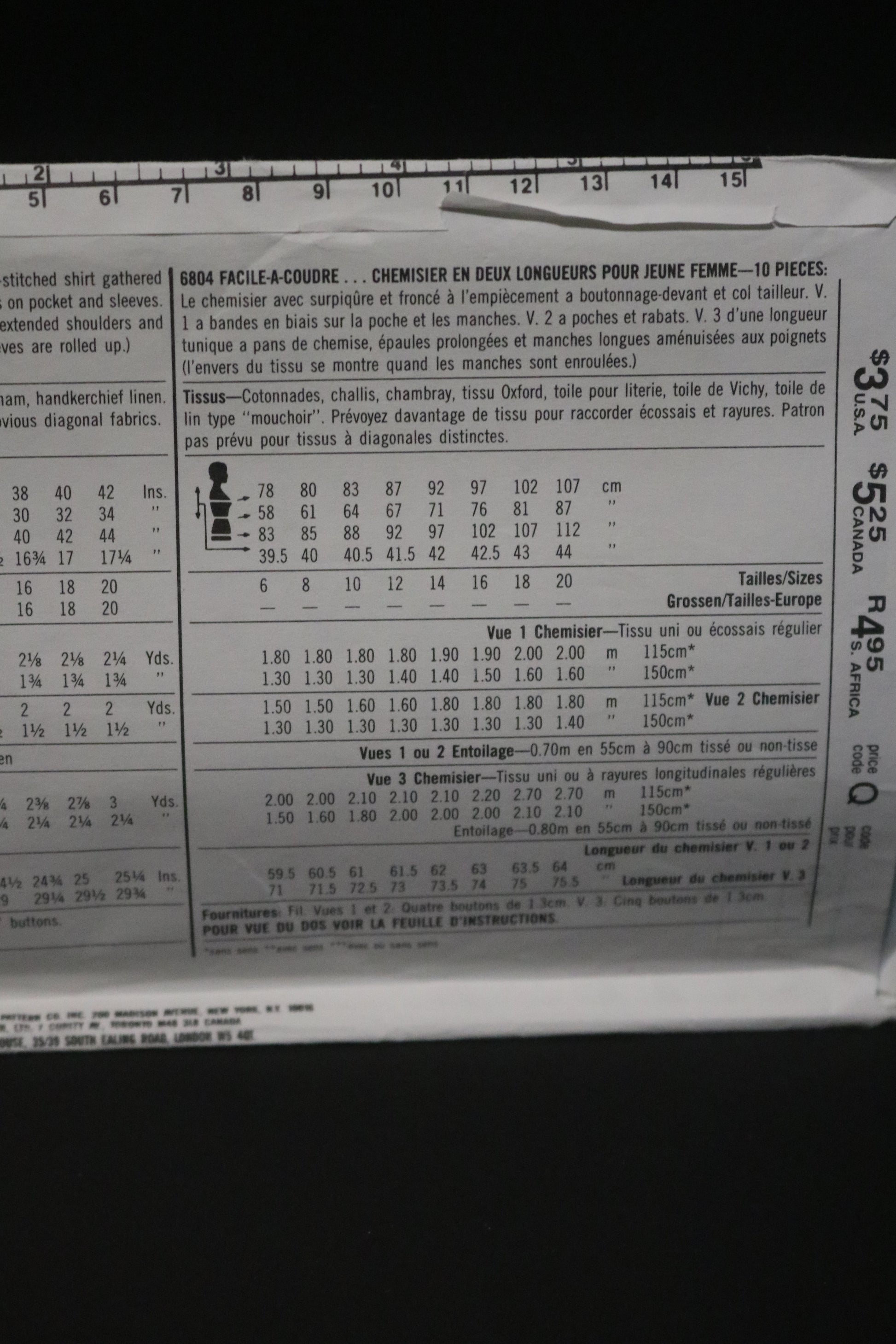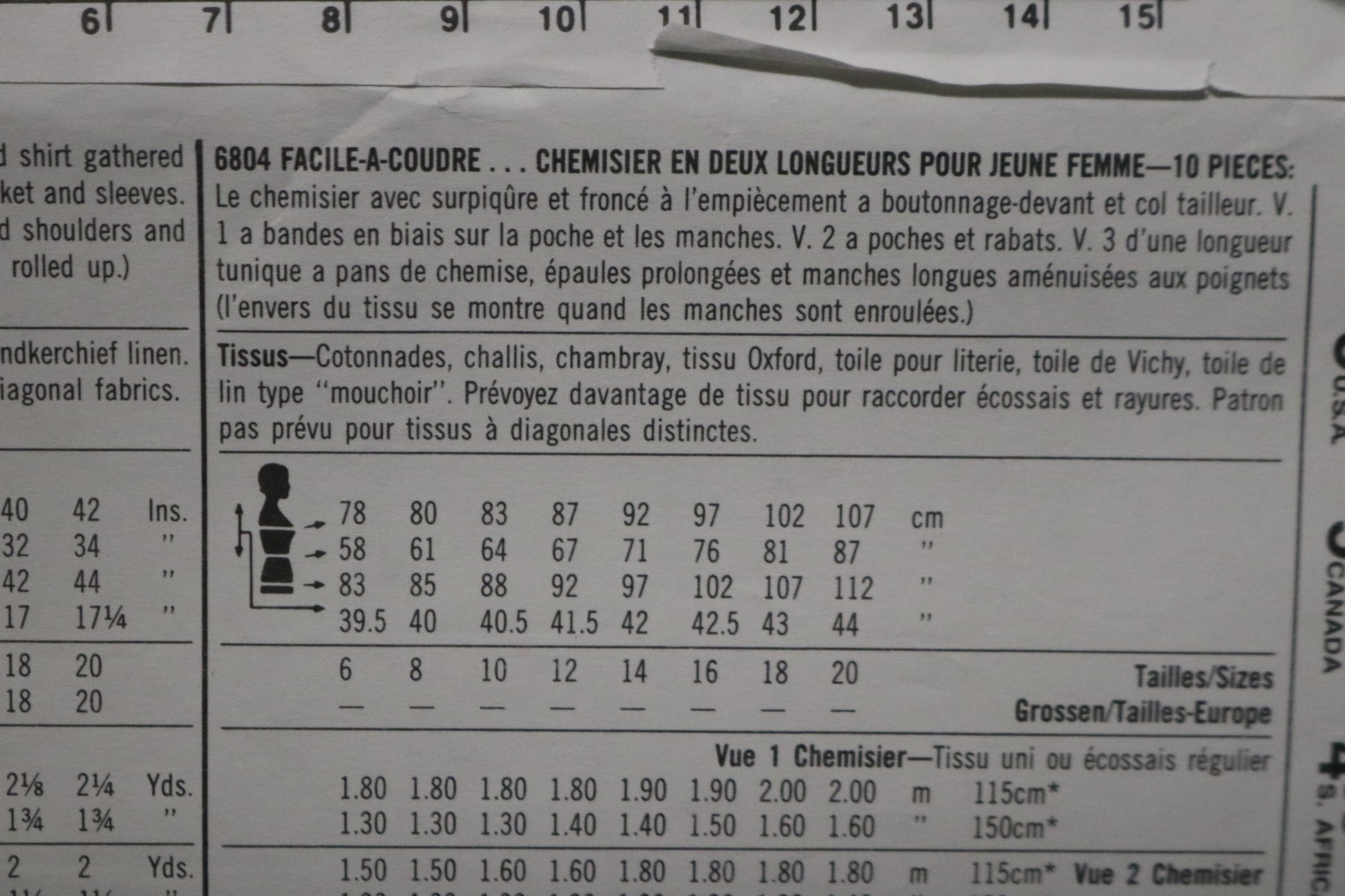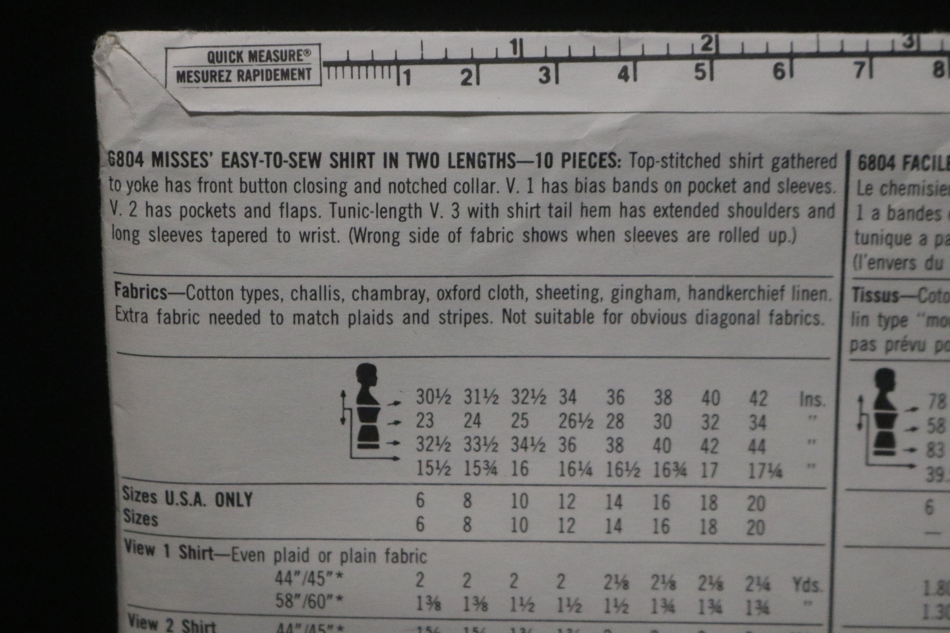 Simplicity 6804 Misses Easy to Sew Shirt in Two Lengths Sewing Pattern UNCUT Size 6 8 10