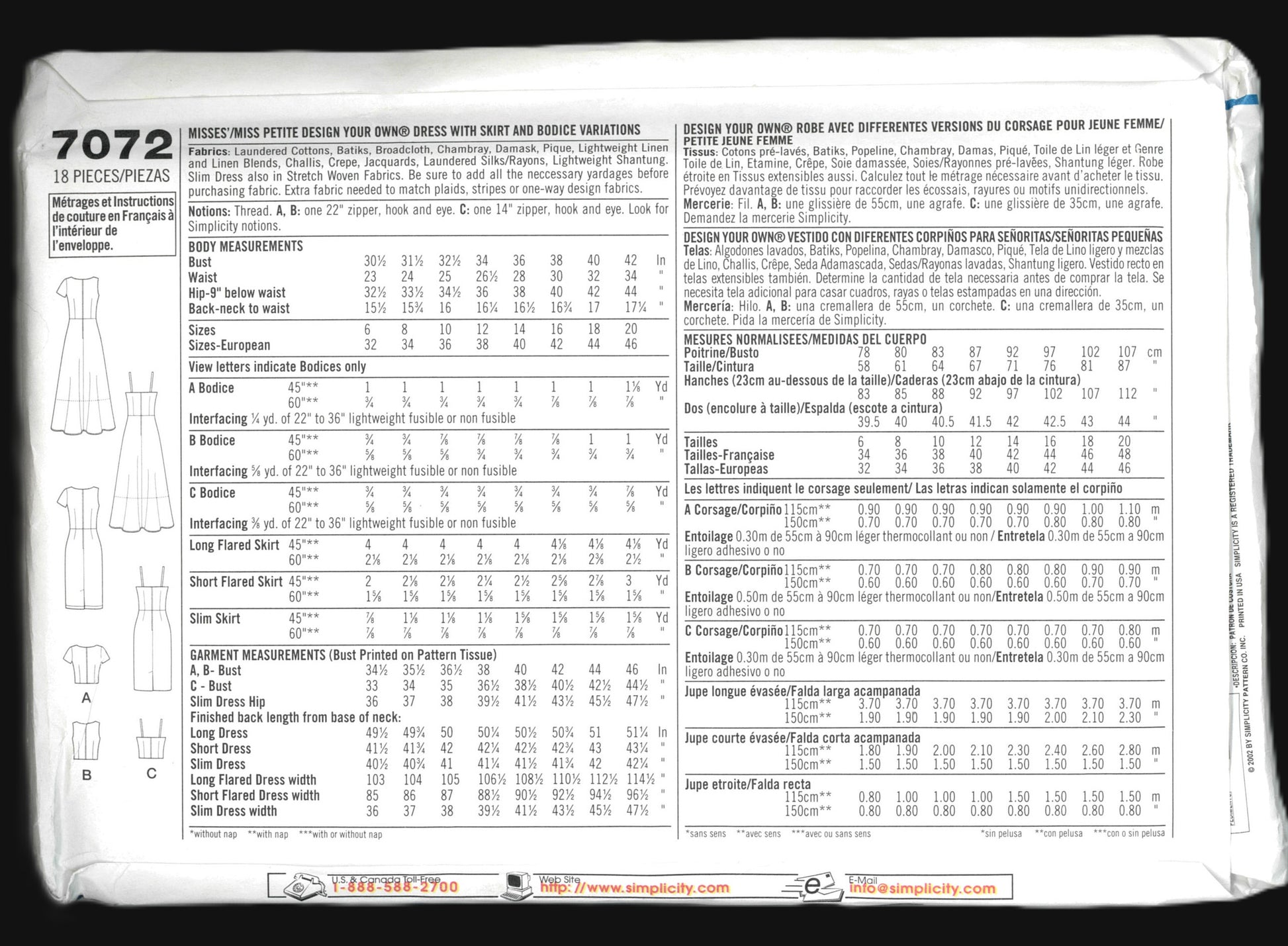 Simplicity 7072 Misses / Miss Petite Design Your Own Dress with Skirt anf Bodice Variations Sewing Pattern