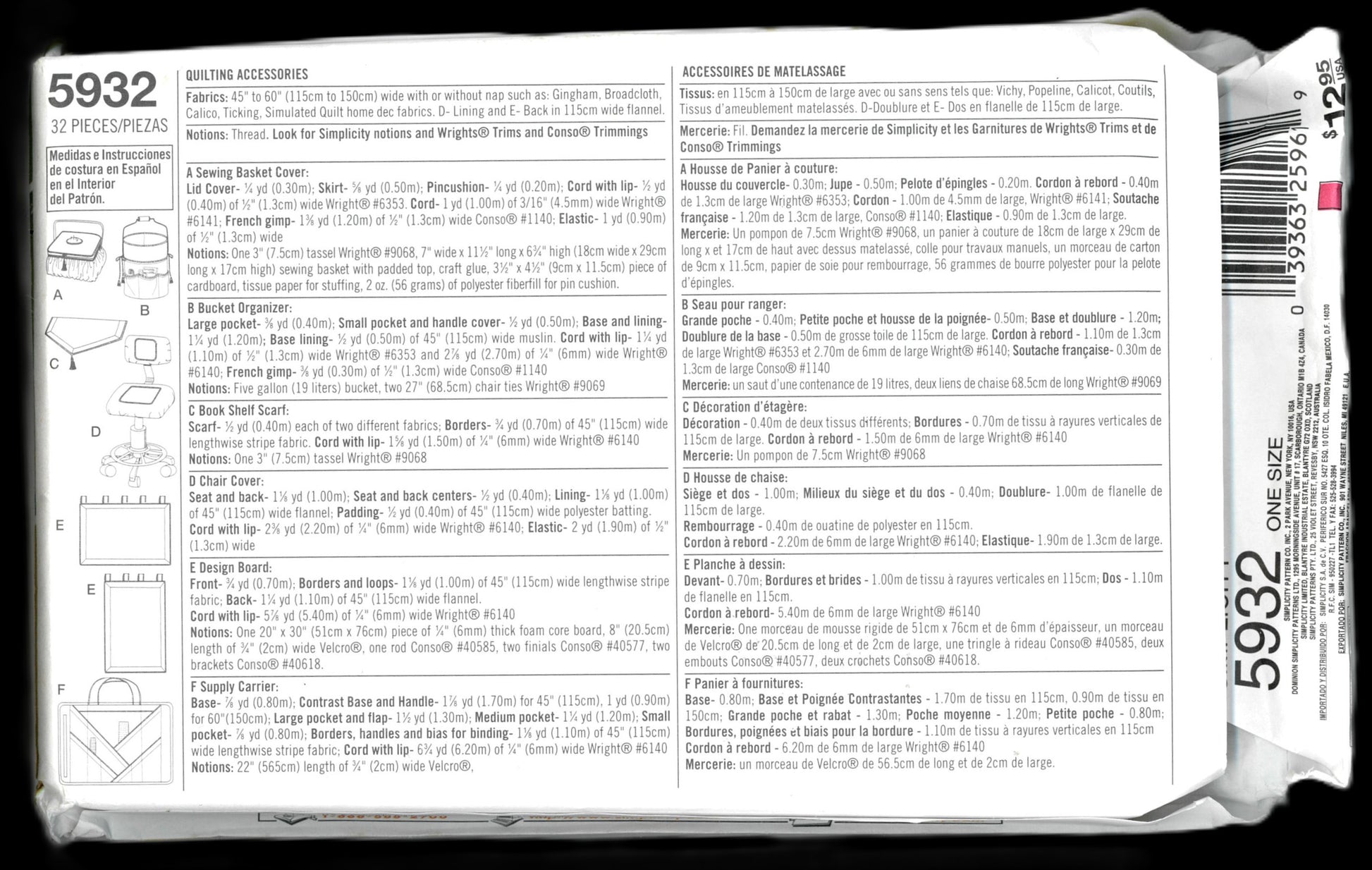 Simplicity 5932 Shirley Botsford Quilted Accessories Sewing Pattern