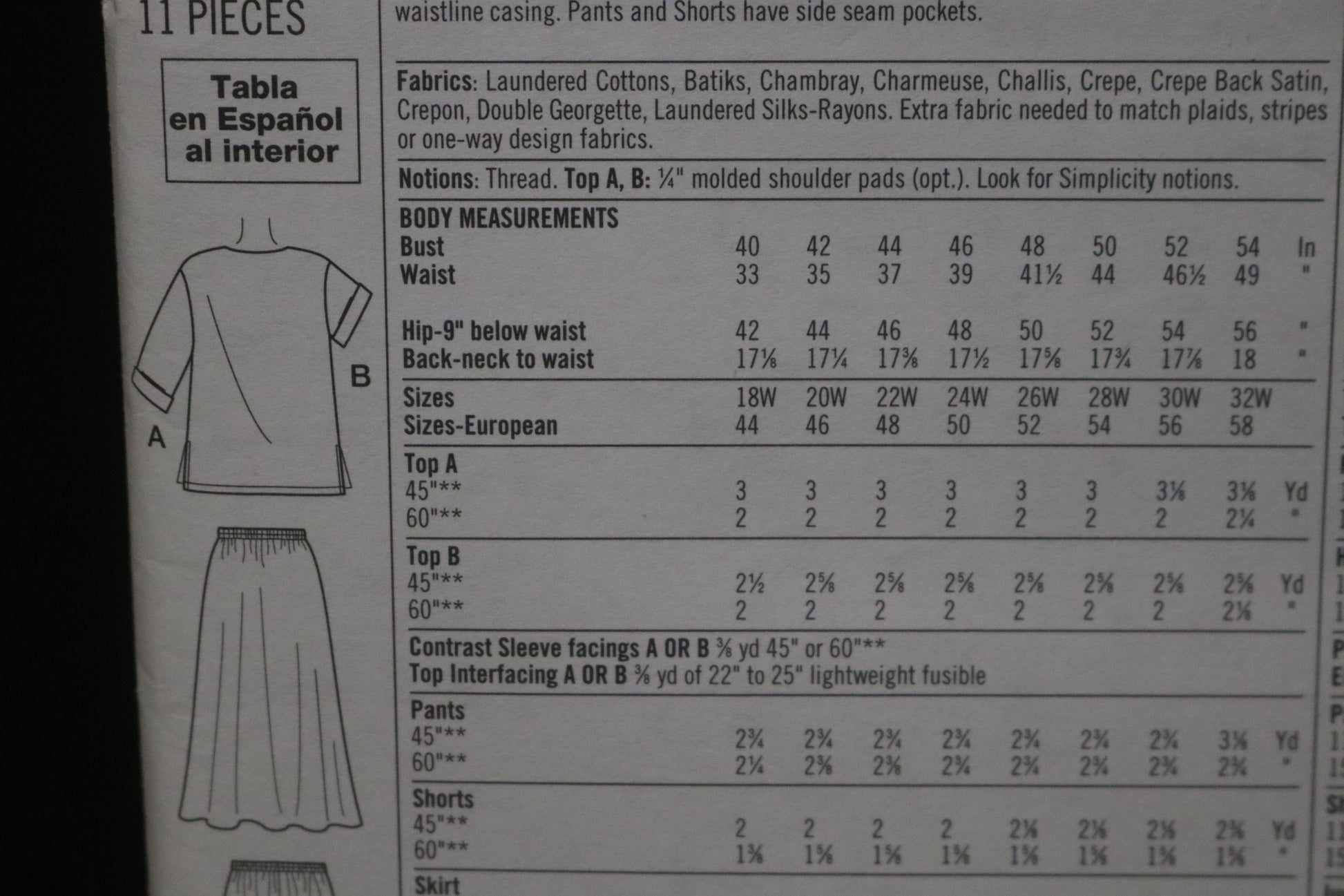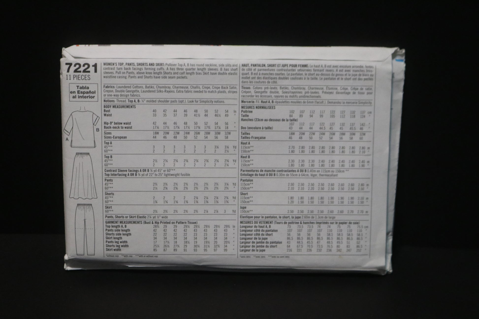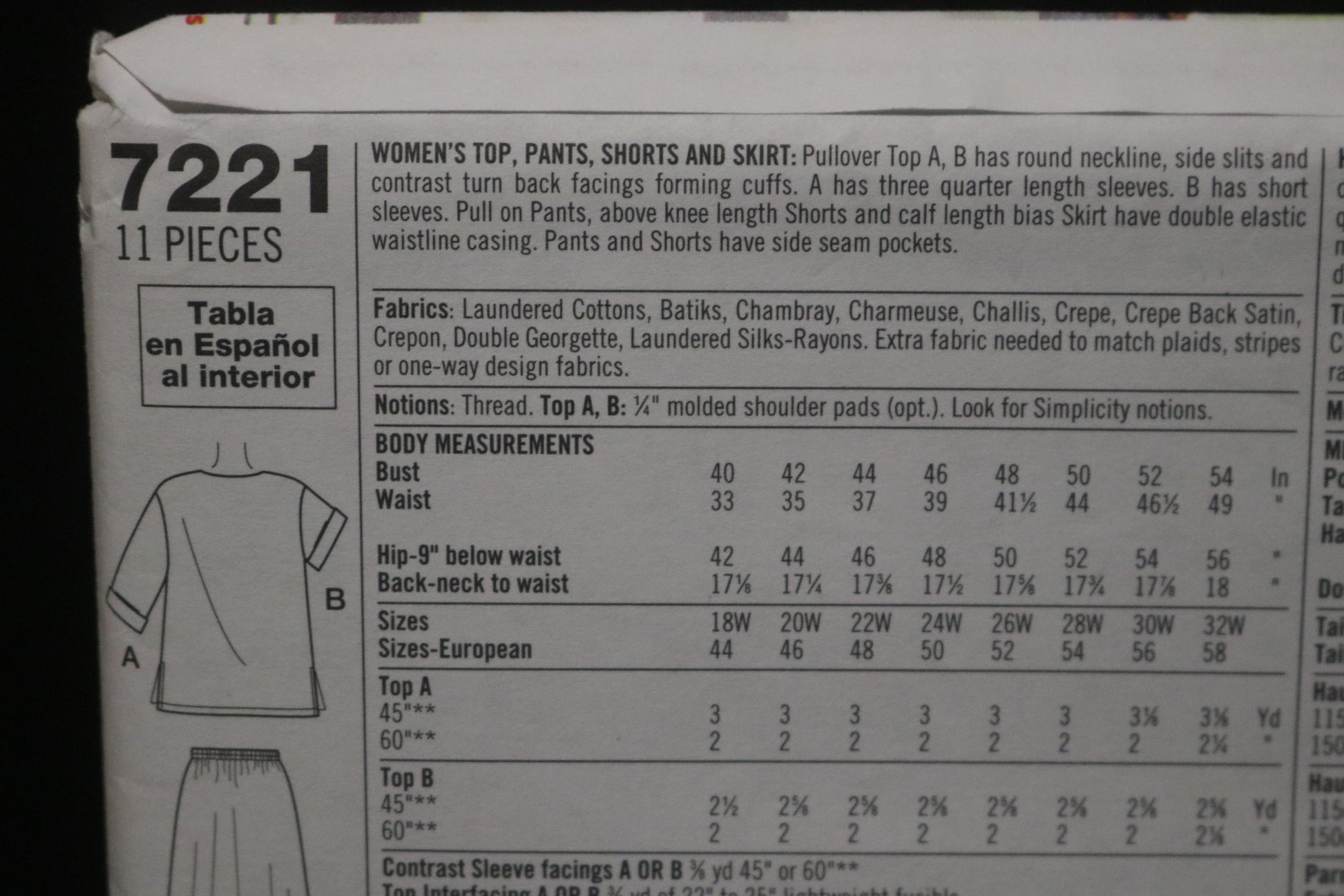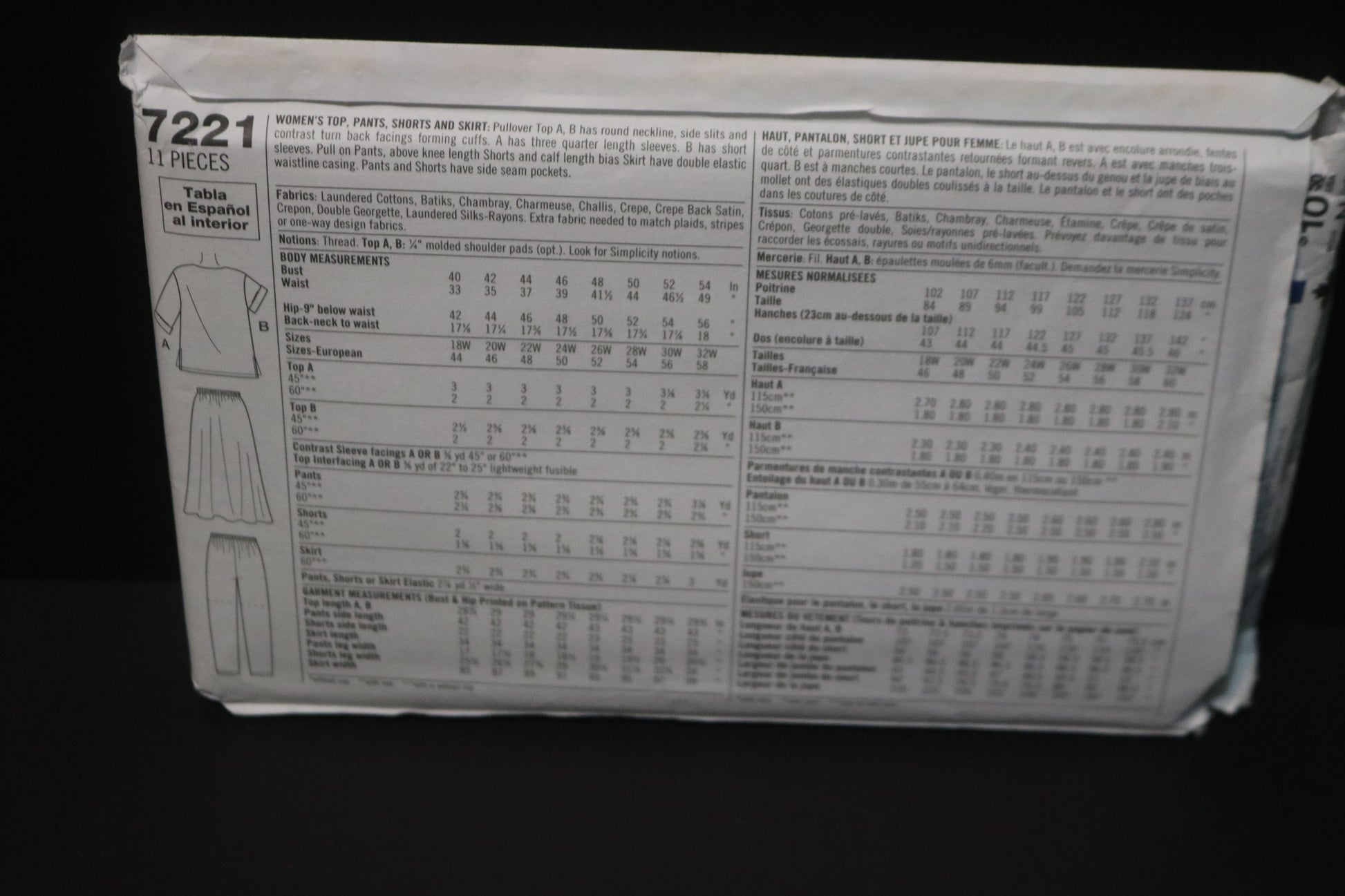 Simplicity 7221 Womens Top Pants Shorts and Skirt Sewing Pattern UNCUT -Size 18W - 23W or Size 26W - 32W
