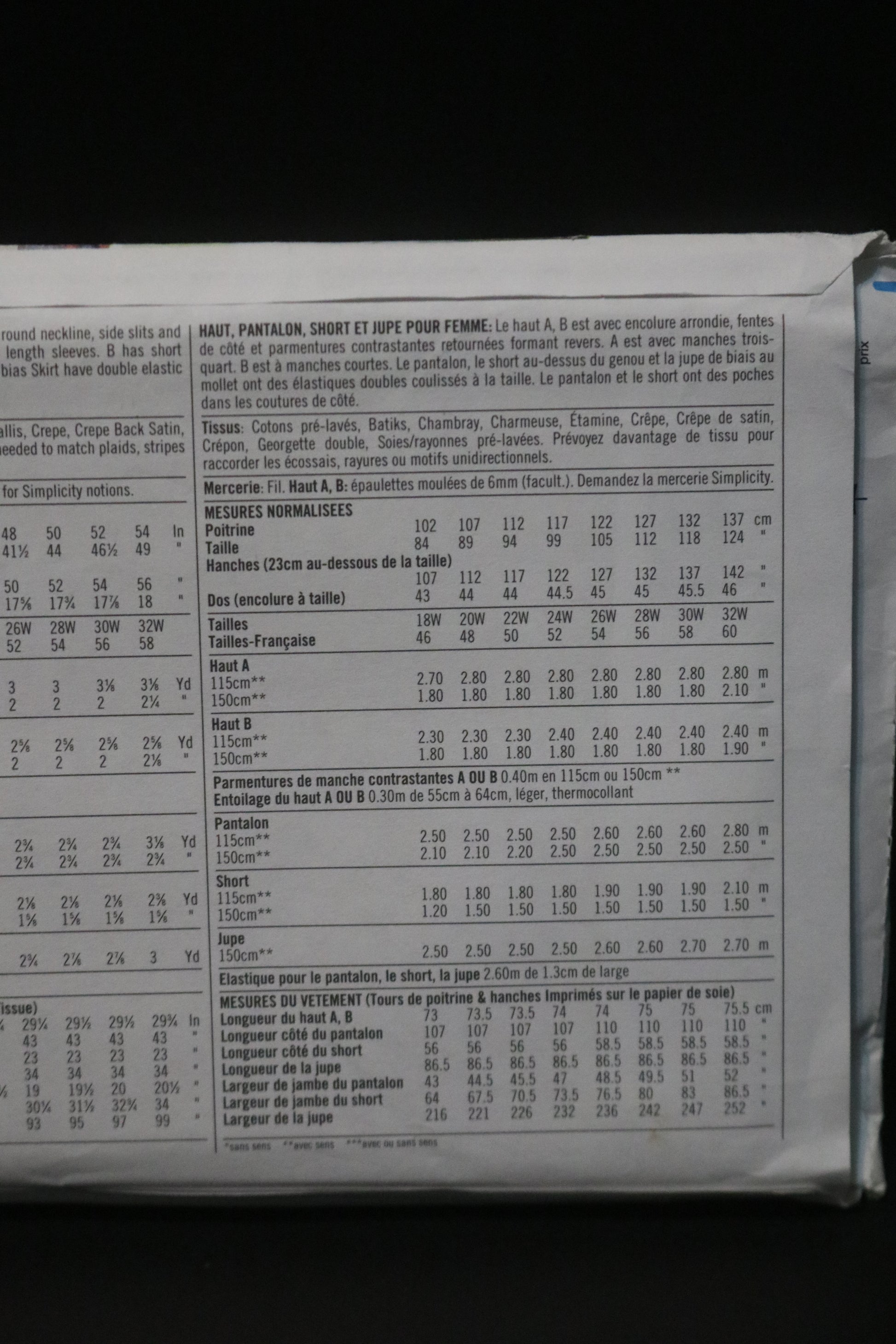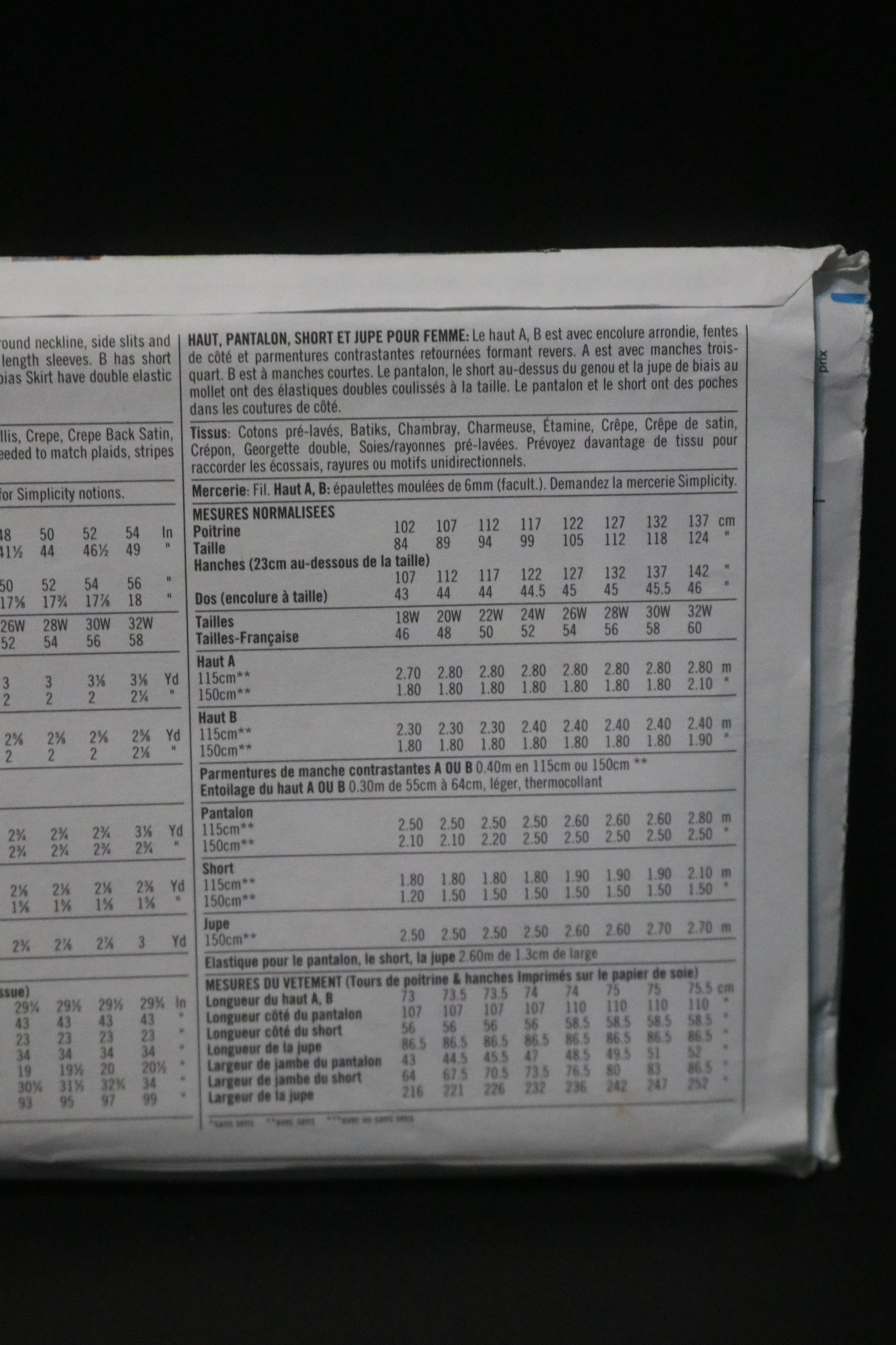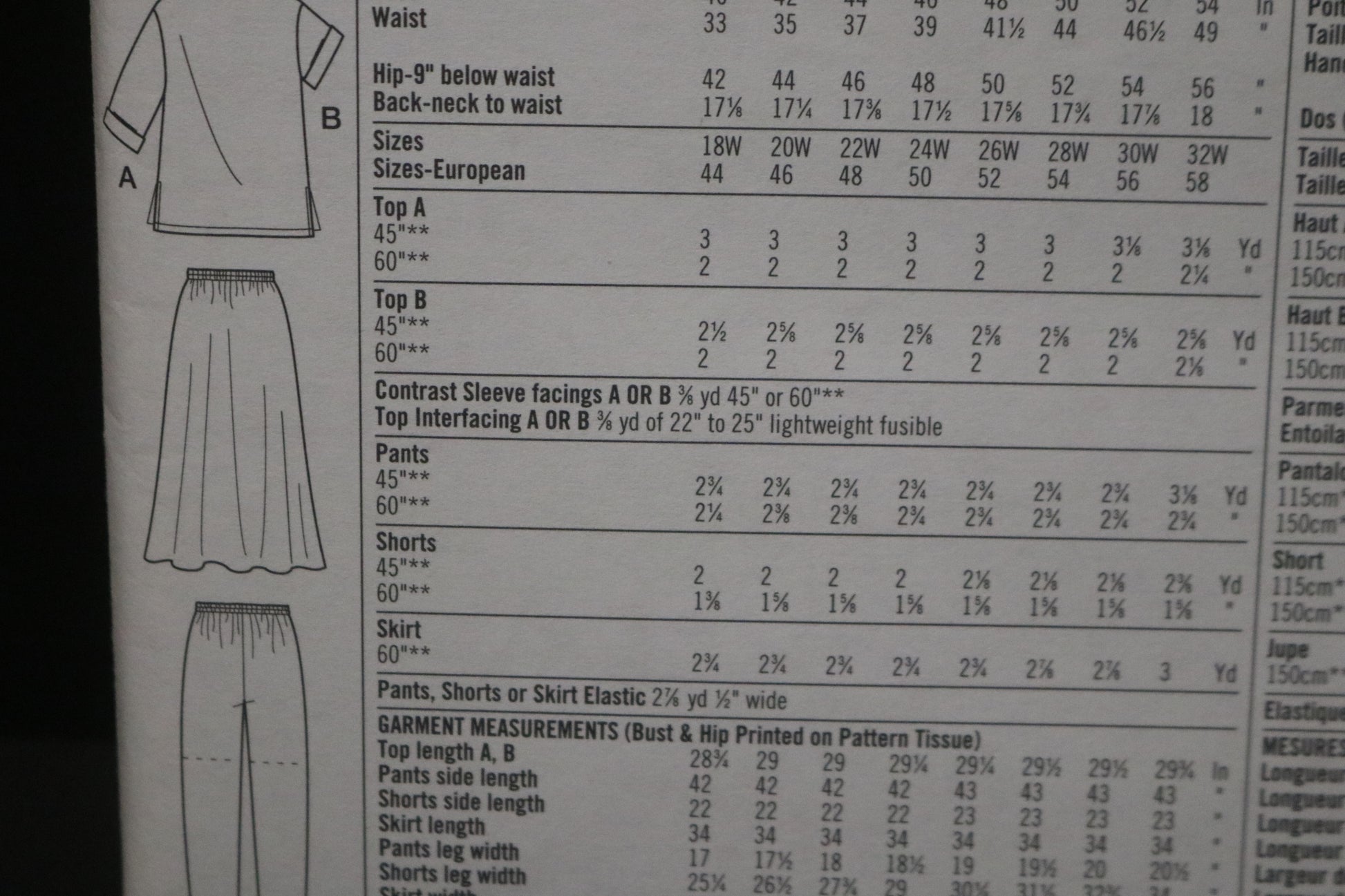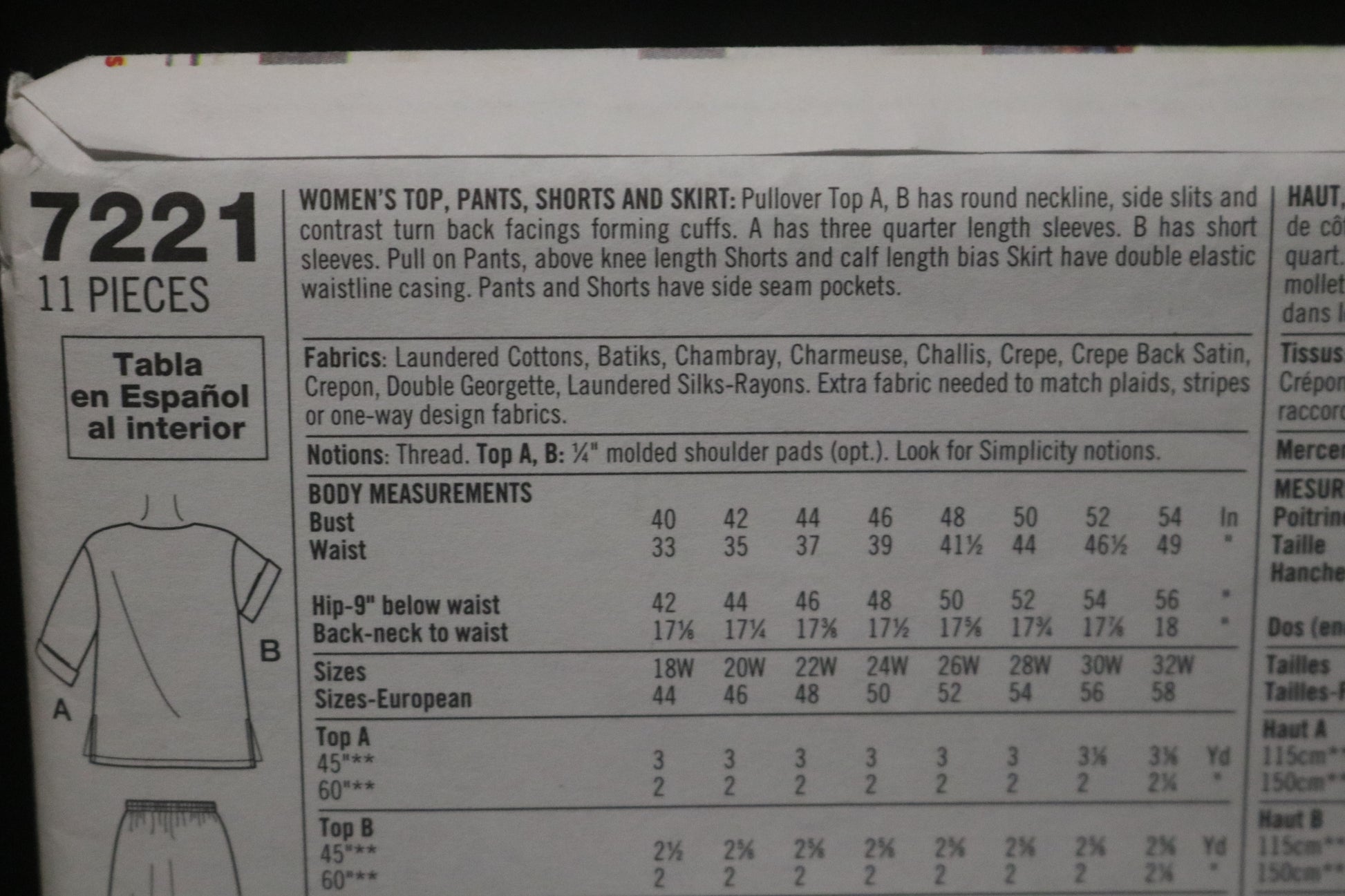 Simplicity 7221 Womens Top Pants Shorts and Skirt Sewing Pattern UNCUT -Size 18W - 23W or Size 26W - 32W