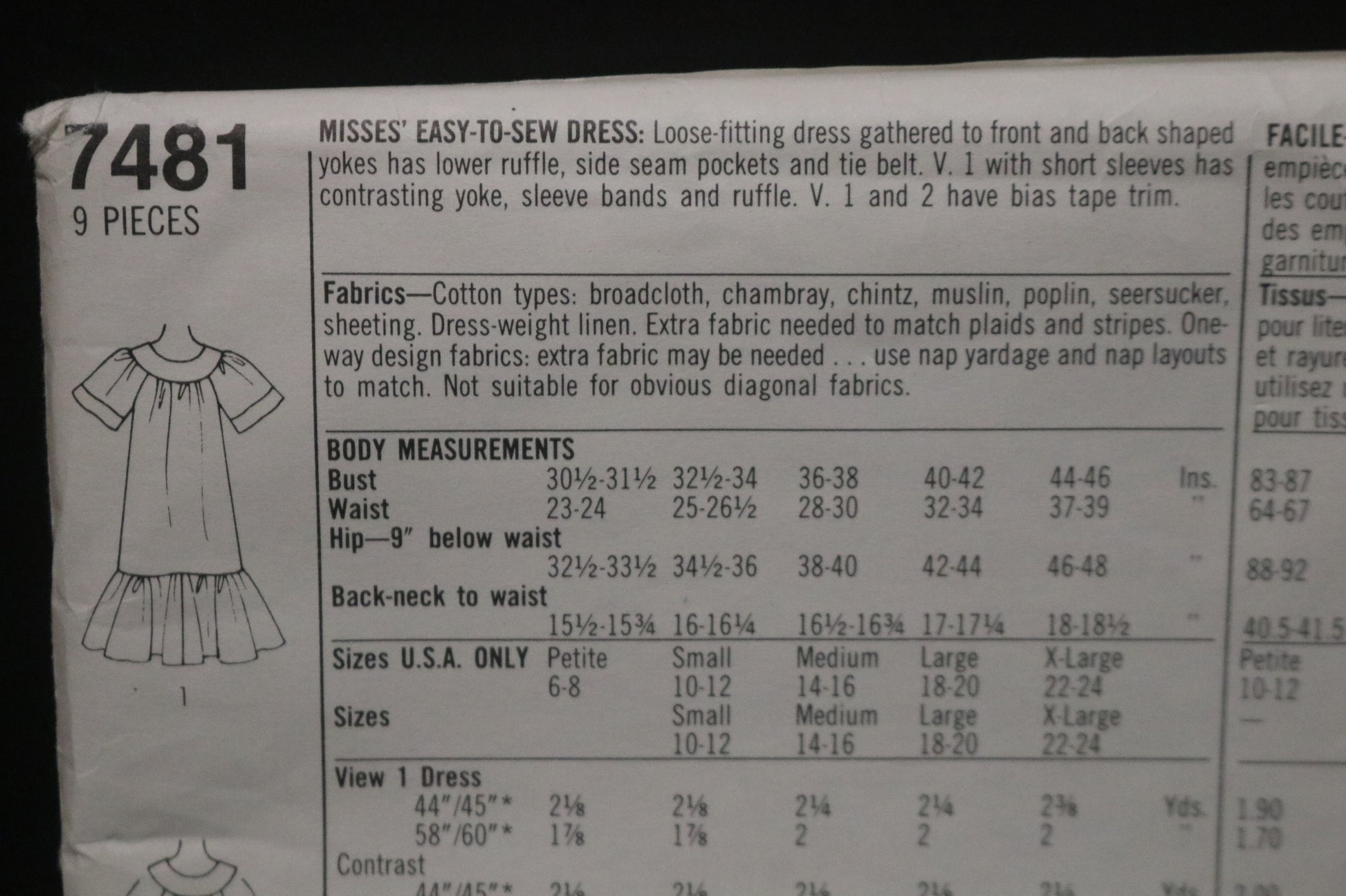 Simplicity 7481 Misses Easy to Sew Dress Sewing Pattern UNCUT Size XL