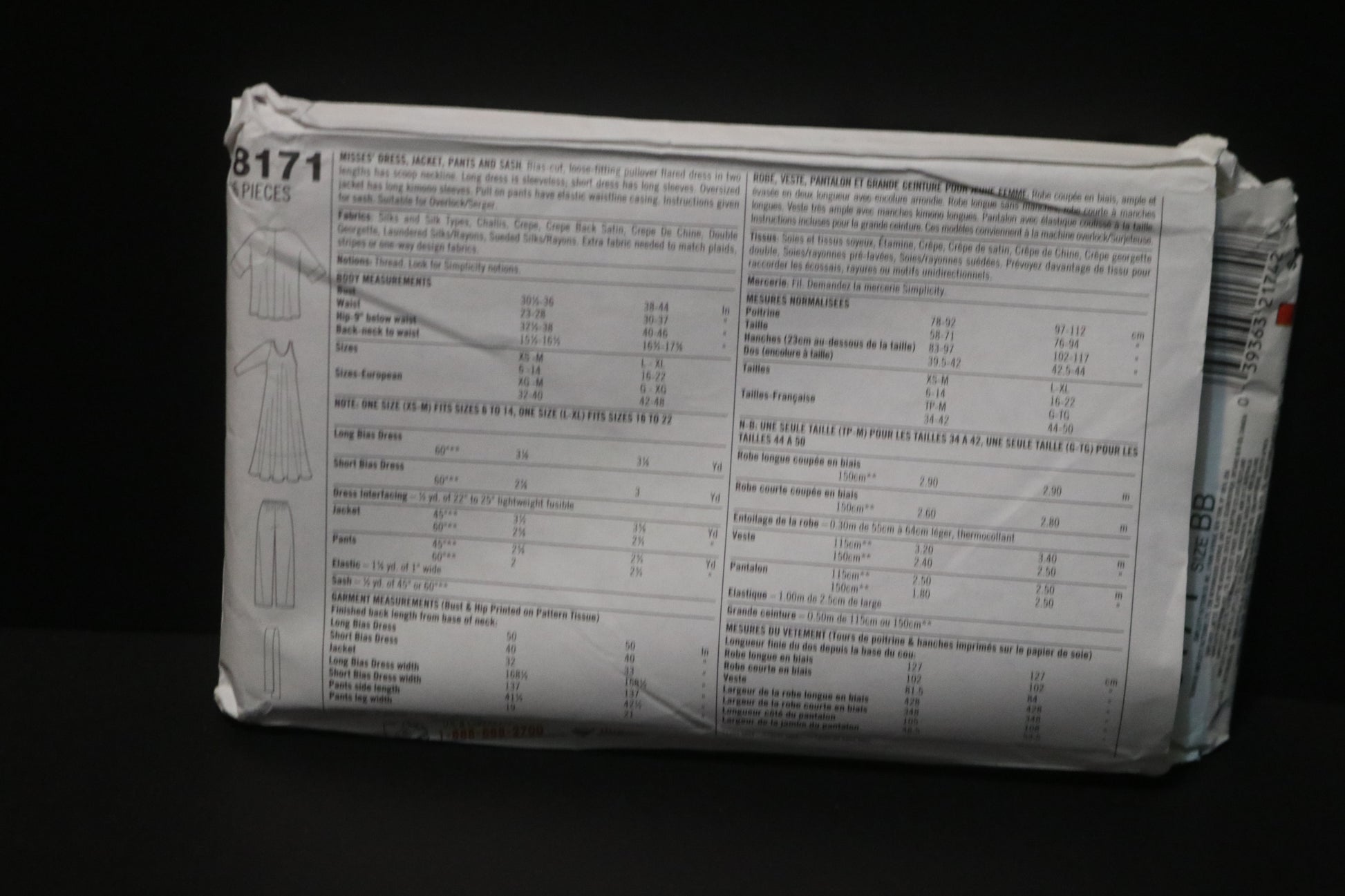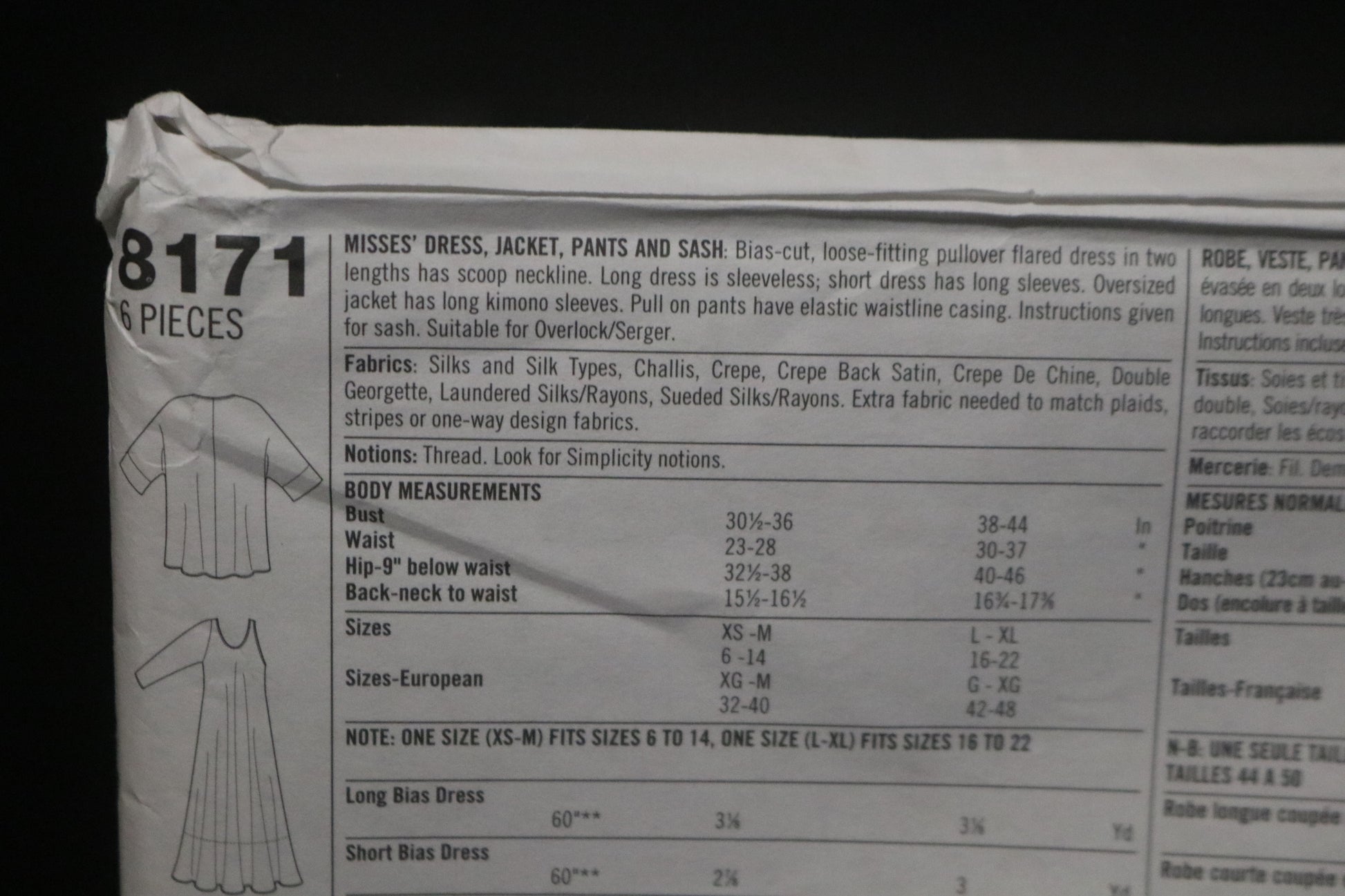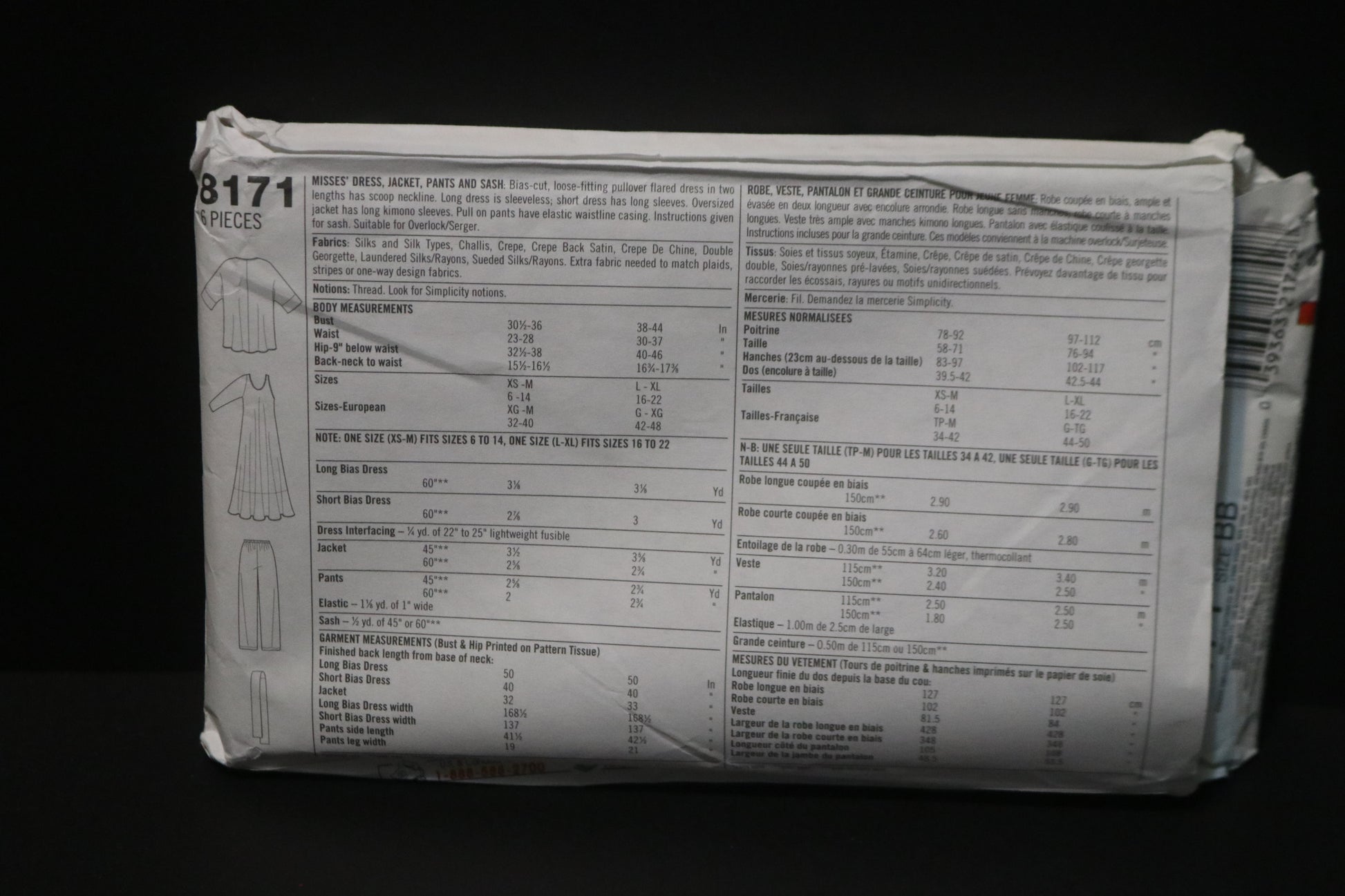 Simplicity 8171 Misses Dress Jacket Pants and Sash Sewing Pattern UNCUT Size L - XL