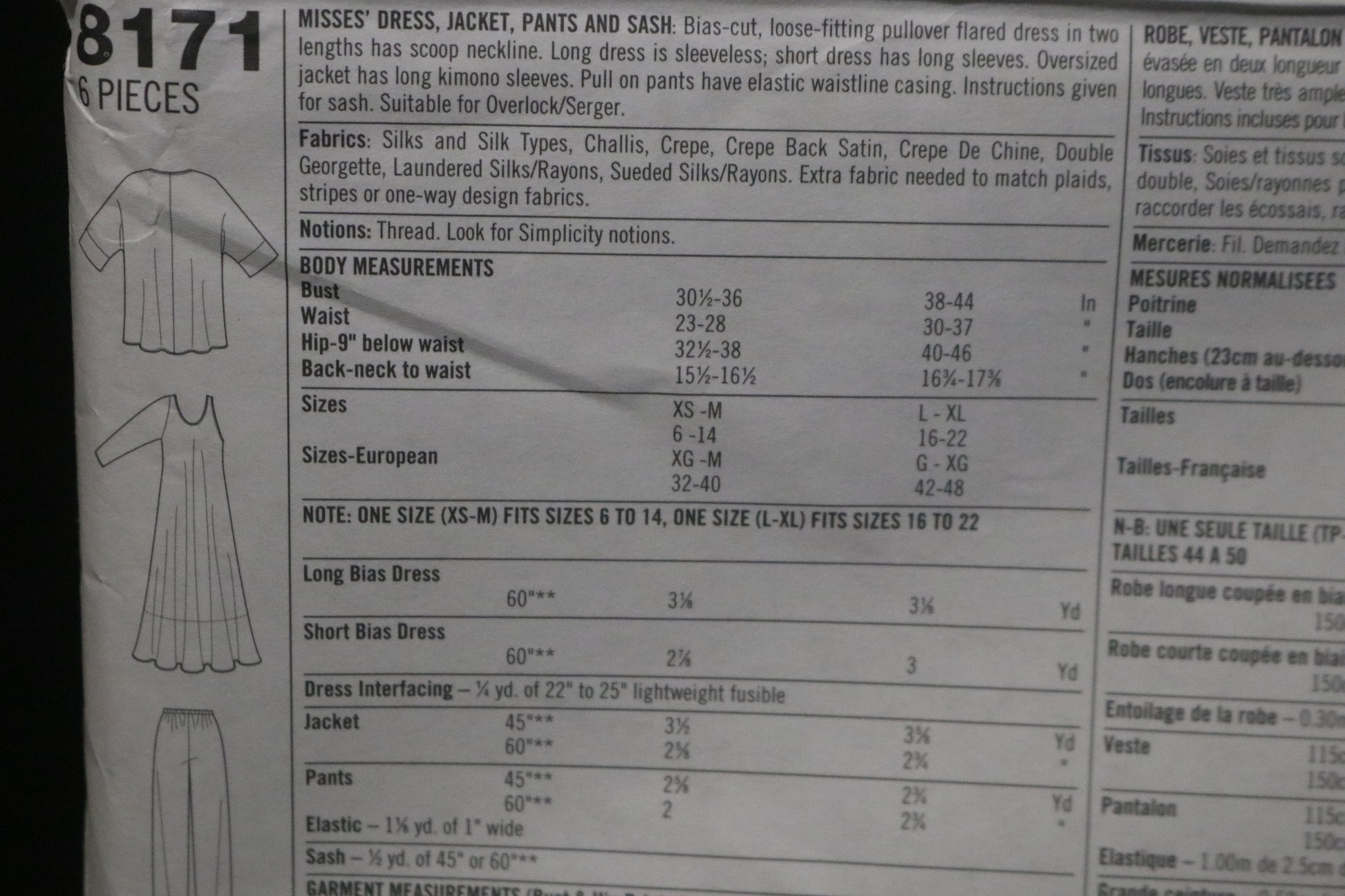 Simplicity 8171 Misses Dress Jacket Pants and Sash Sewing Pattern