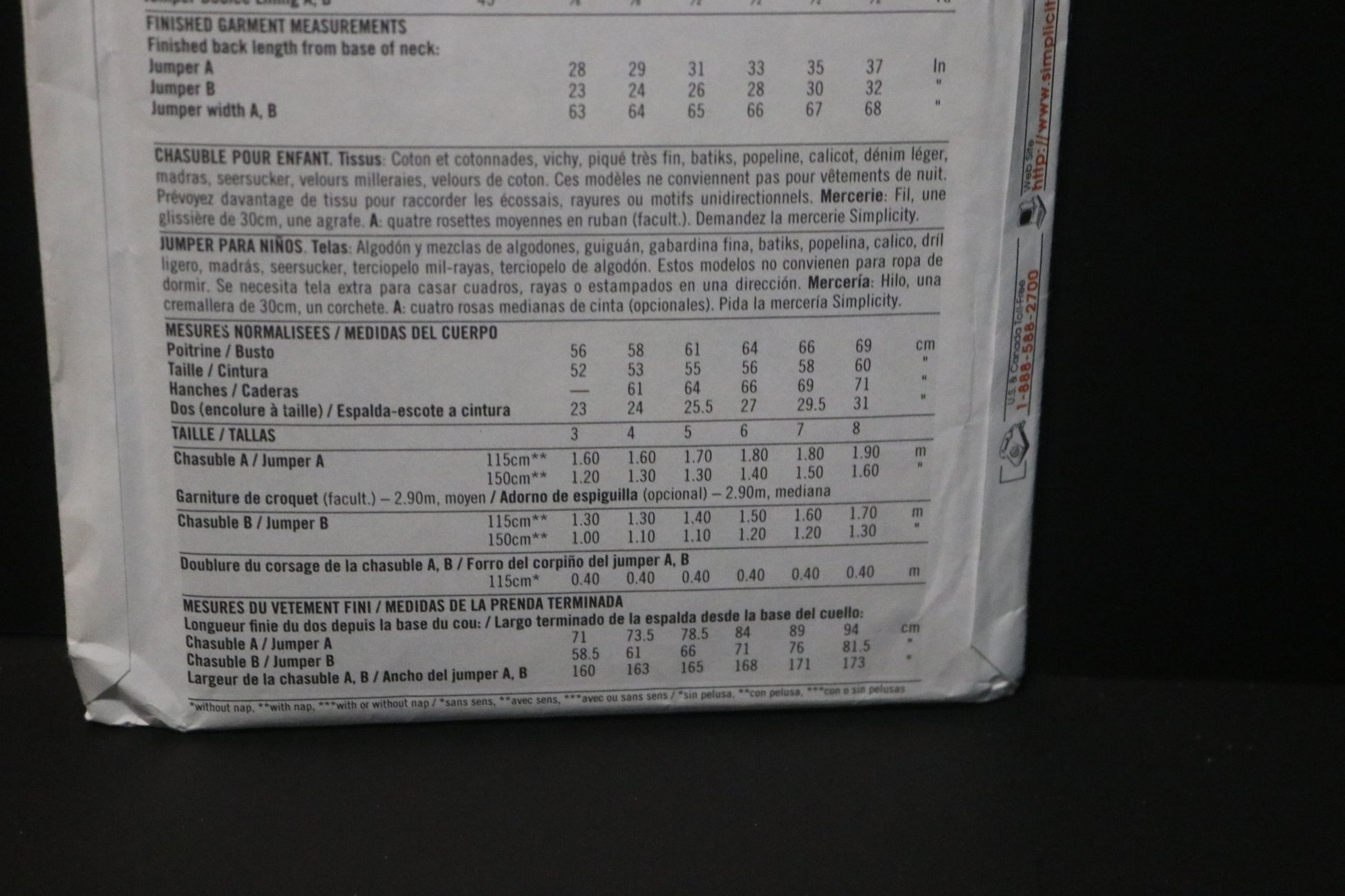 Simplicity 8340 Chilrens/Girls Jumper Sewing Pattern