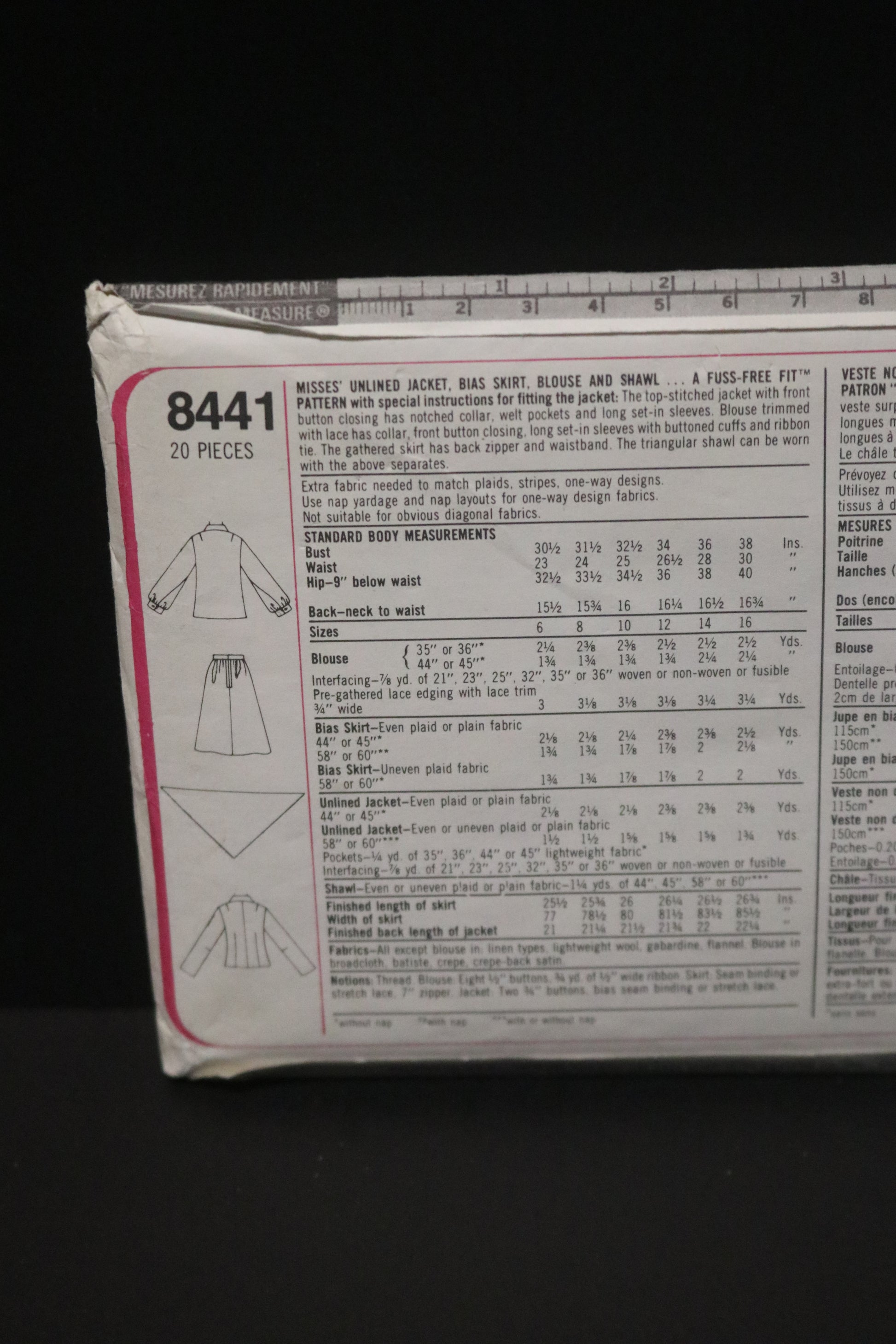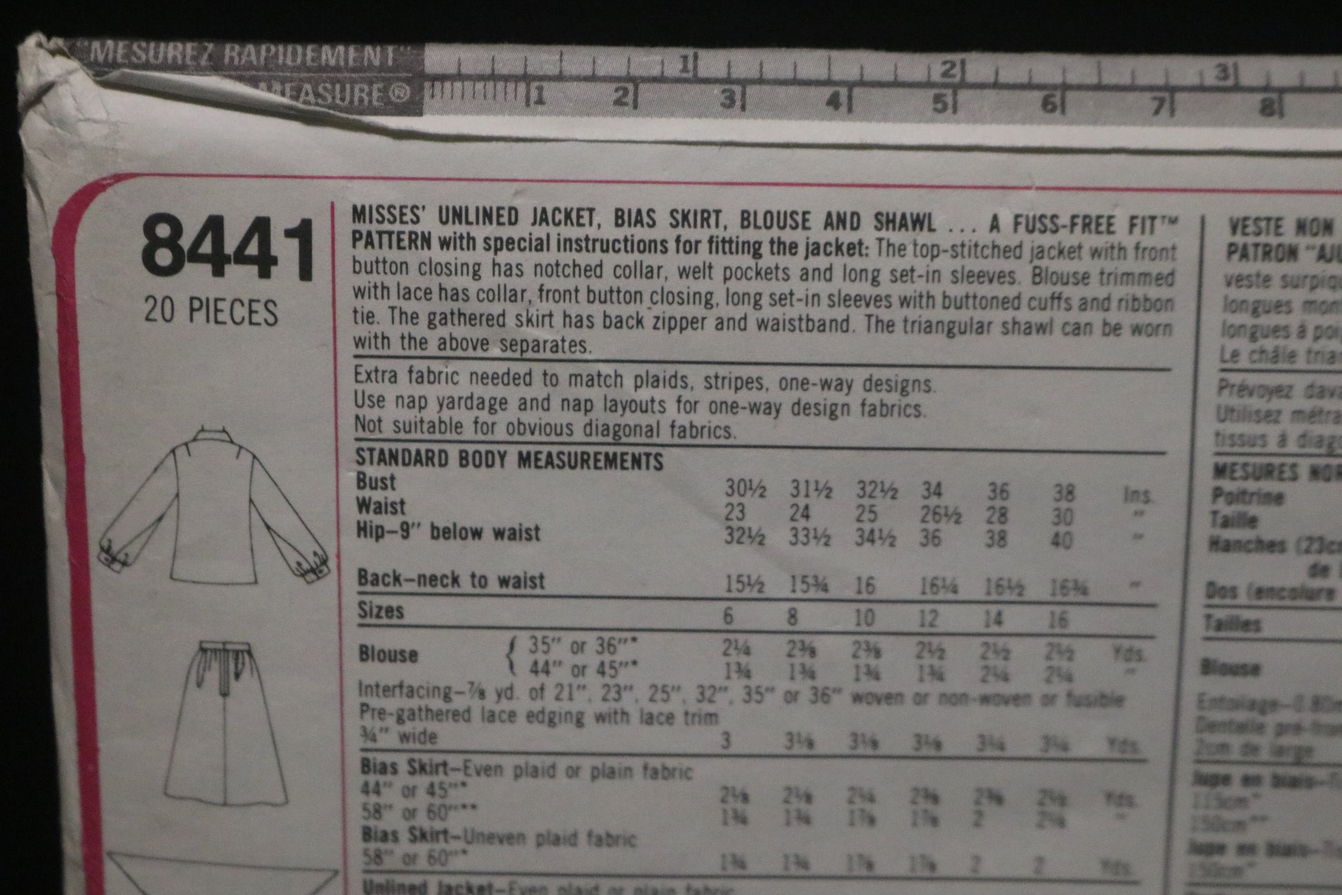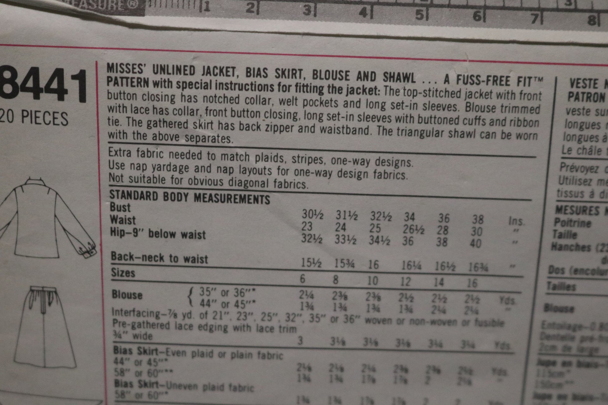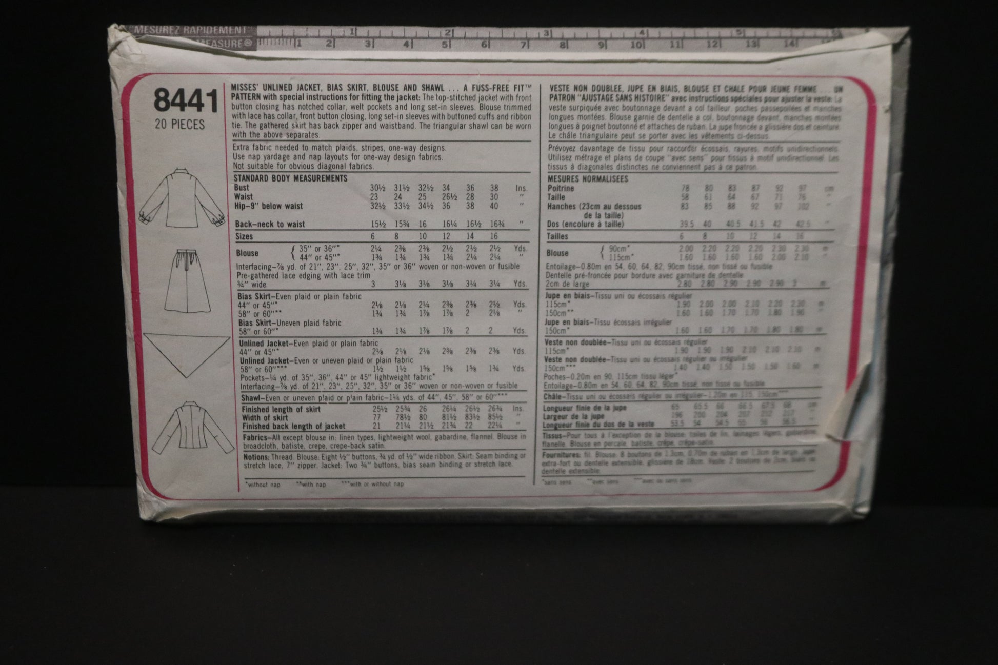 Simplicity 8441 Misses Unlined Jacket, Bias Skirt, Blouse and Shawl Sewing Pattern UNCUT - Size 12