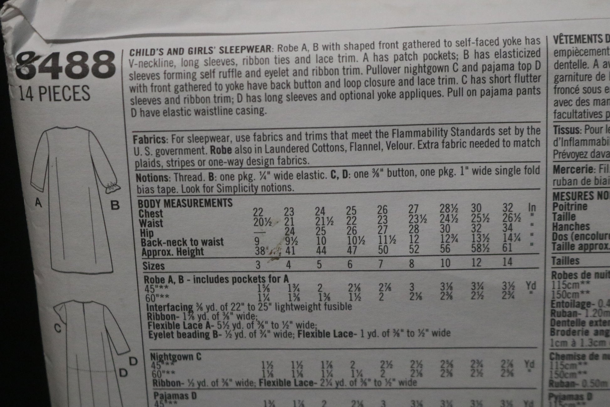Simplicity 8488 Girls Sleepwear Sewing Pattern