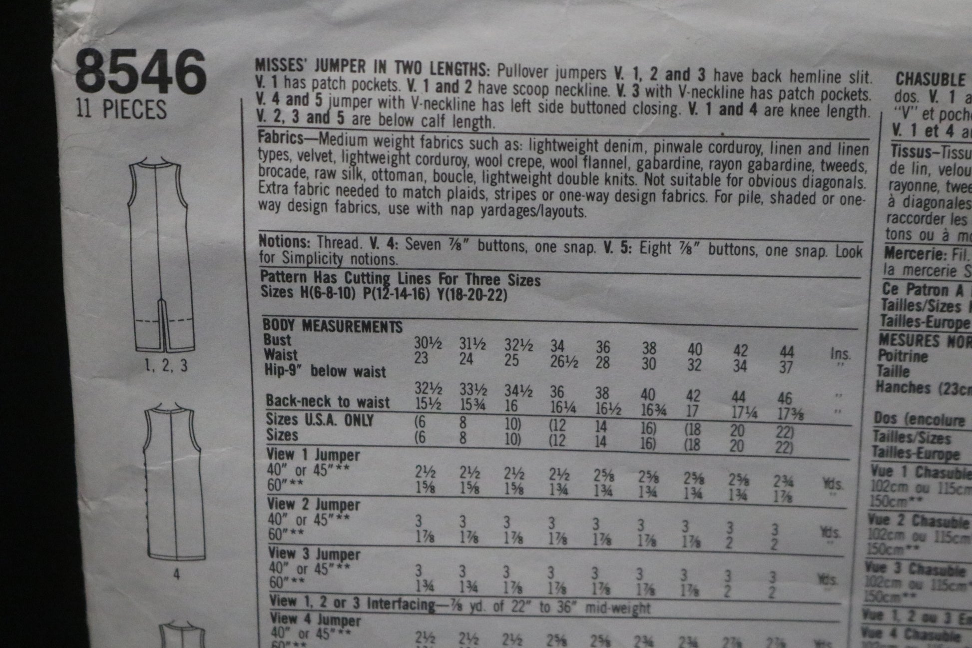 Simplicity 8546 Misses Jumper in Two Lengths Sewing Pattern