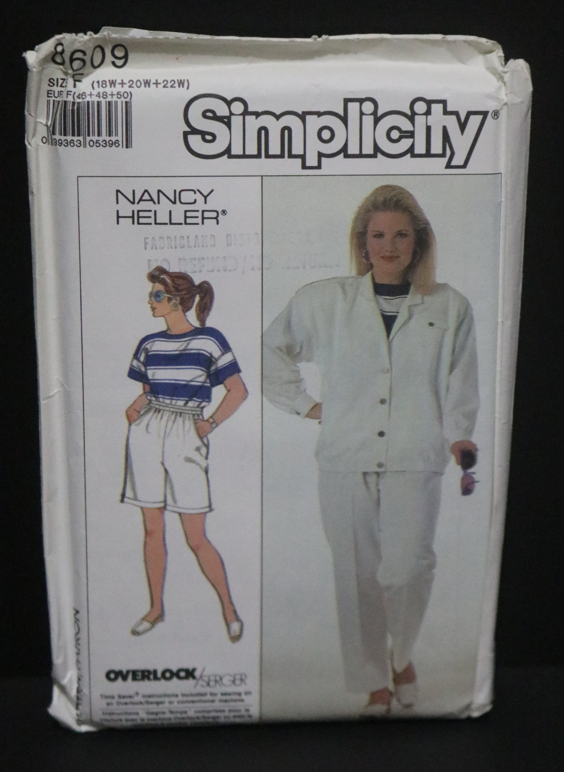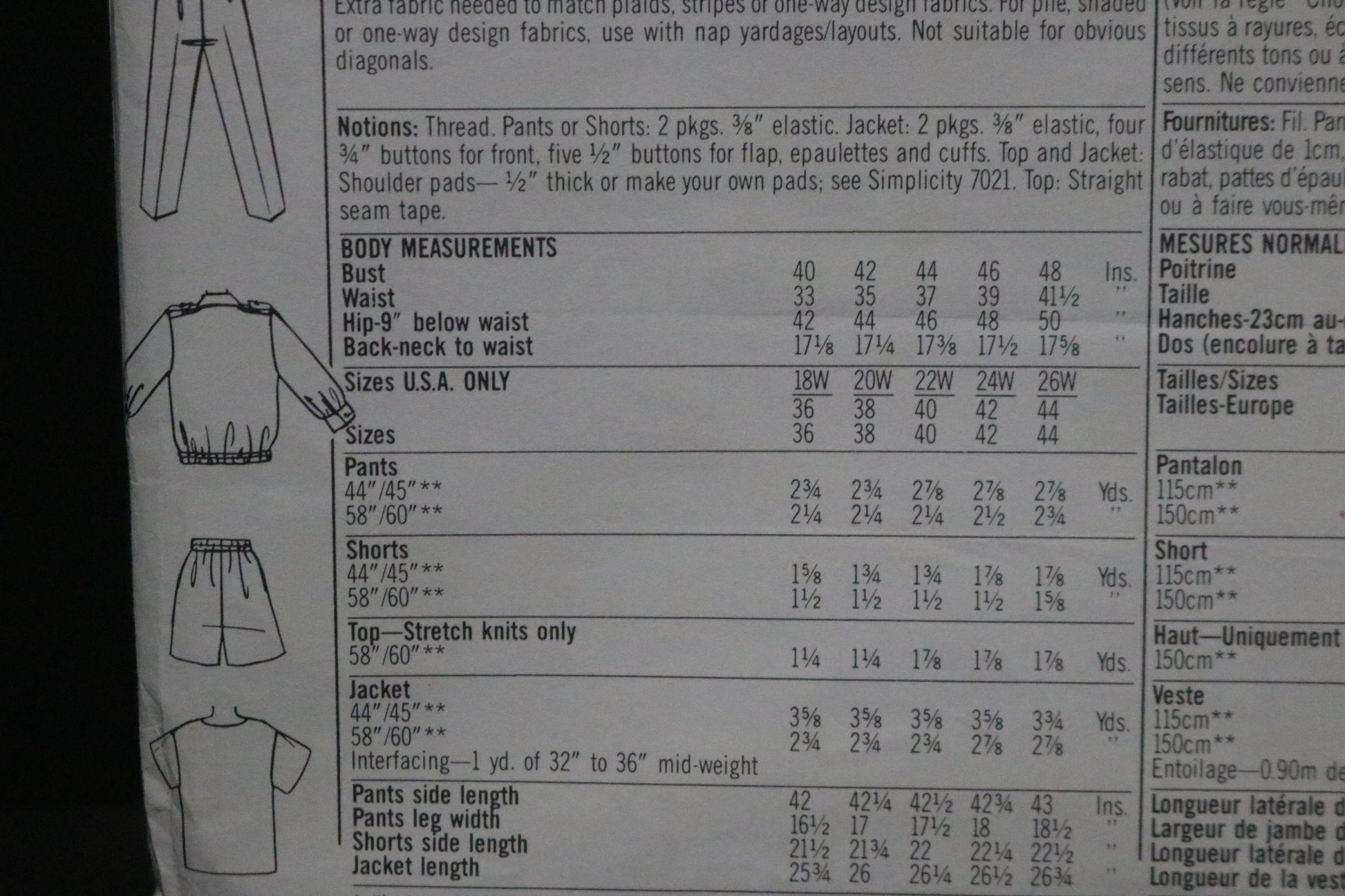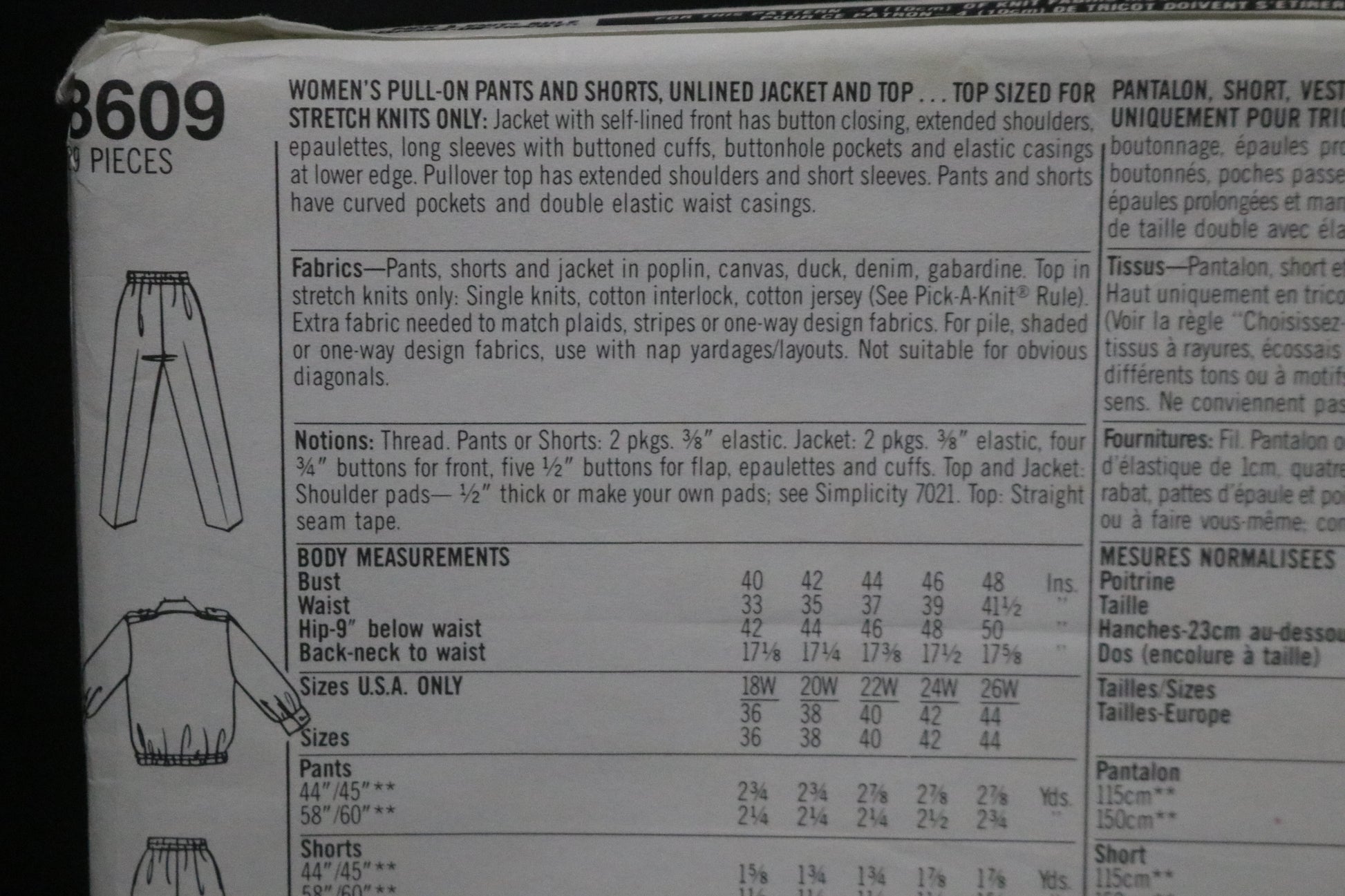 Simplicity 8609 Nancy Heller Womens Pull on Pants and Shorts, Unlined Jacket and Top Sewing Pattern UNCUT Size 18W 20W 22W