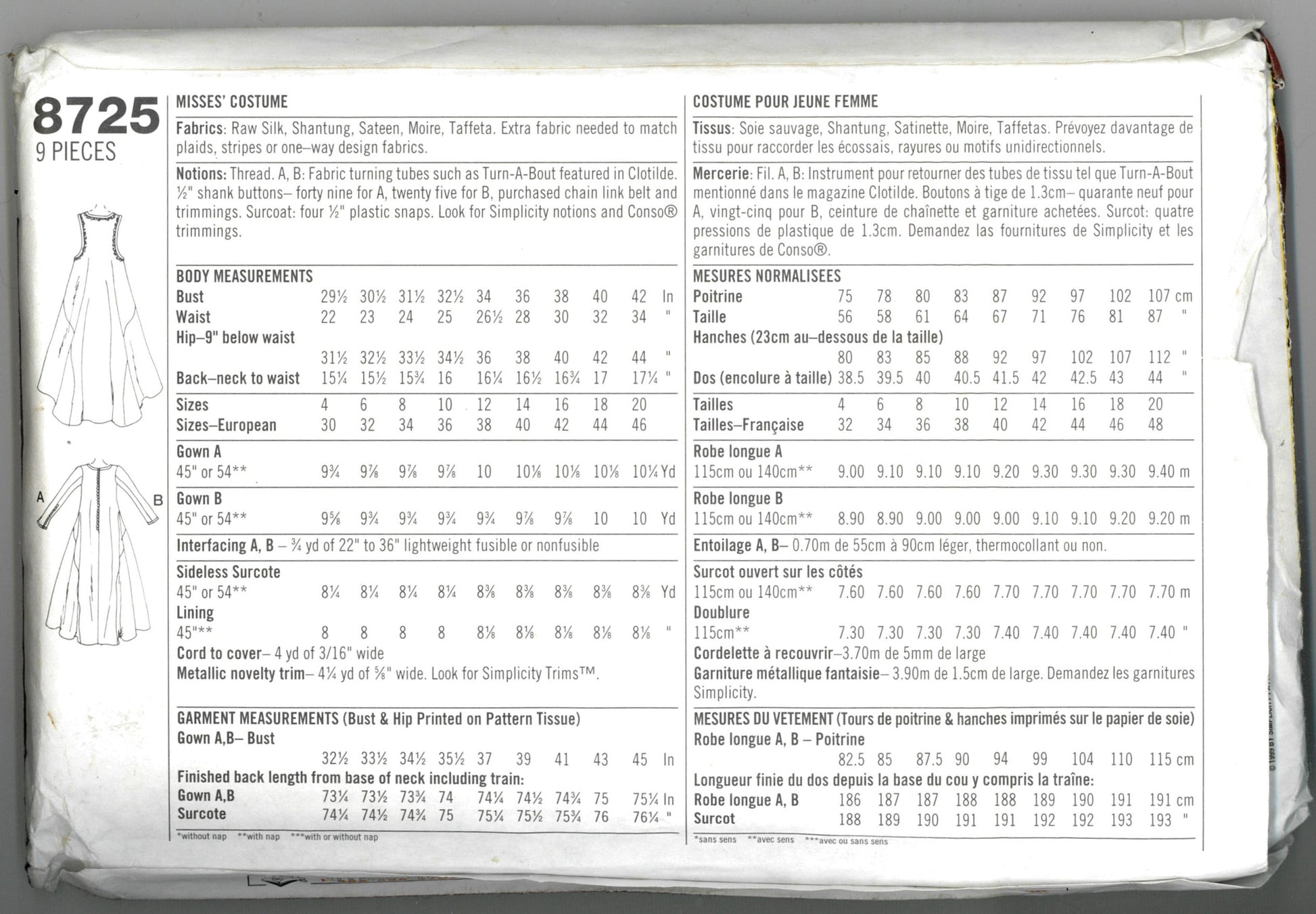 Simplicity 8725 Misses Medieval Costumes Sewing Pattern
