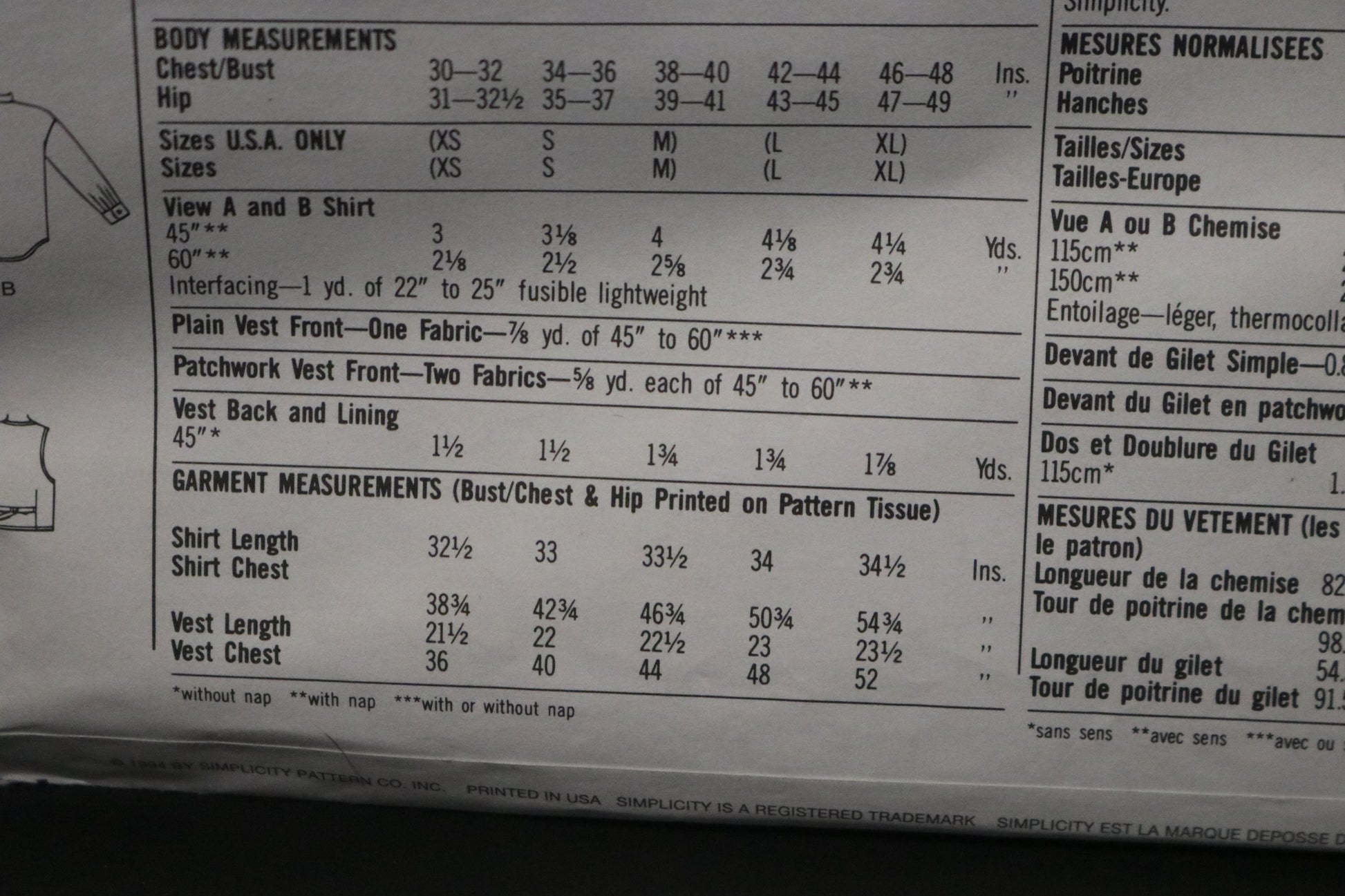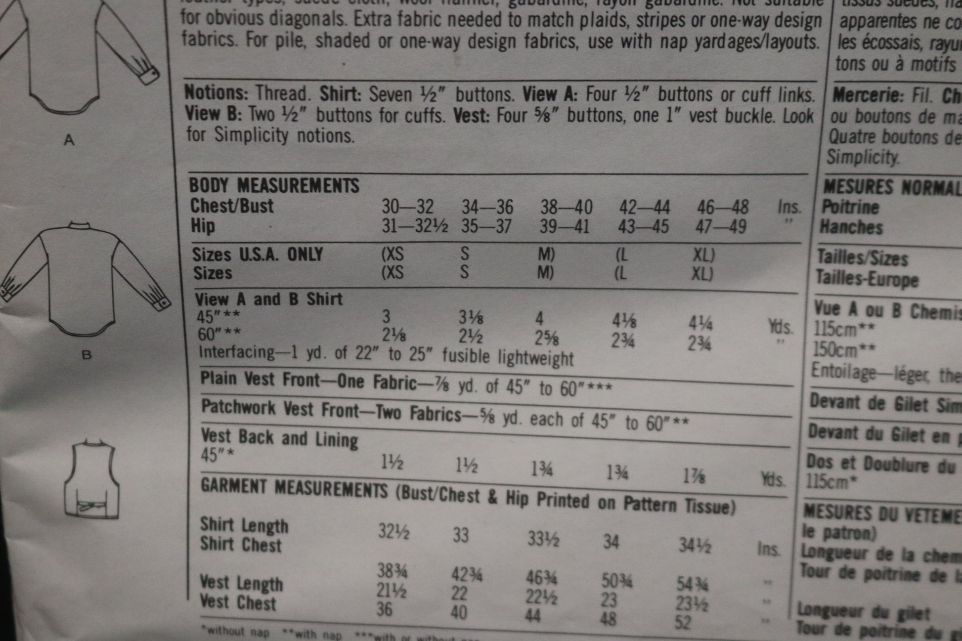 Simplicity 8799 Misses Mens or Teen Boys Shirt and Lined Vest Sewing Pattern UNCUT - Size L,XL
