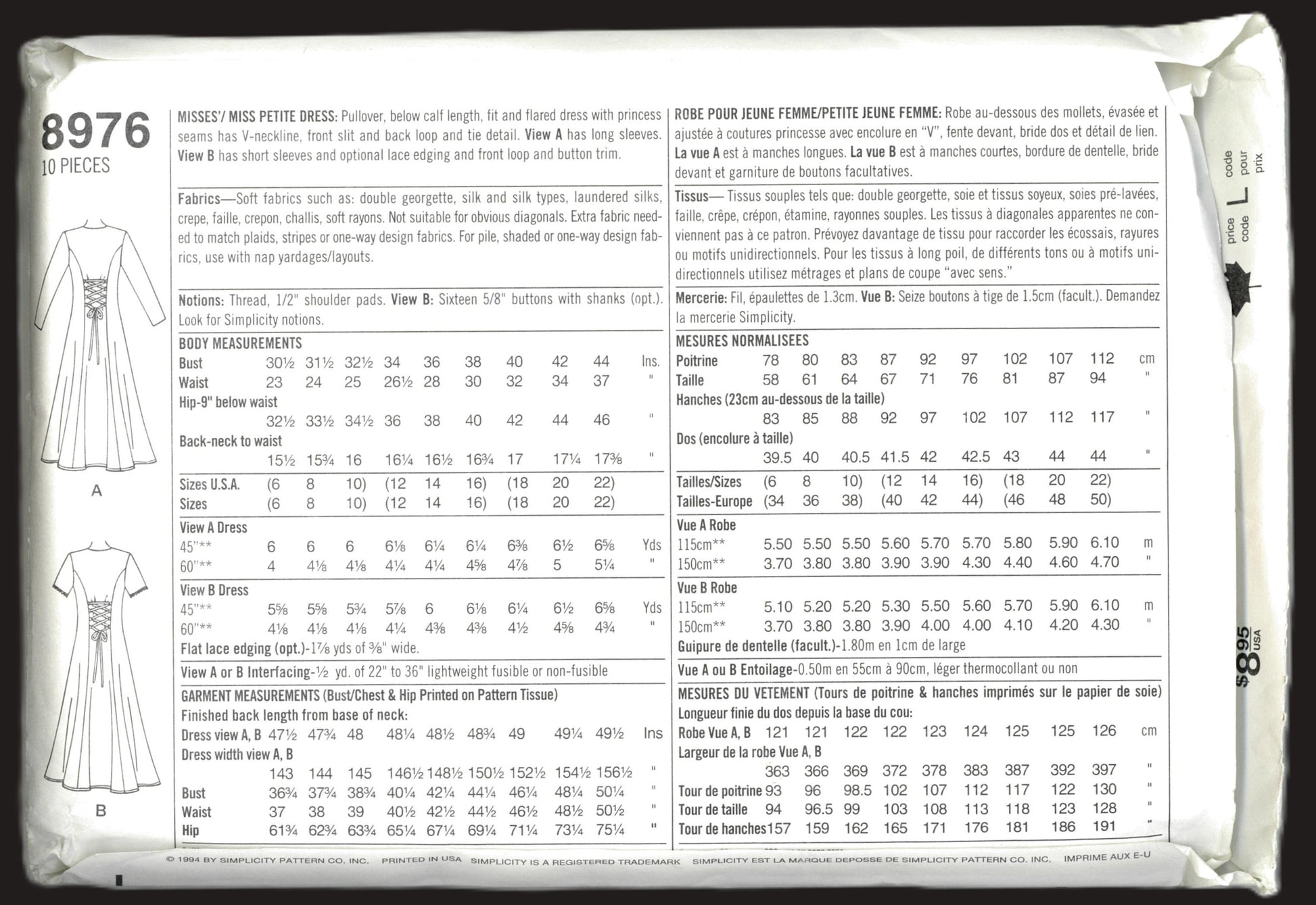 Simplicity 8976 Misses / miss Petite Dress Sewing Pattern