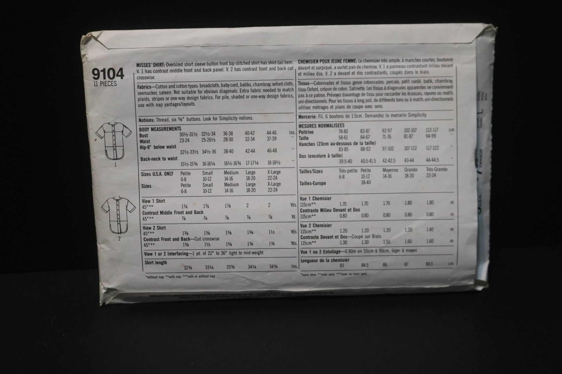 Simplicity 9104 Misses Shirt Sewing Pattern