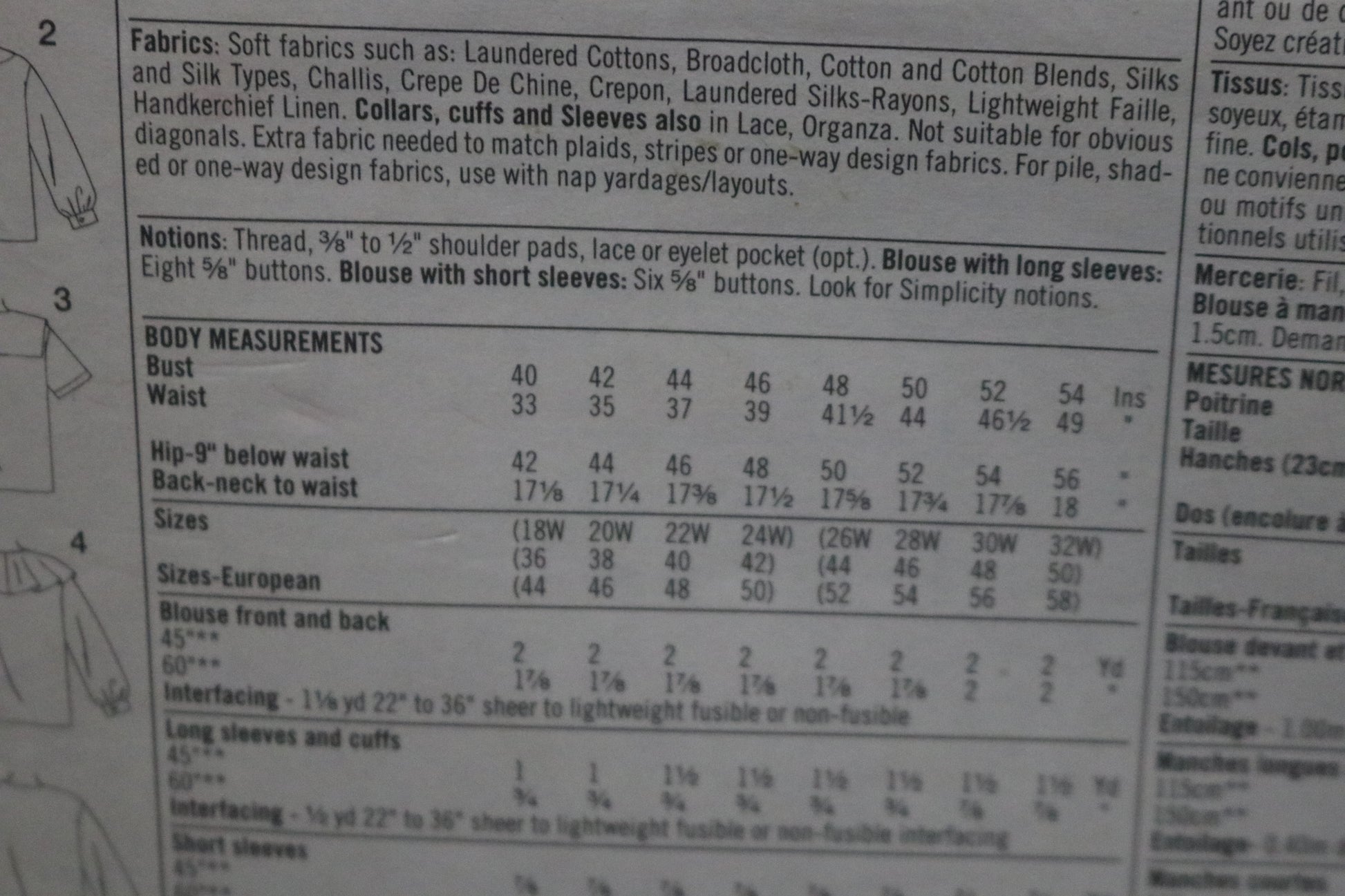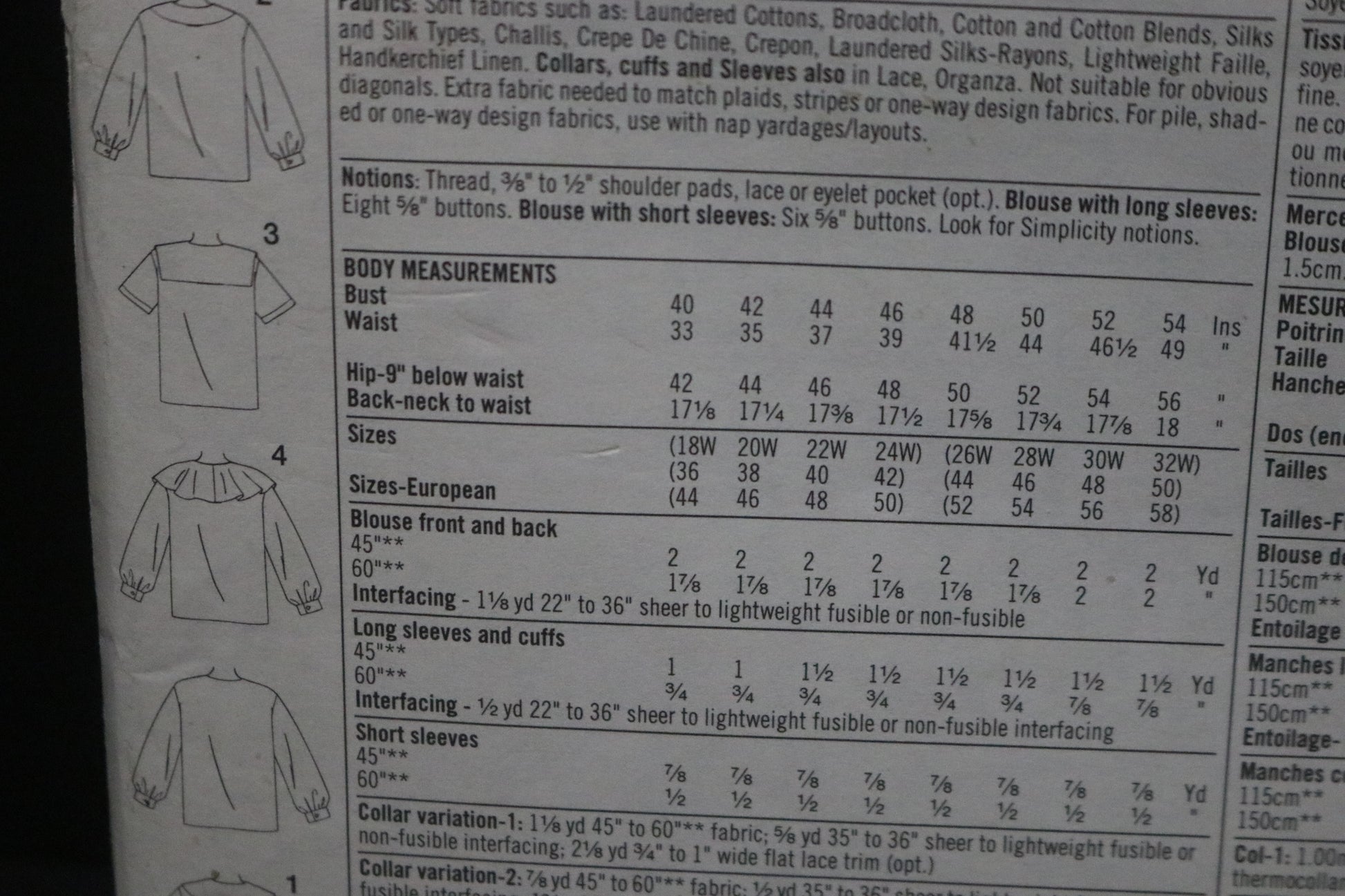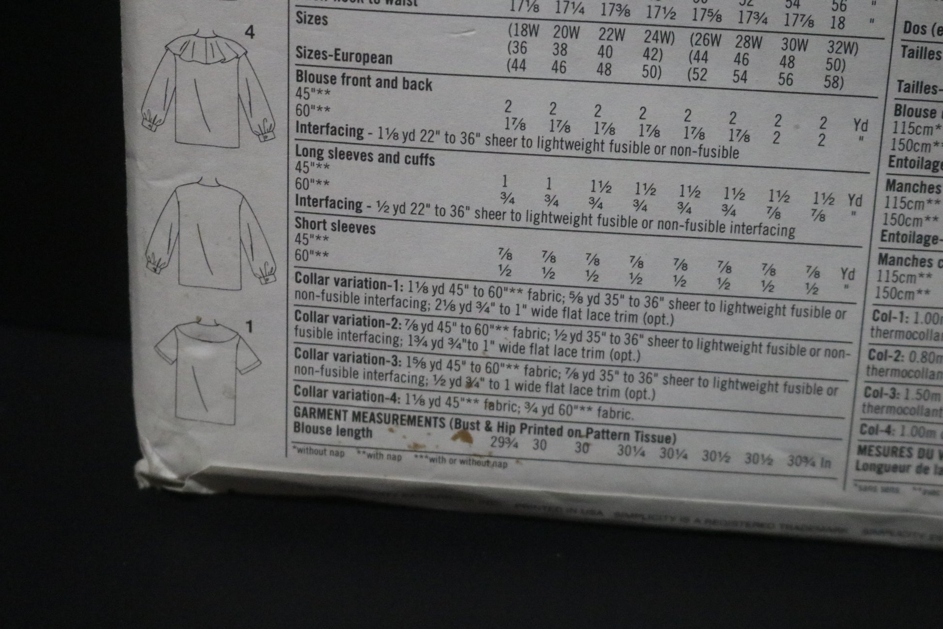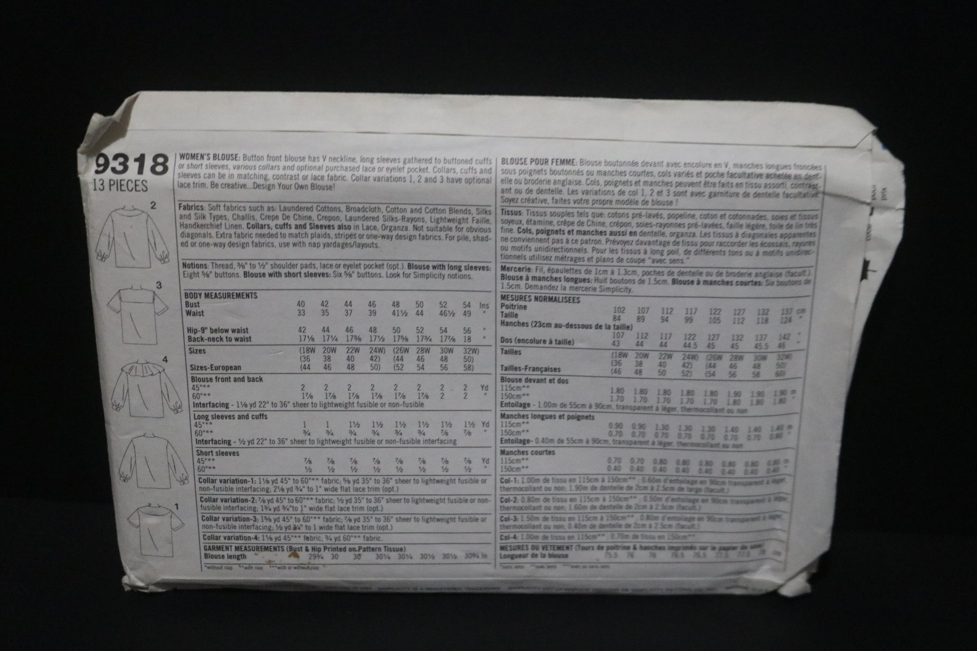 Simplicity 9318 Womens Blouse Sewing Pattern UNCUT - Size 18W - 24W