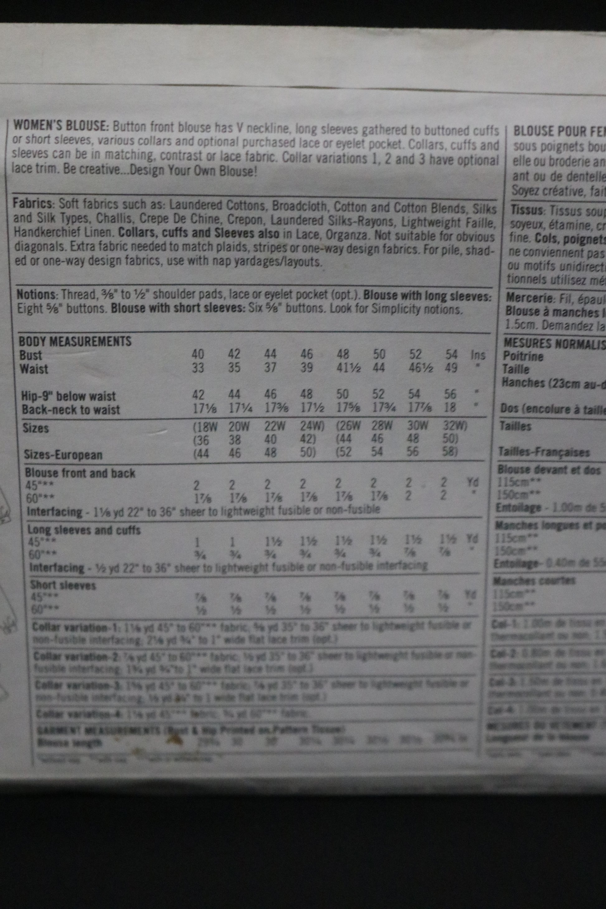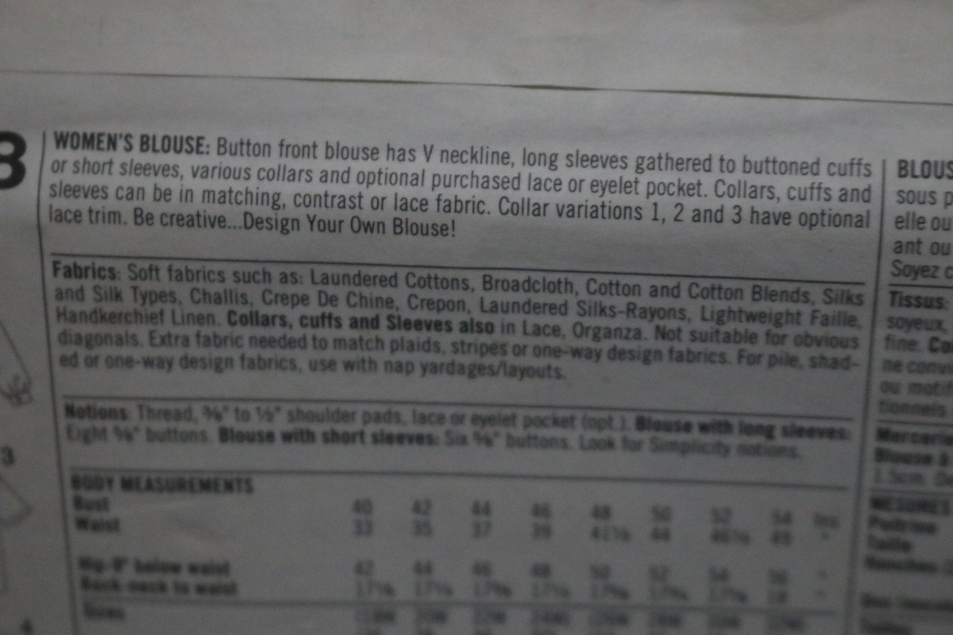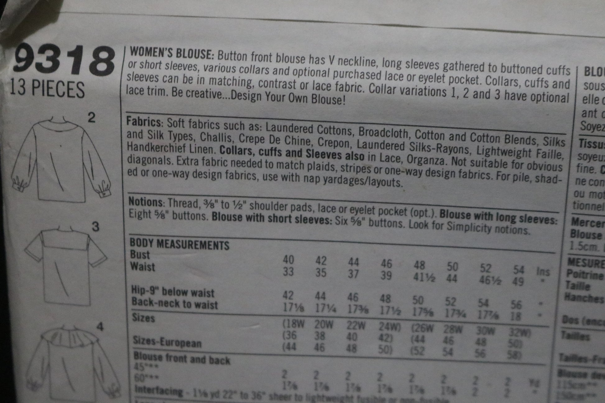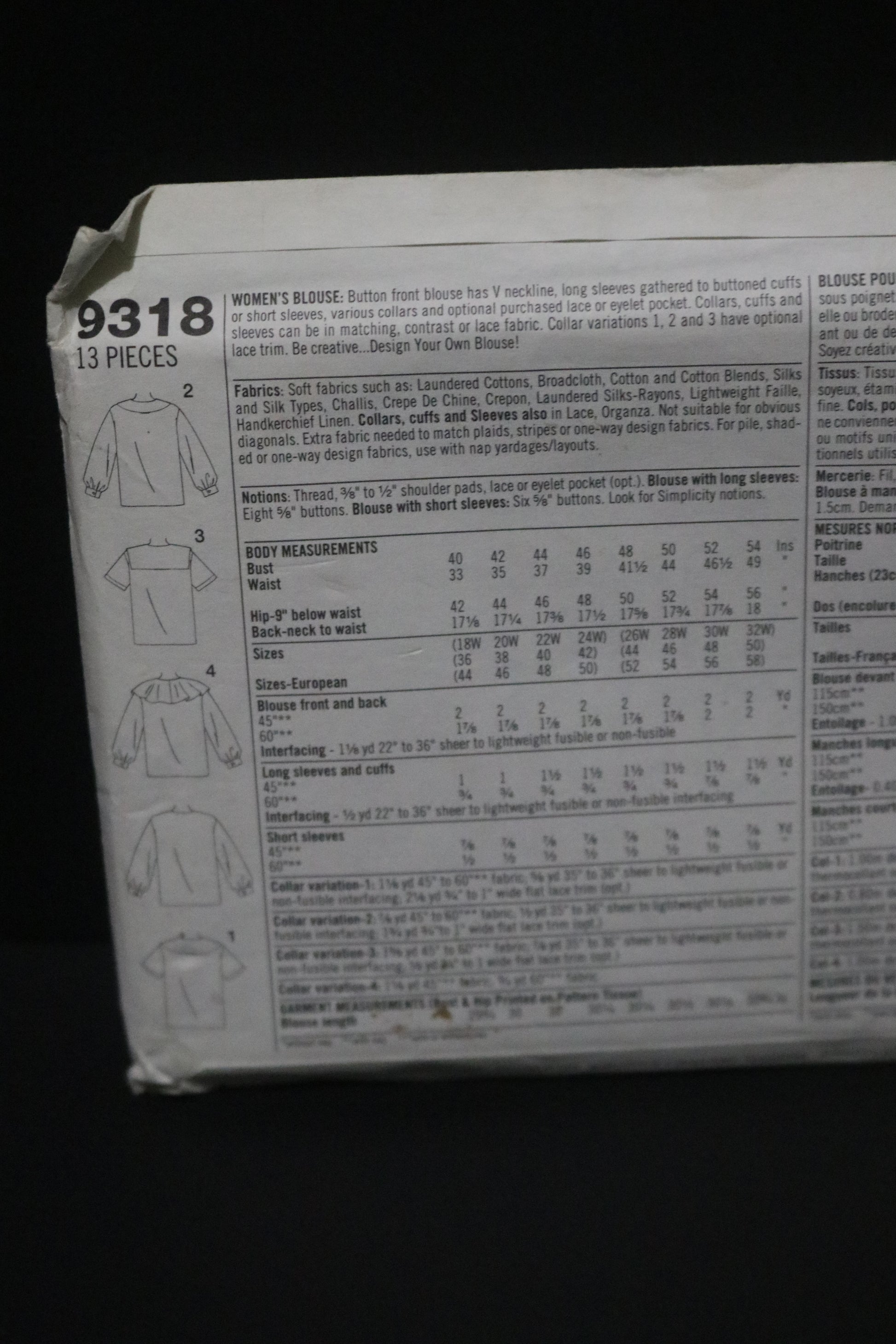 Simplicity 9318 Women's Blouse Sewing Pattern