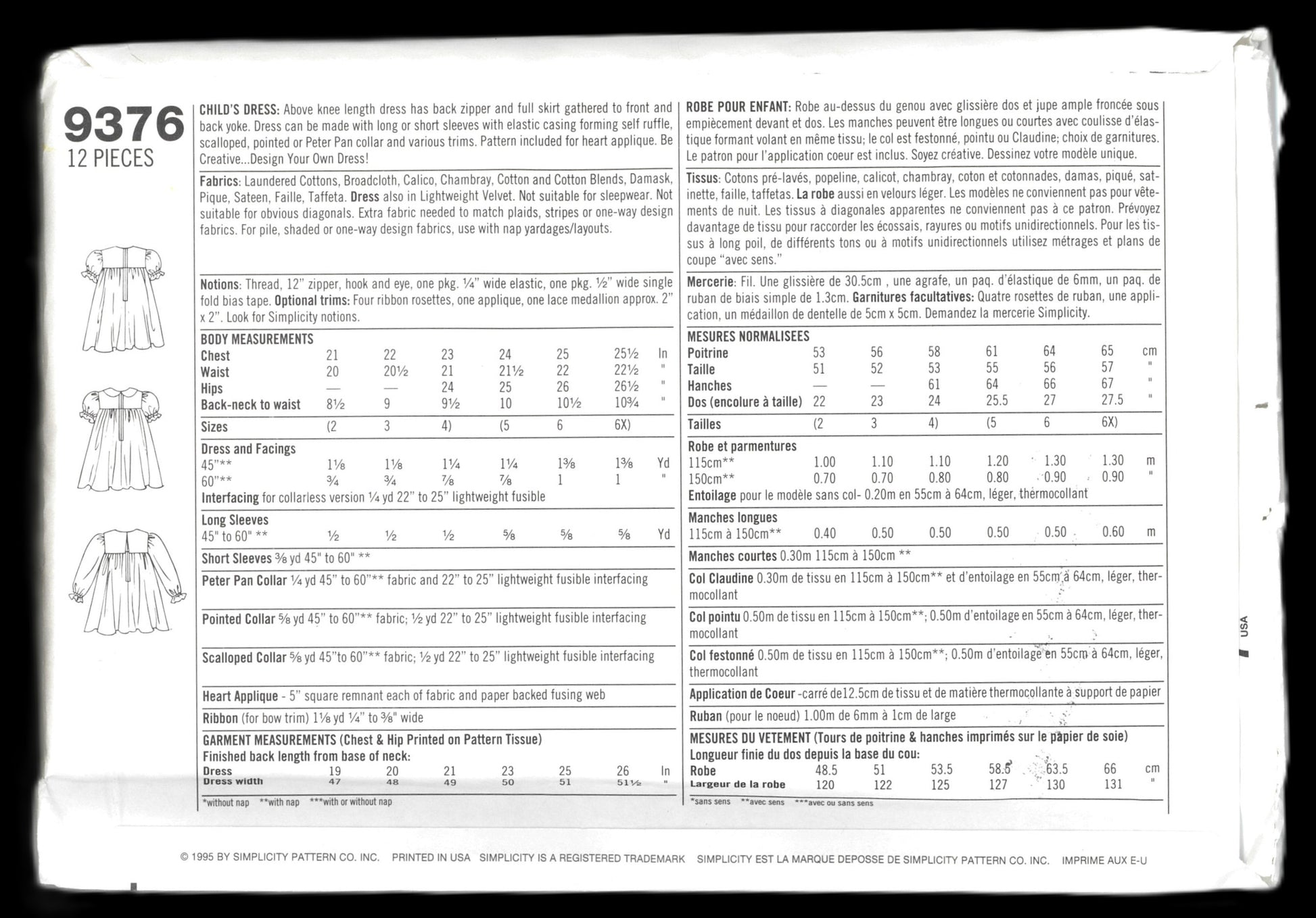 Simplicity 9376 Design your Own Girls CHilds Dress Sewing Pattern