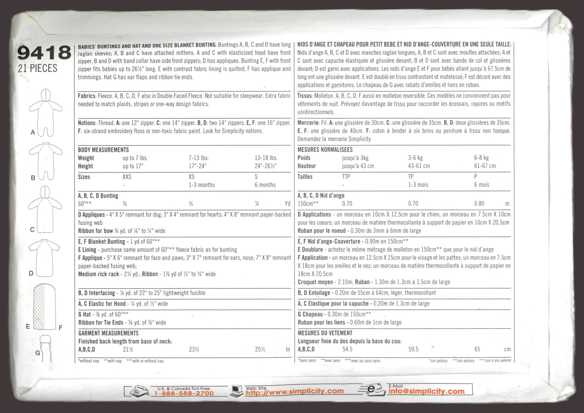 Simplicity 9418 Babies Buntings and Hat and One Size Blanket Bunting Sewing Pattern