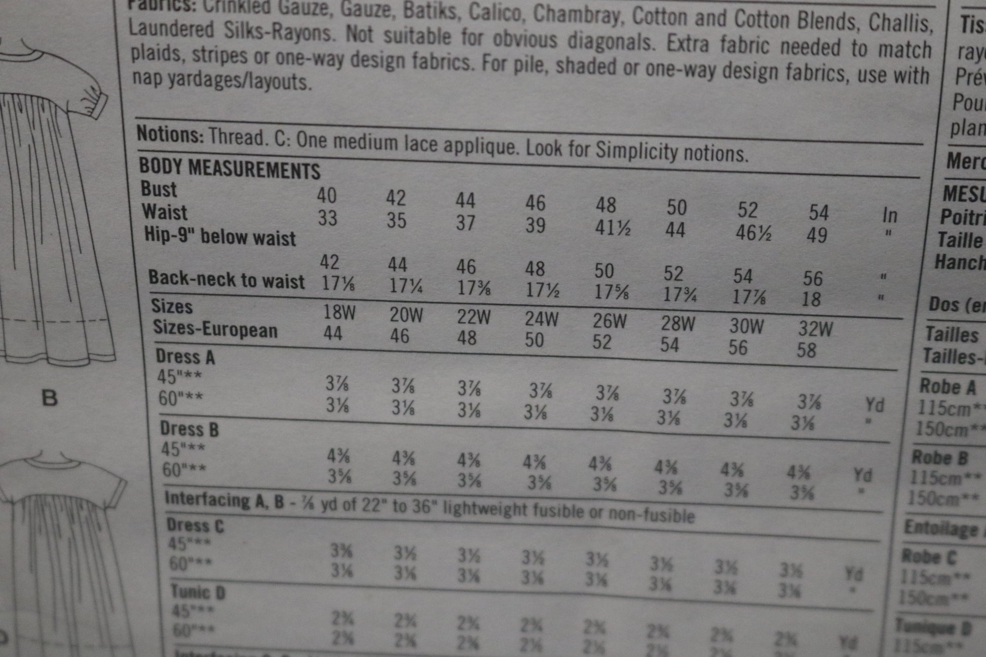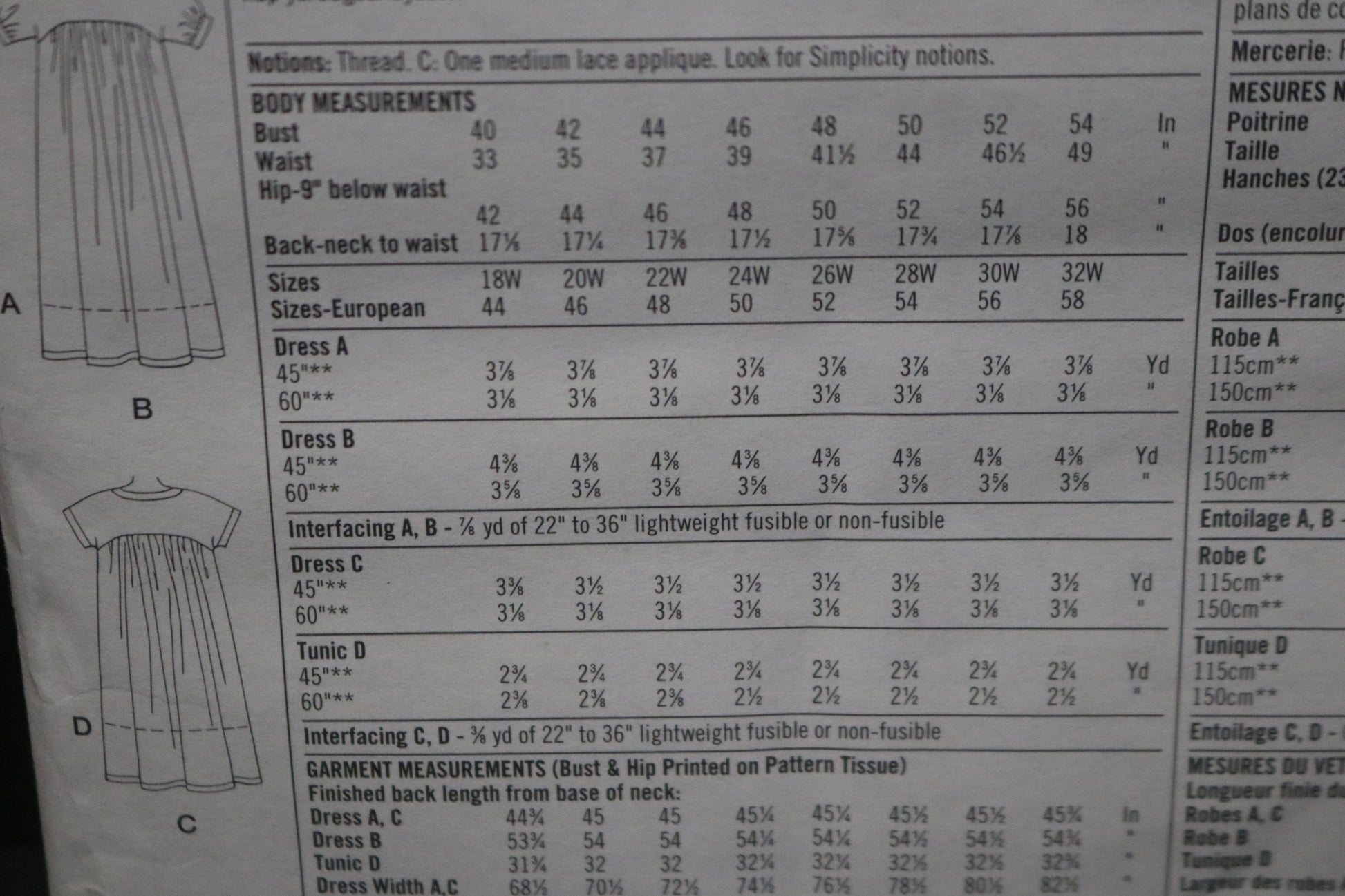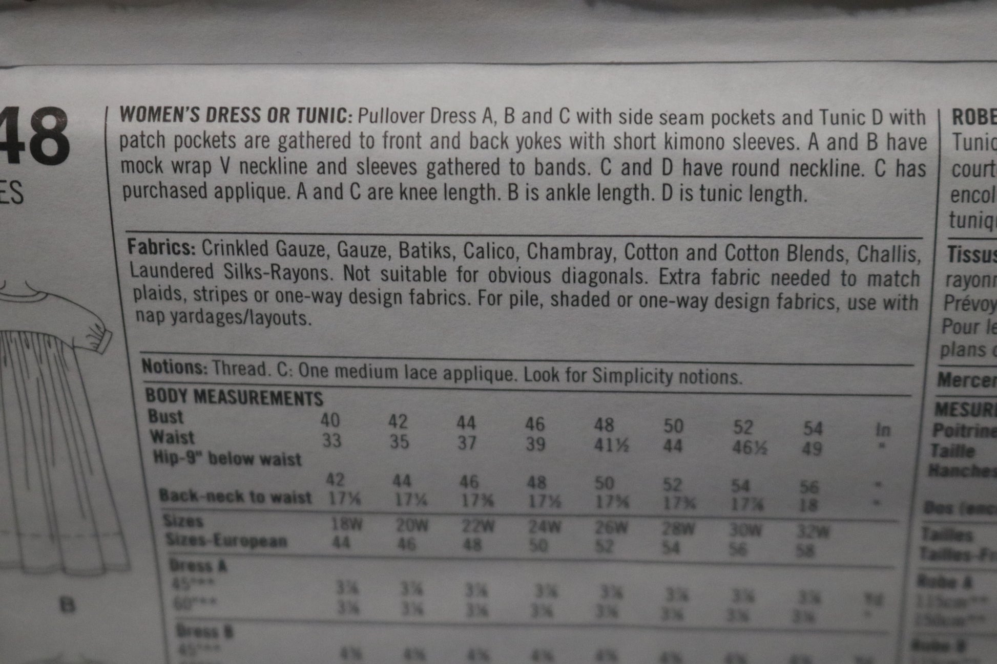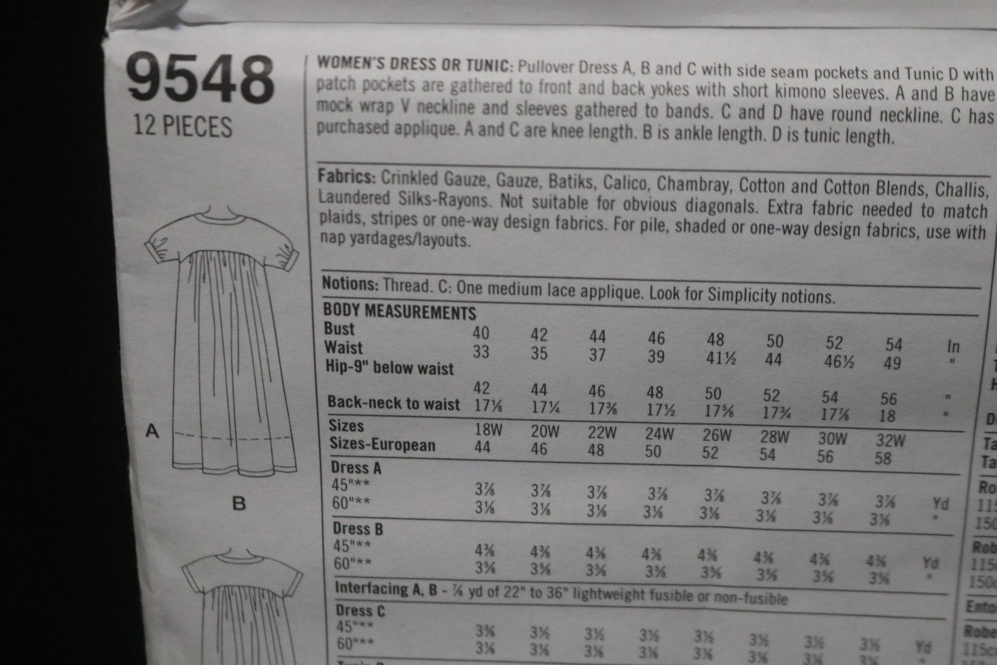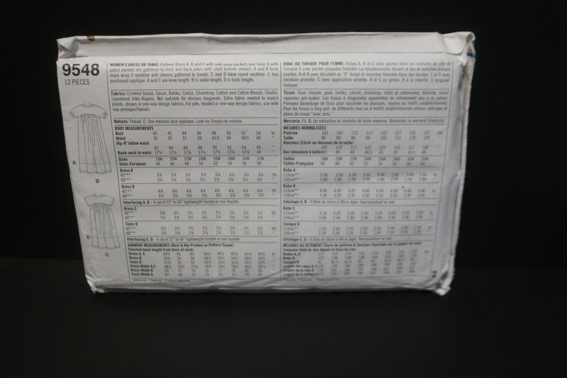 Simplicity 9548 Womens Dress or Tunic Sewing Pattern UNCUT Size 18w - 24w