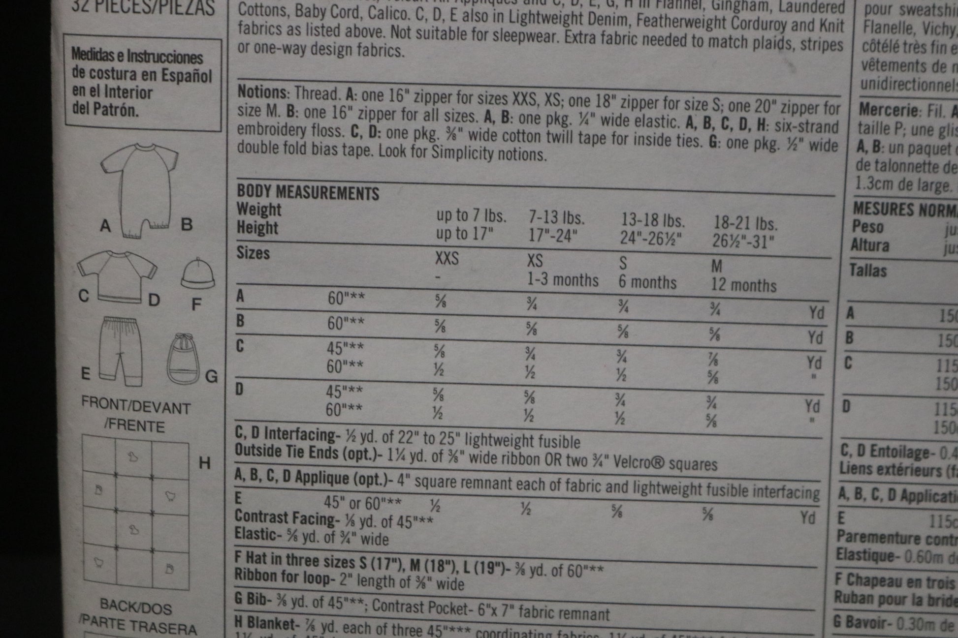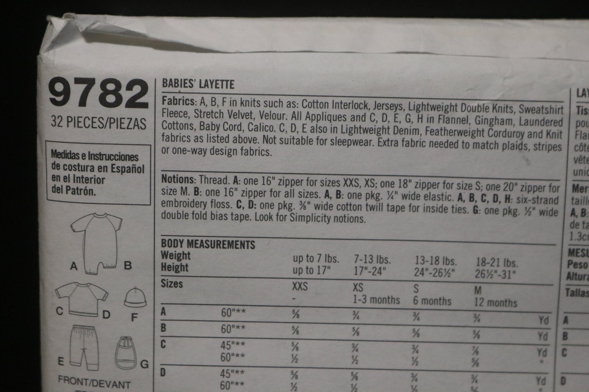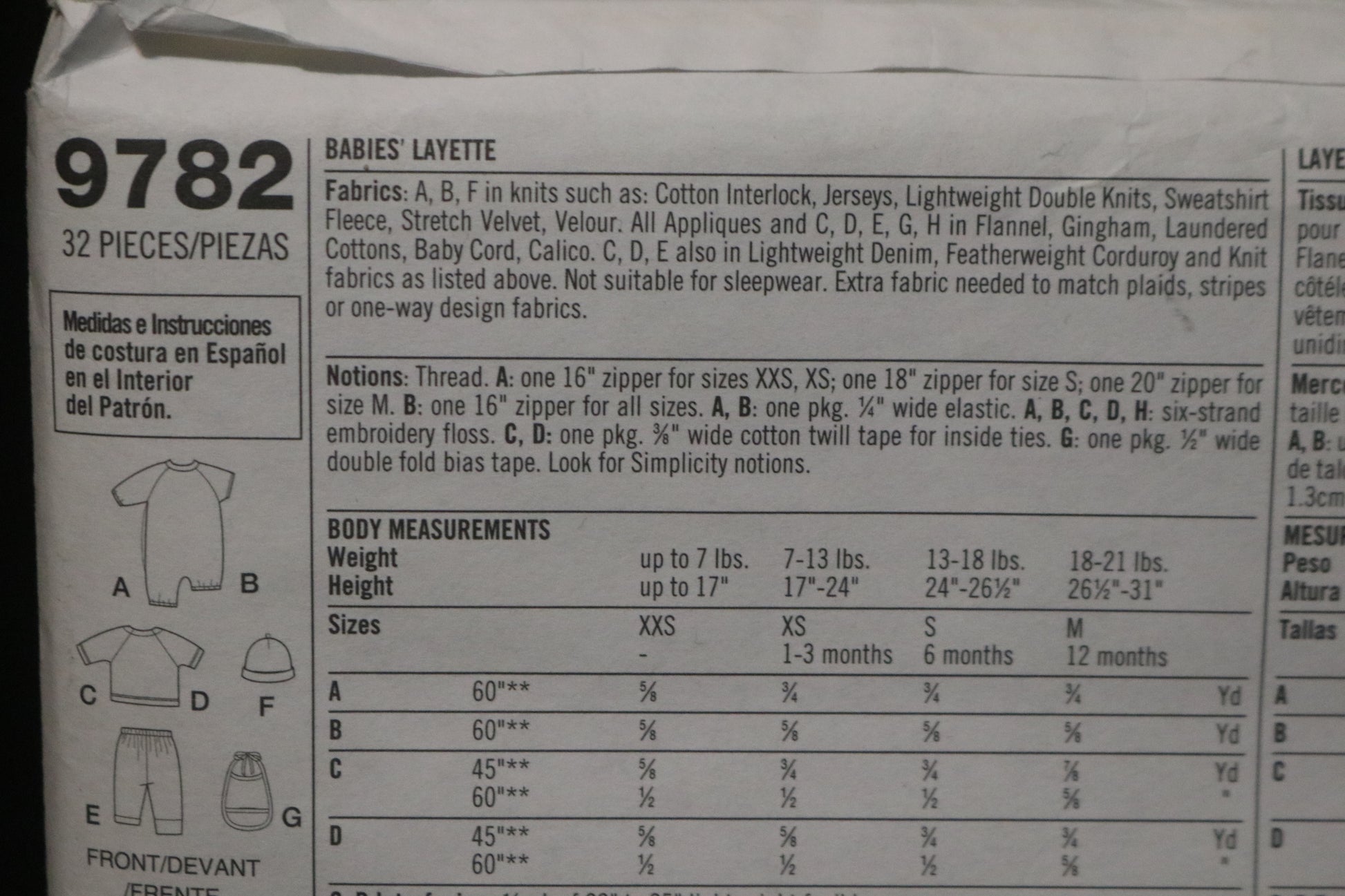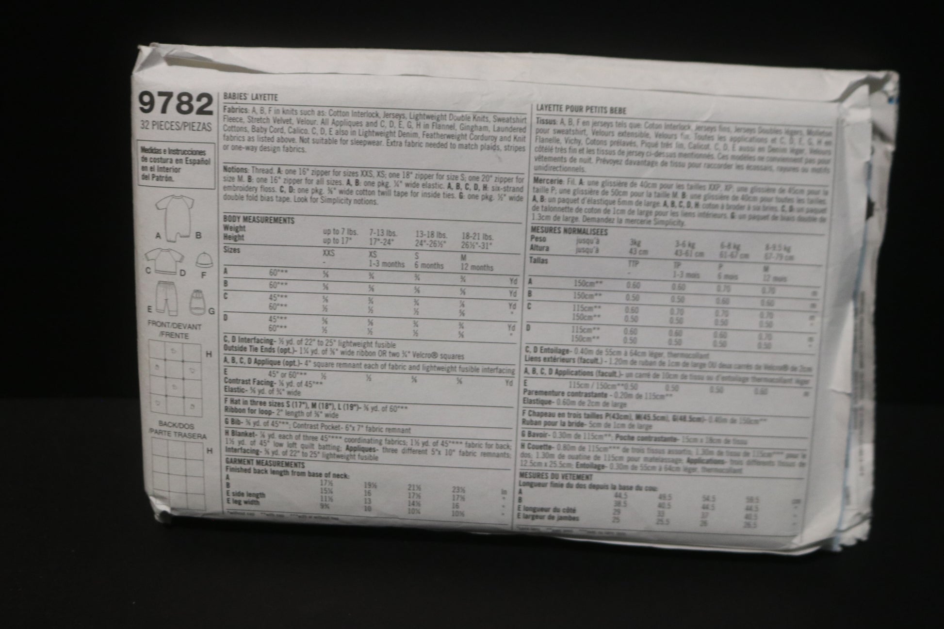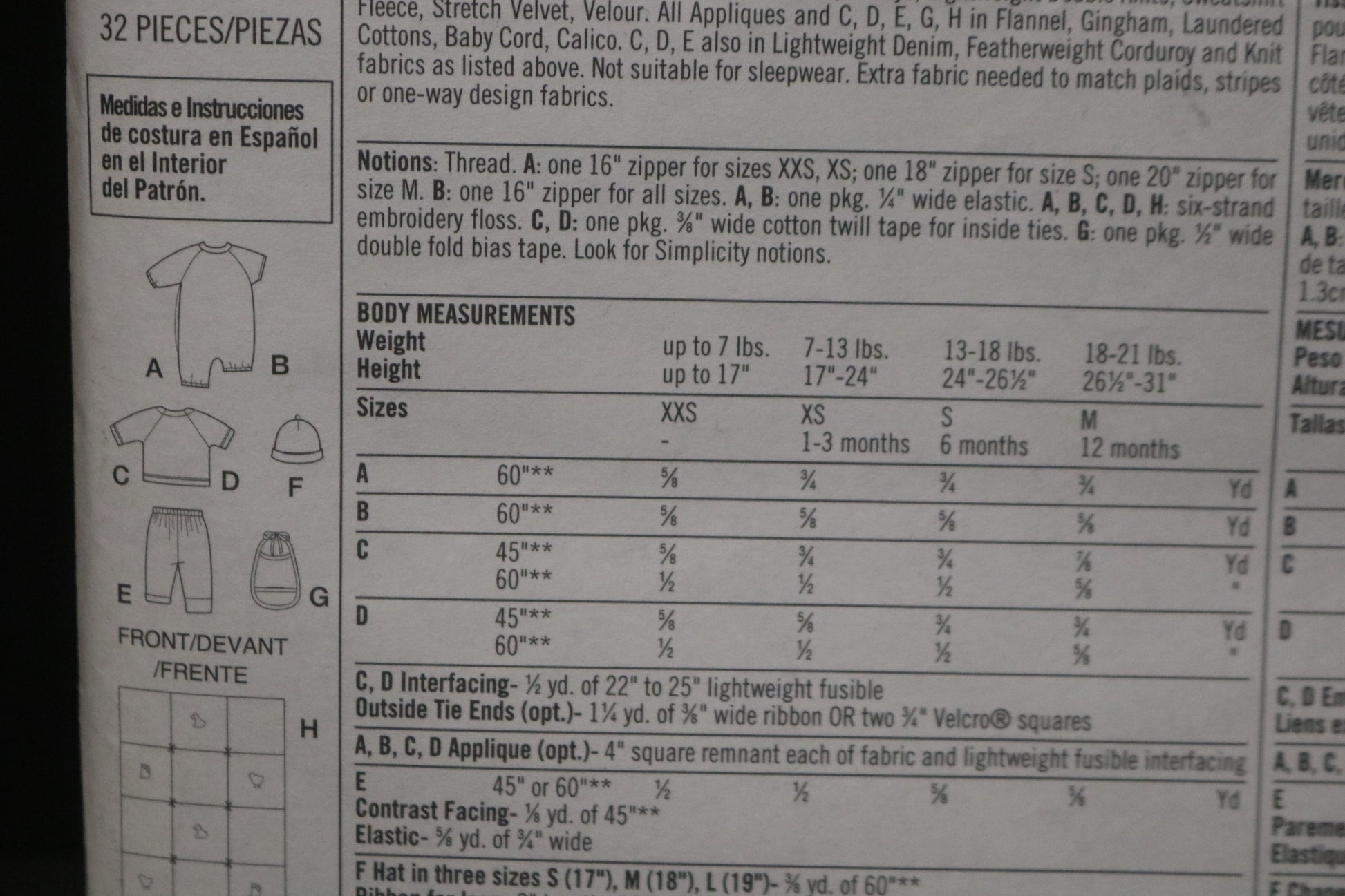 Simplicity 9782 Babies Layette Sewing Pattern - UNCUT - Size XXS XS S M