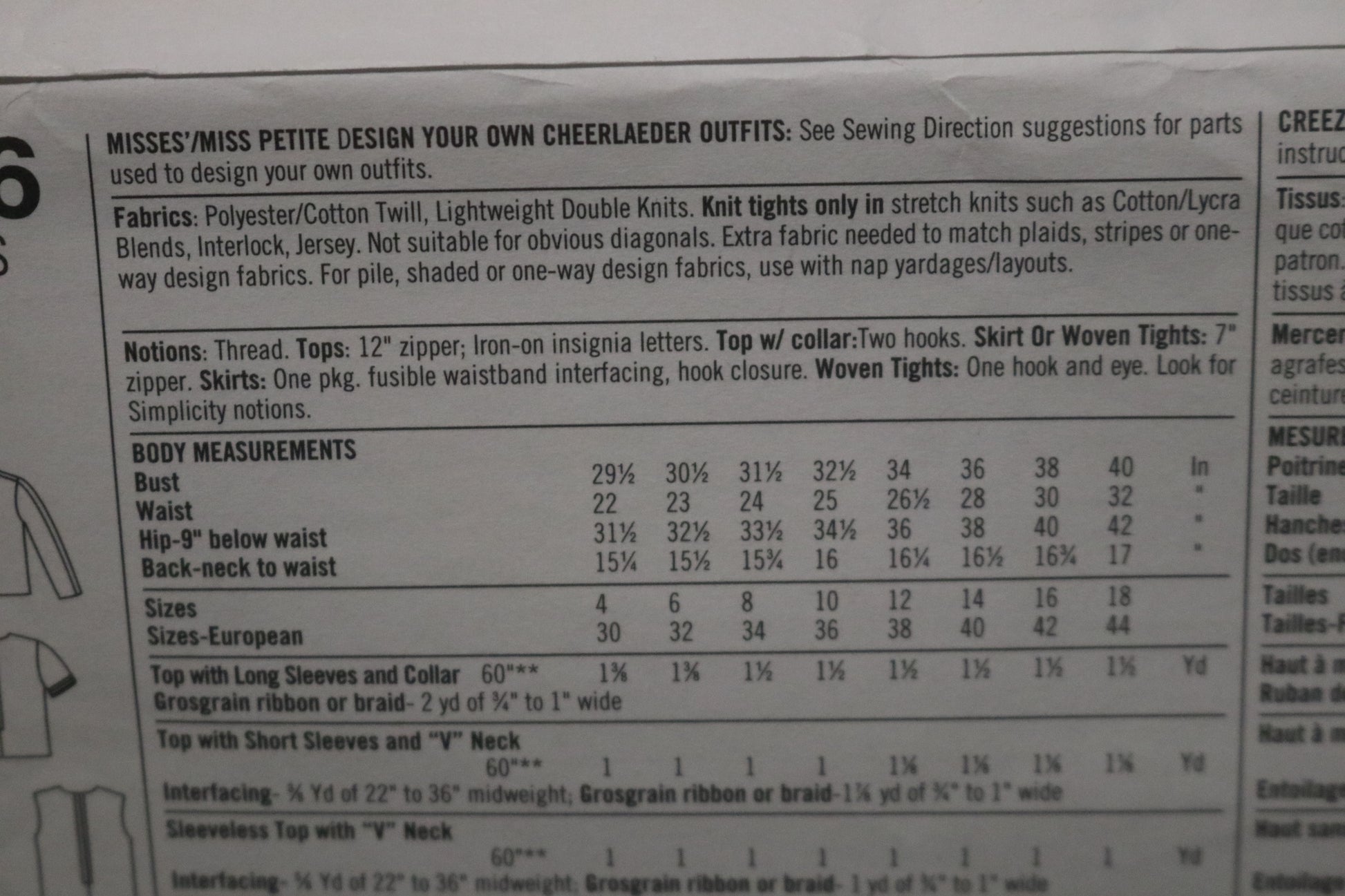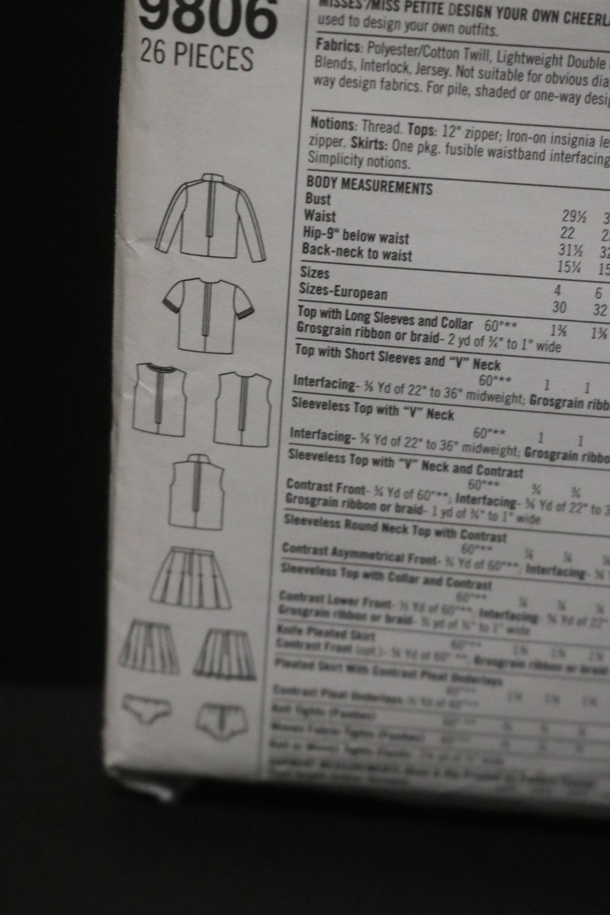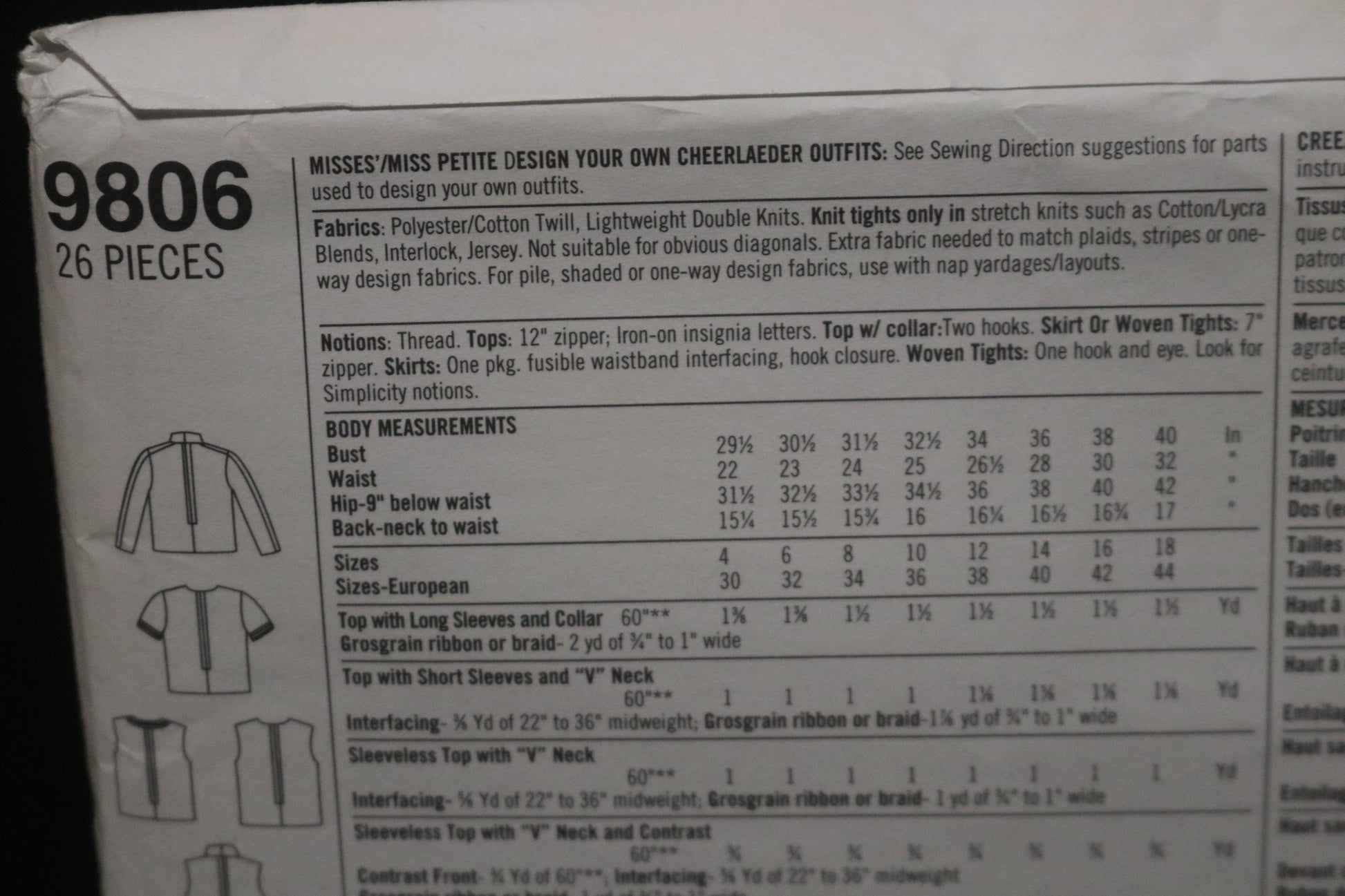 Simplicity 9806 Misses / Miss Petite Design Your Own Cheerleader Outfits Costumes Sewing Pattern