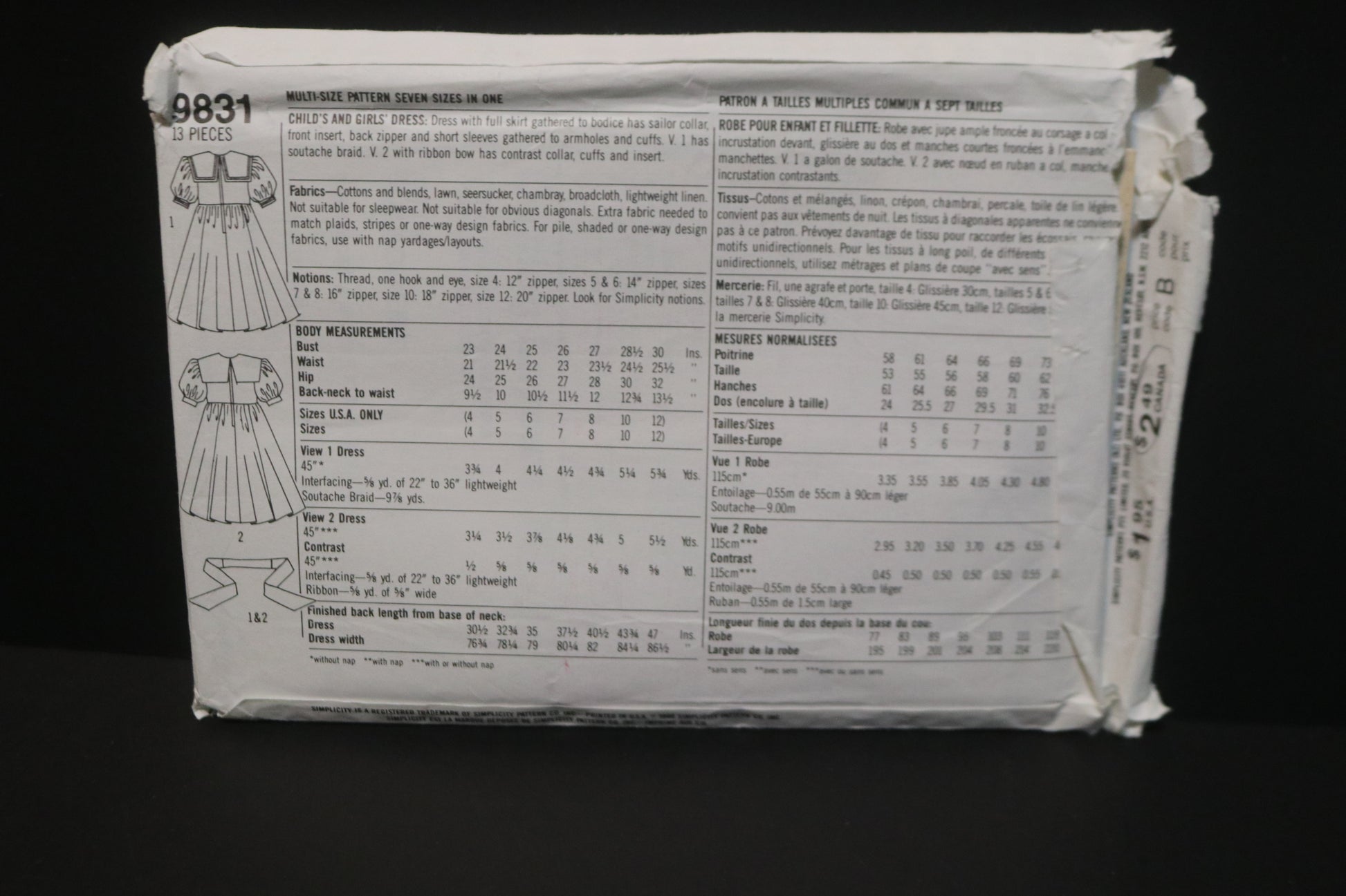 Simplicity 9831 Girls and Childs Dress Sewing Pattern