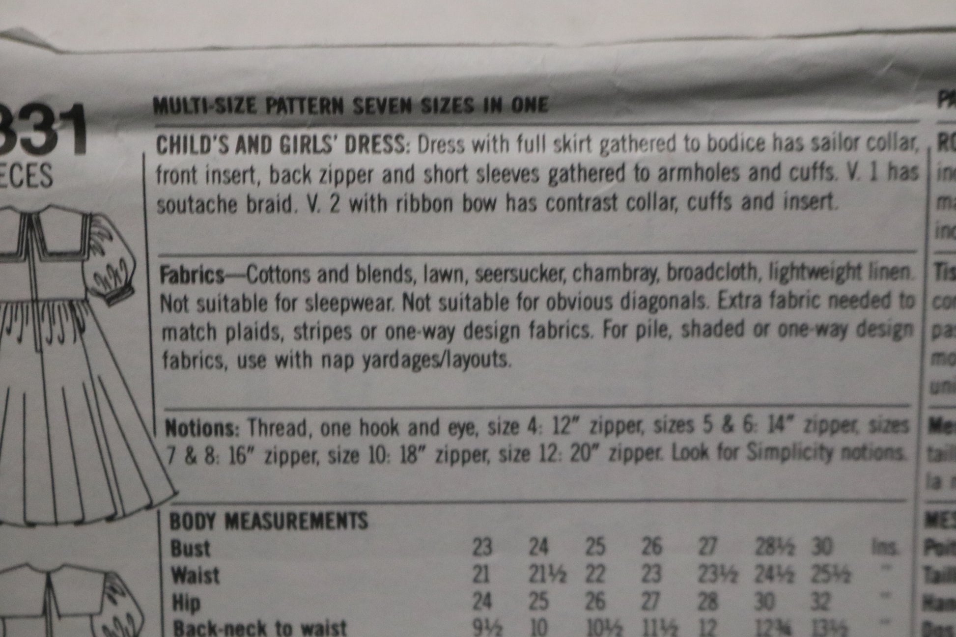 Simplicity 9831 Girls and Childs Dress Sewing Pattern - UNCUT - Size 4 - 12