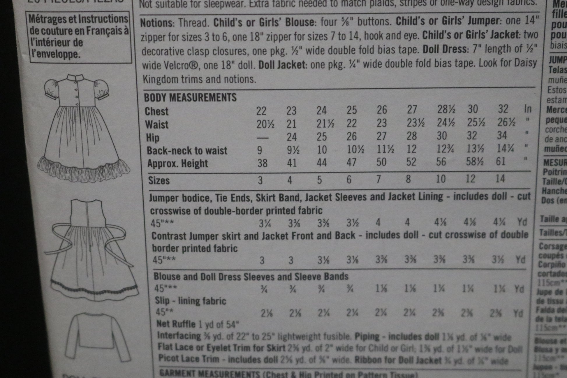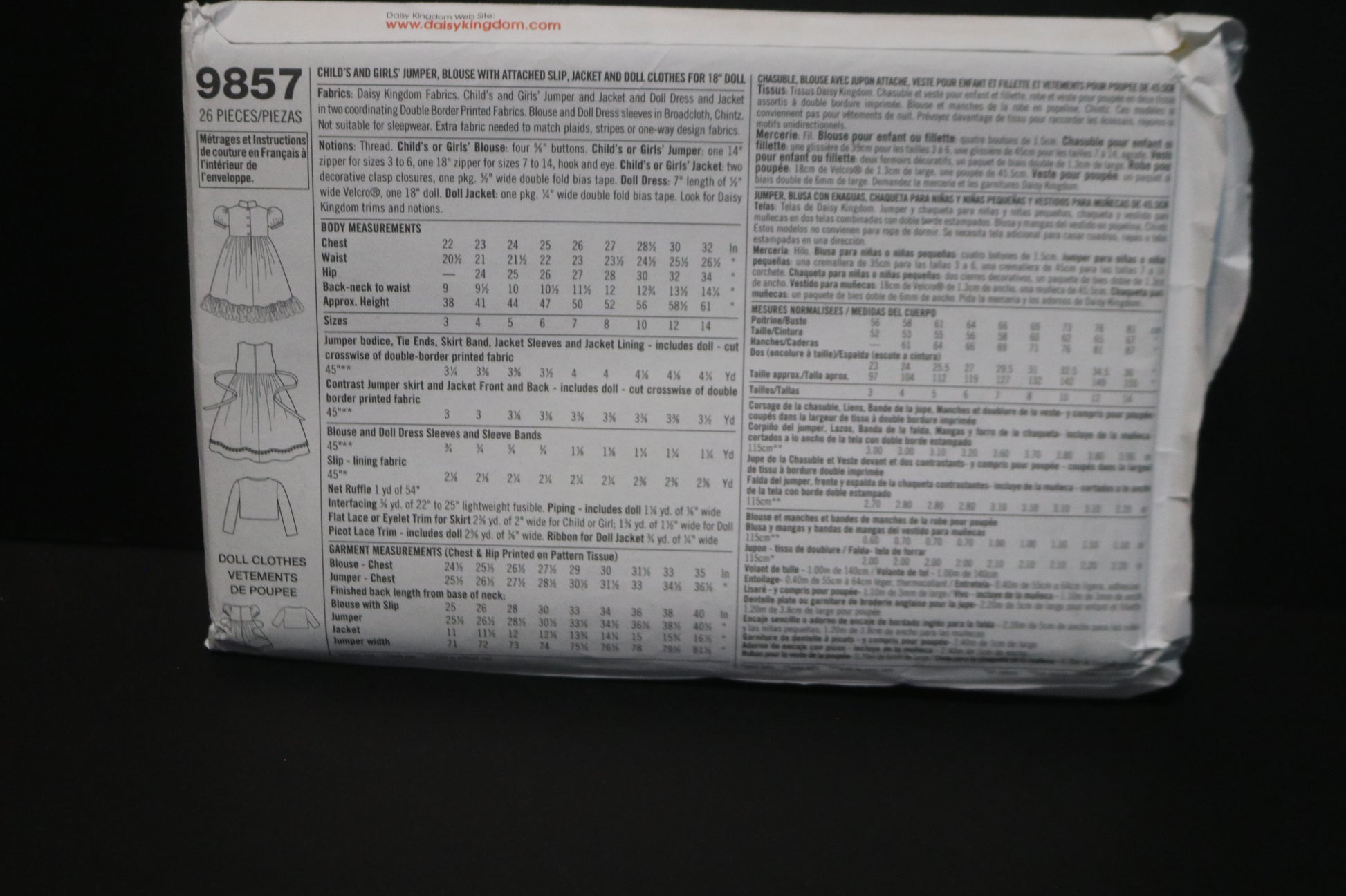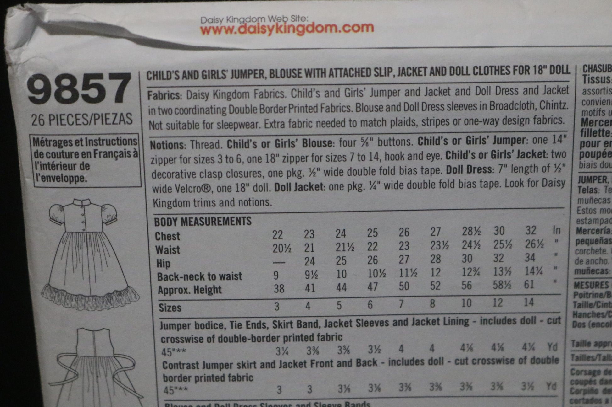 Simplicity 9857 Daisy Kingdom Girls Jumper Blouse with attached slip, Jacket and Doll Clothes for 18" Doll Sewing Pattern - UNCUT - Size 3 4 5 6 or Size 7 8 10 12 14