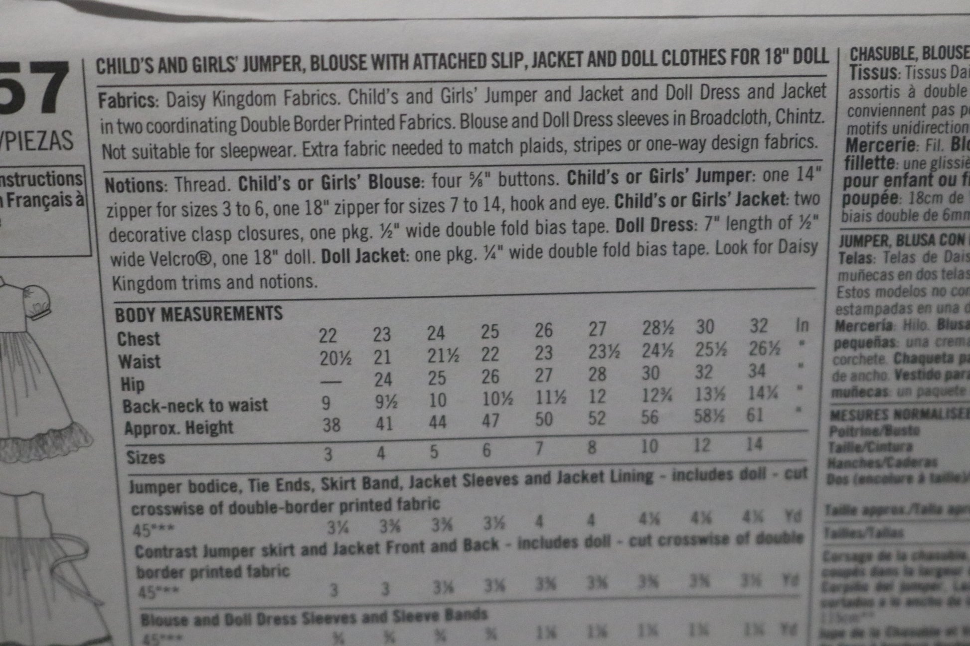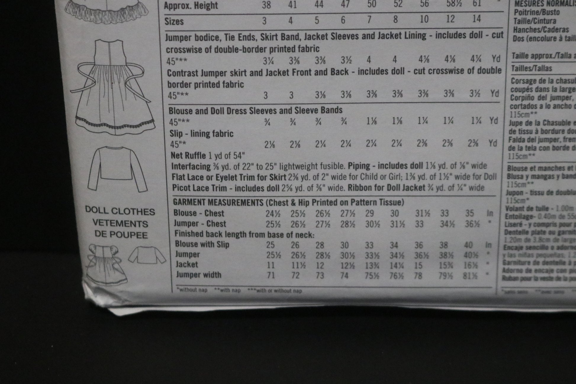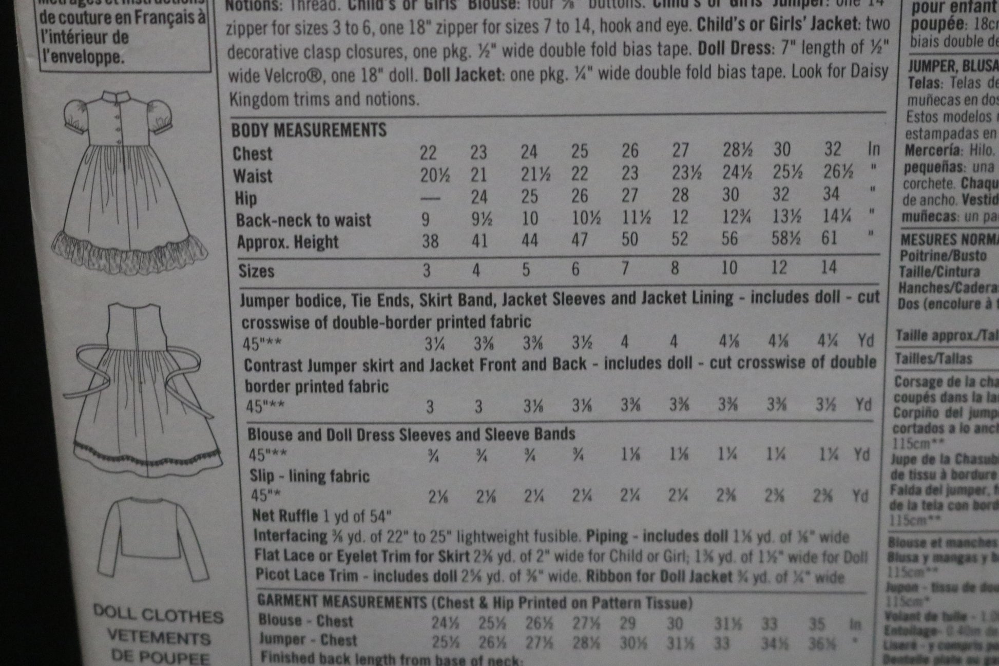 Simplicity 9857 Daisy Kingdom Girls Jumper Blouse with attached slip, Jacket and Doll Clothes for 18" Doll Sewing Pattern - UNCUT - Size 3 4 5 6 or Size 7 8 10 12 14