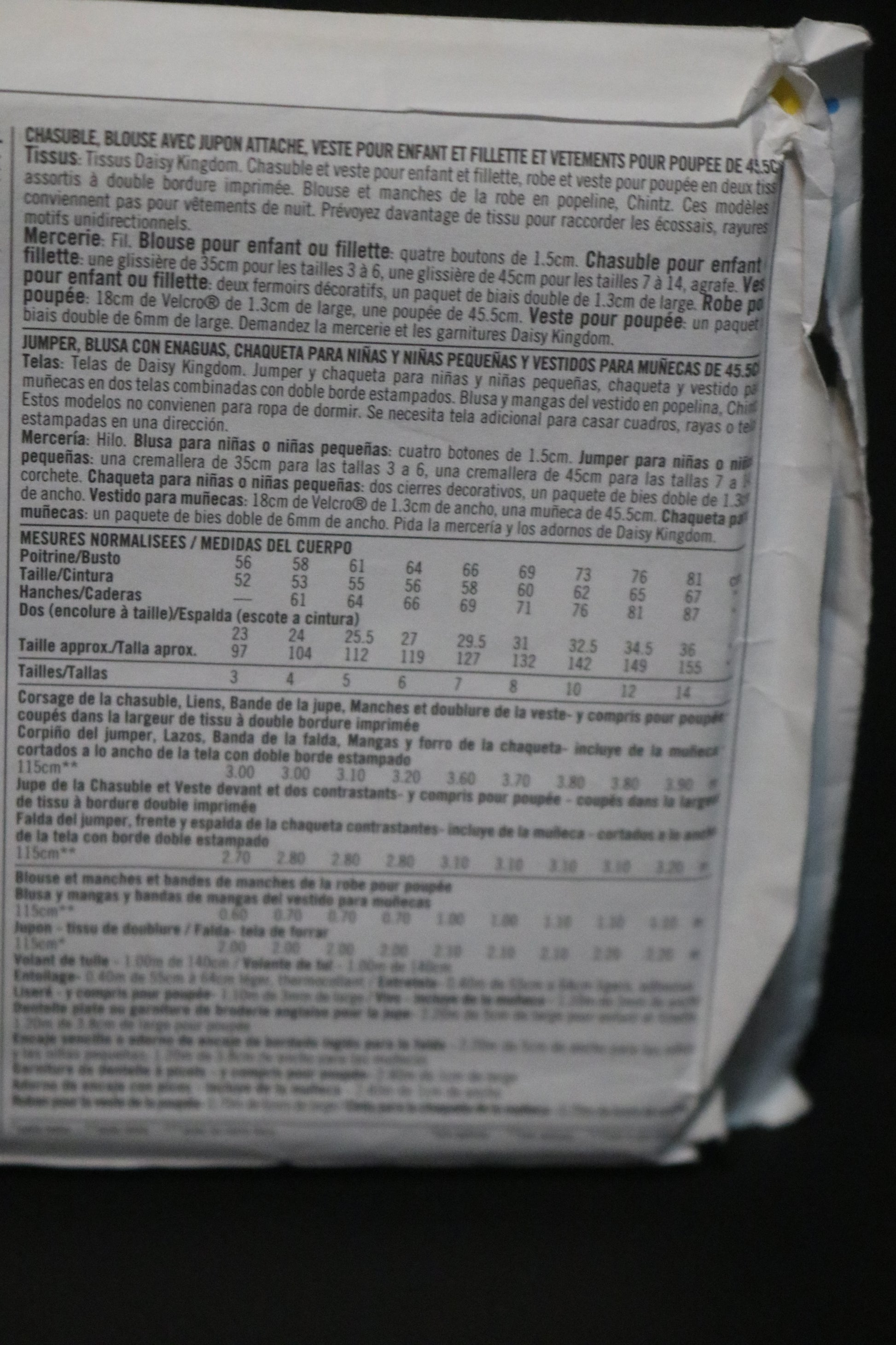 Size 3 4 5 6 or Size 7 8 10 12 14 Please reference the photos for pattern details.