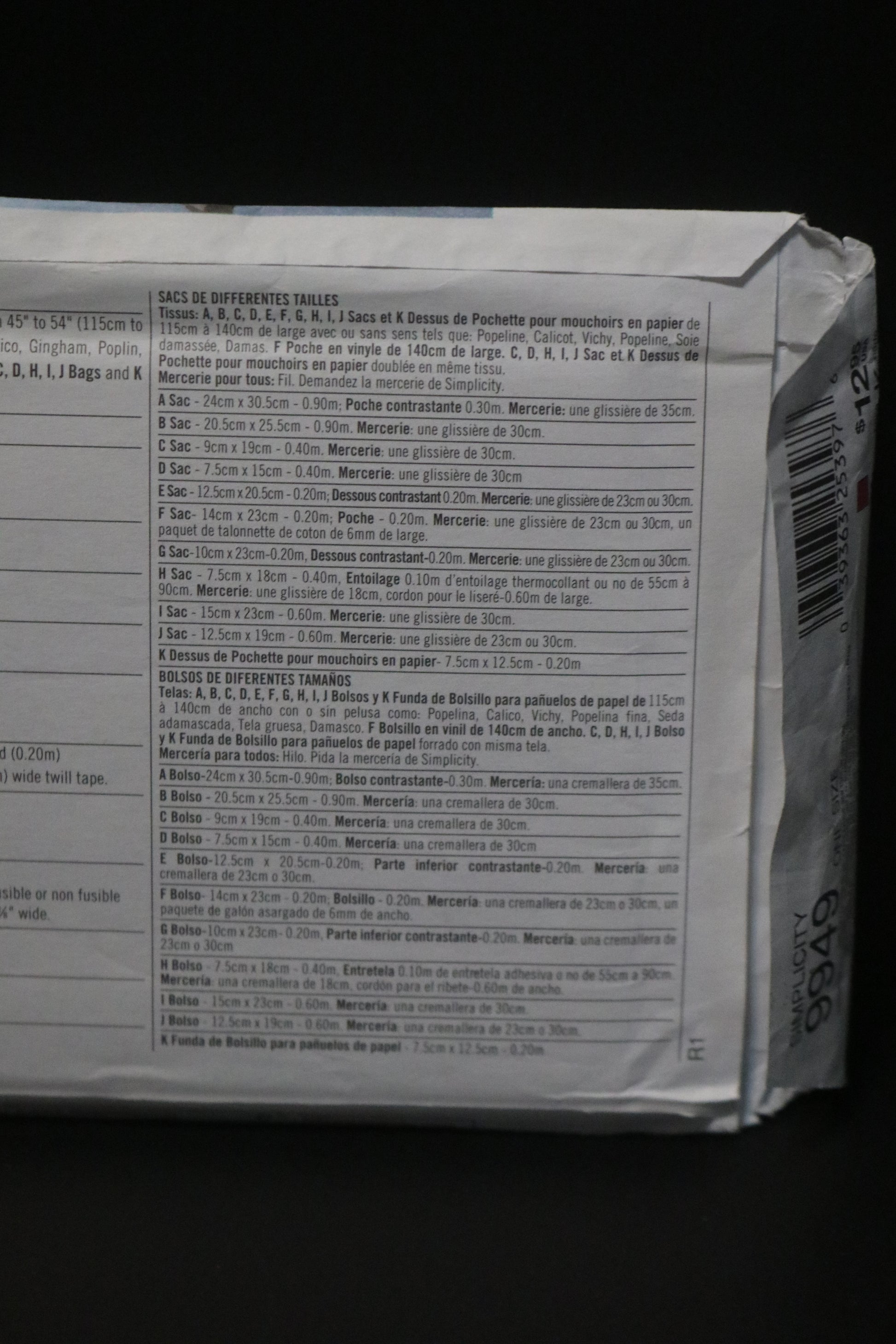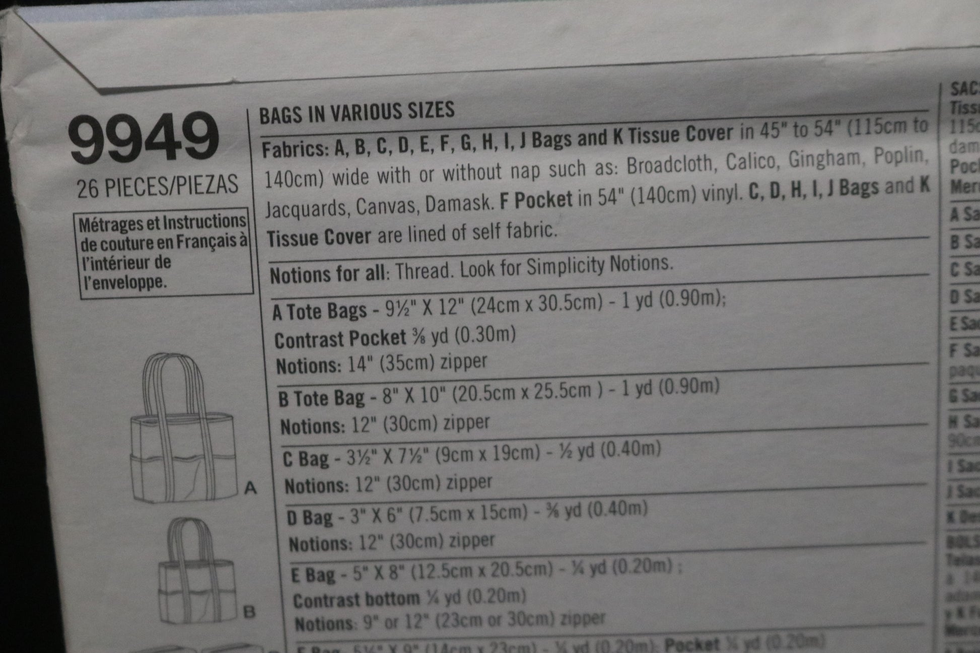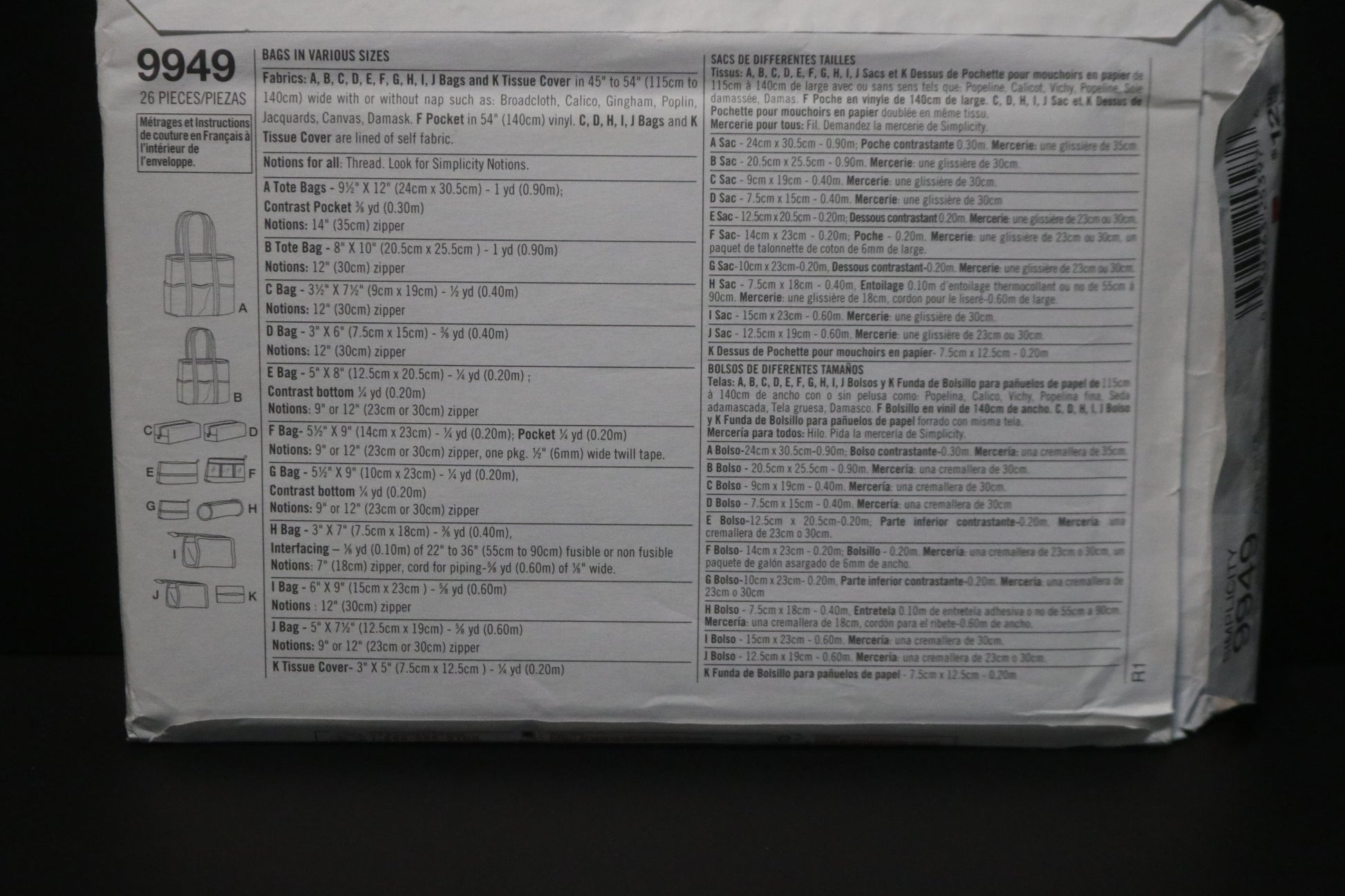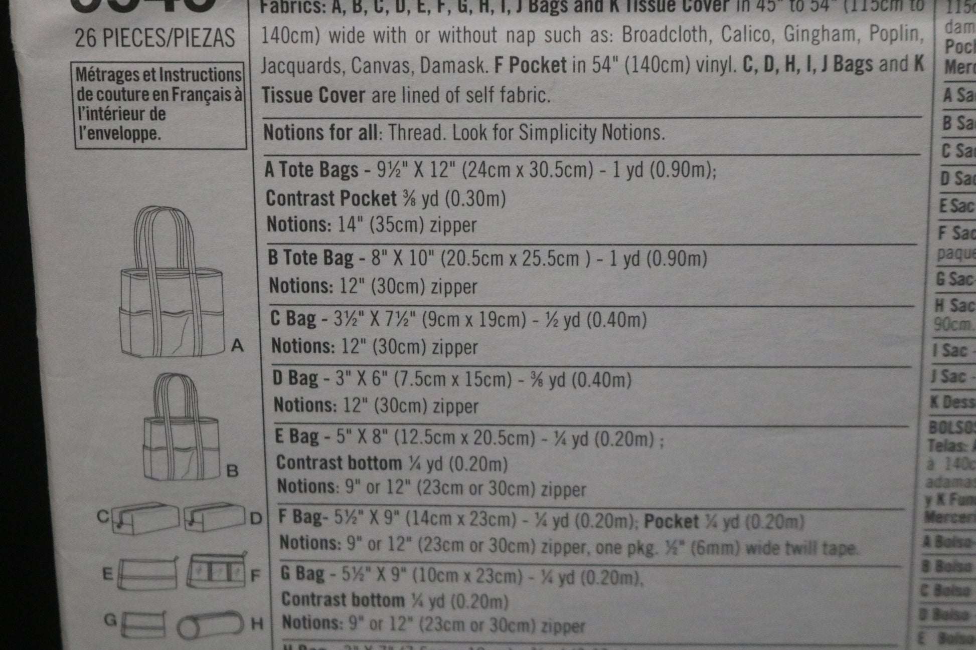 Simplicity 9949 Bags in Various Sizes Sewing Pattern