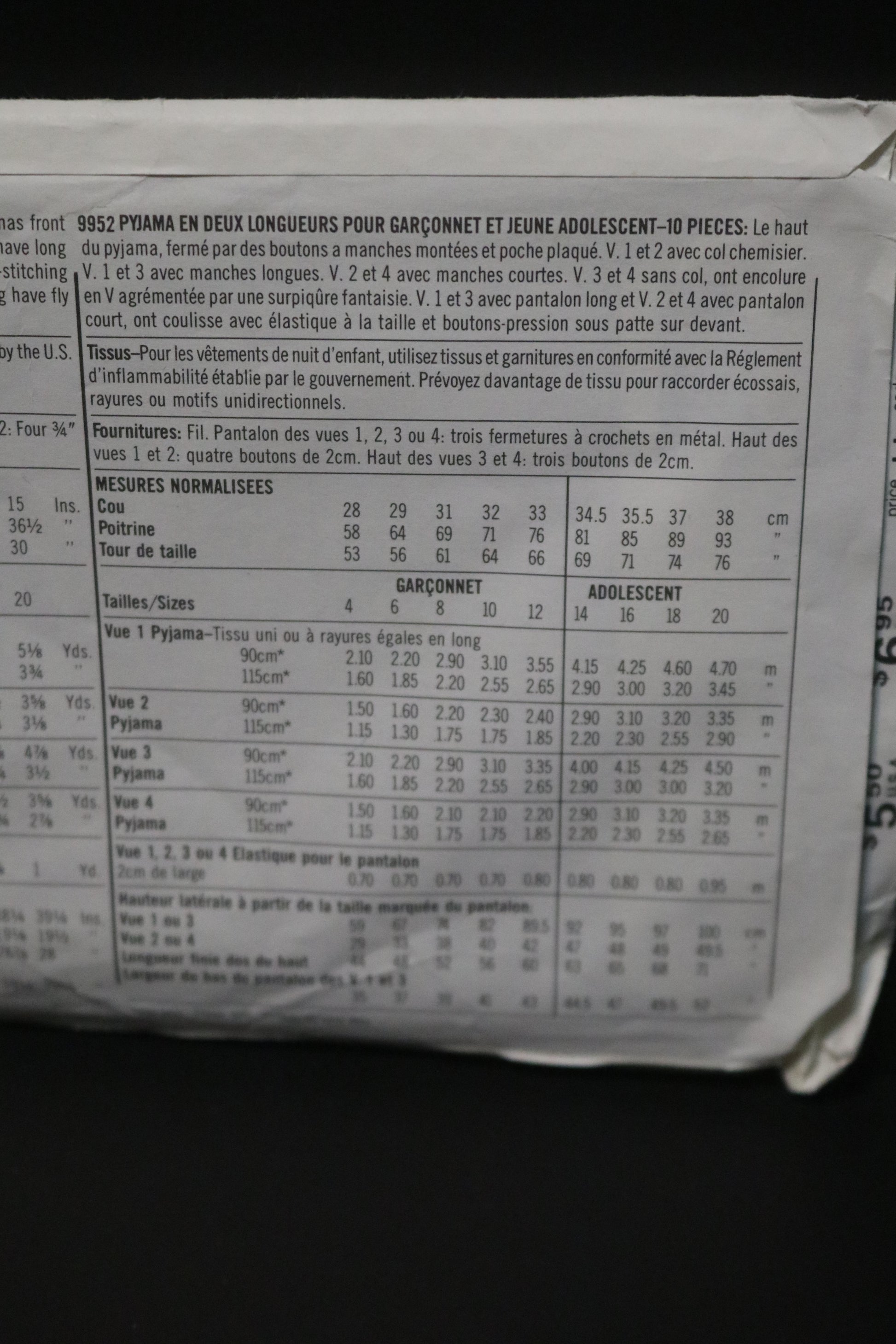 Simplicity 9952 Boys and Teen Boys Pajamas in Two Length Sewing Pattern
