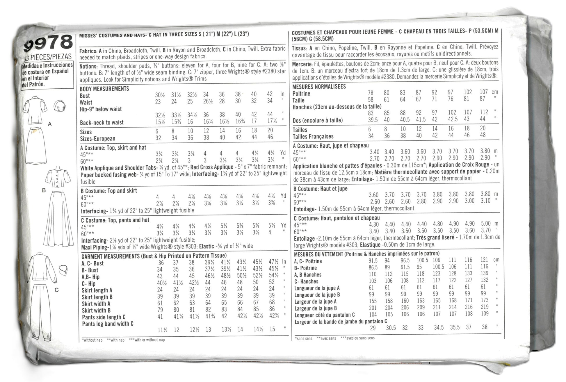 Simplicity 9978 Misses Costumes and Hats Sewing Pattern