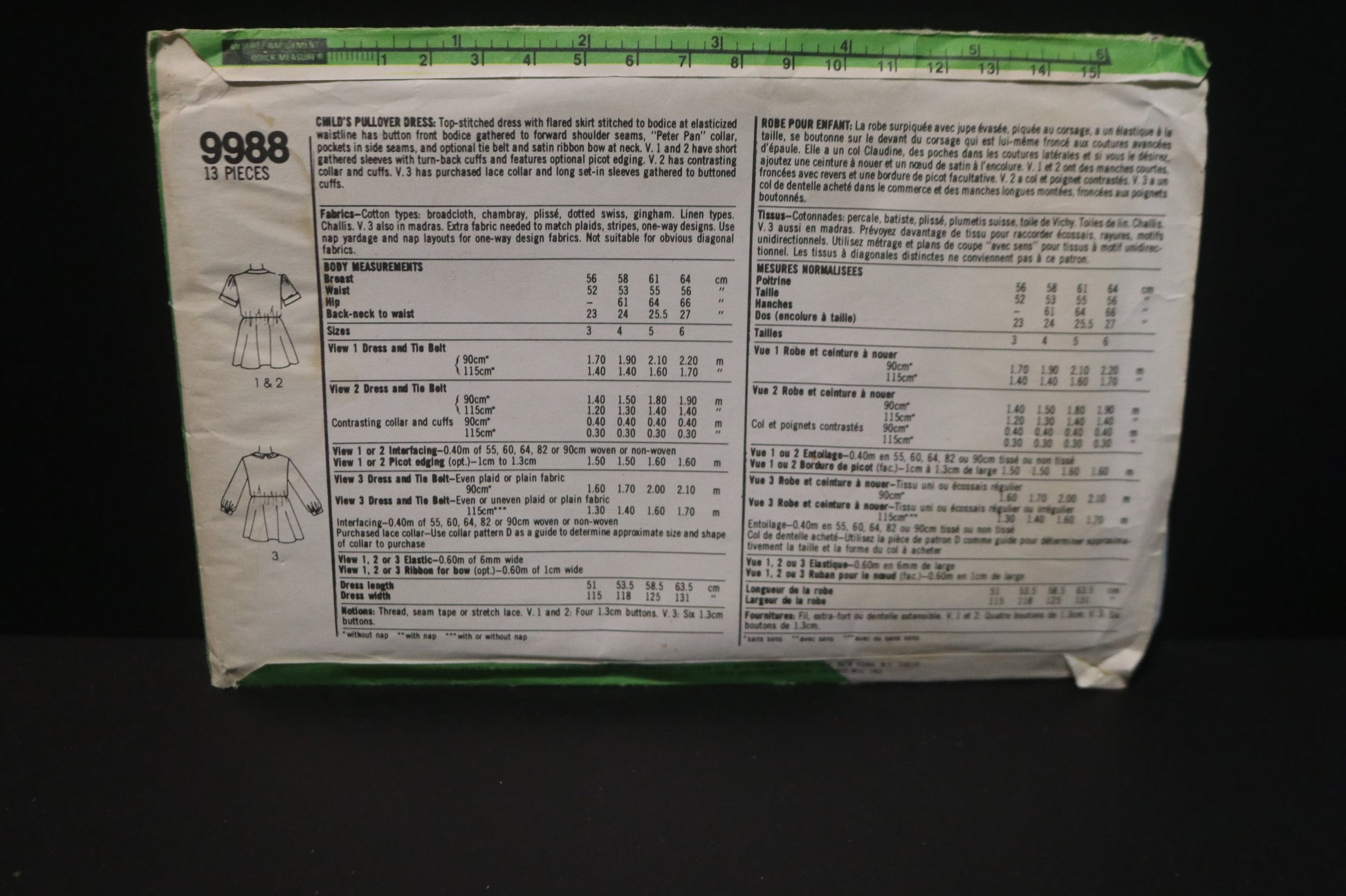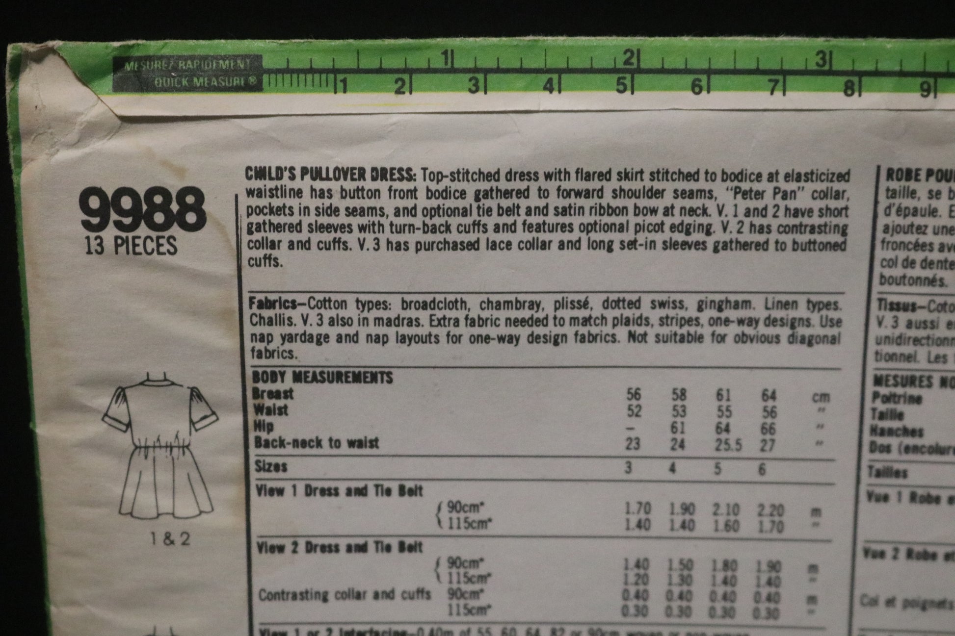 Simplicity 9988 Child's Pullover Dress Sewing Pattern