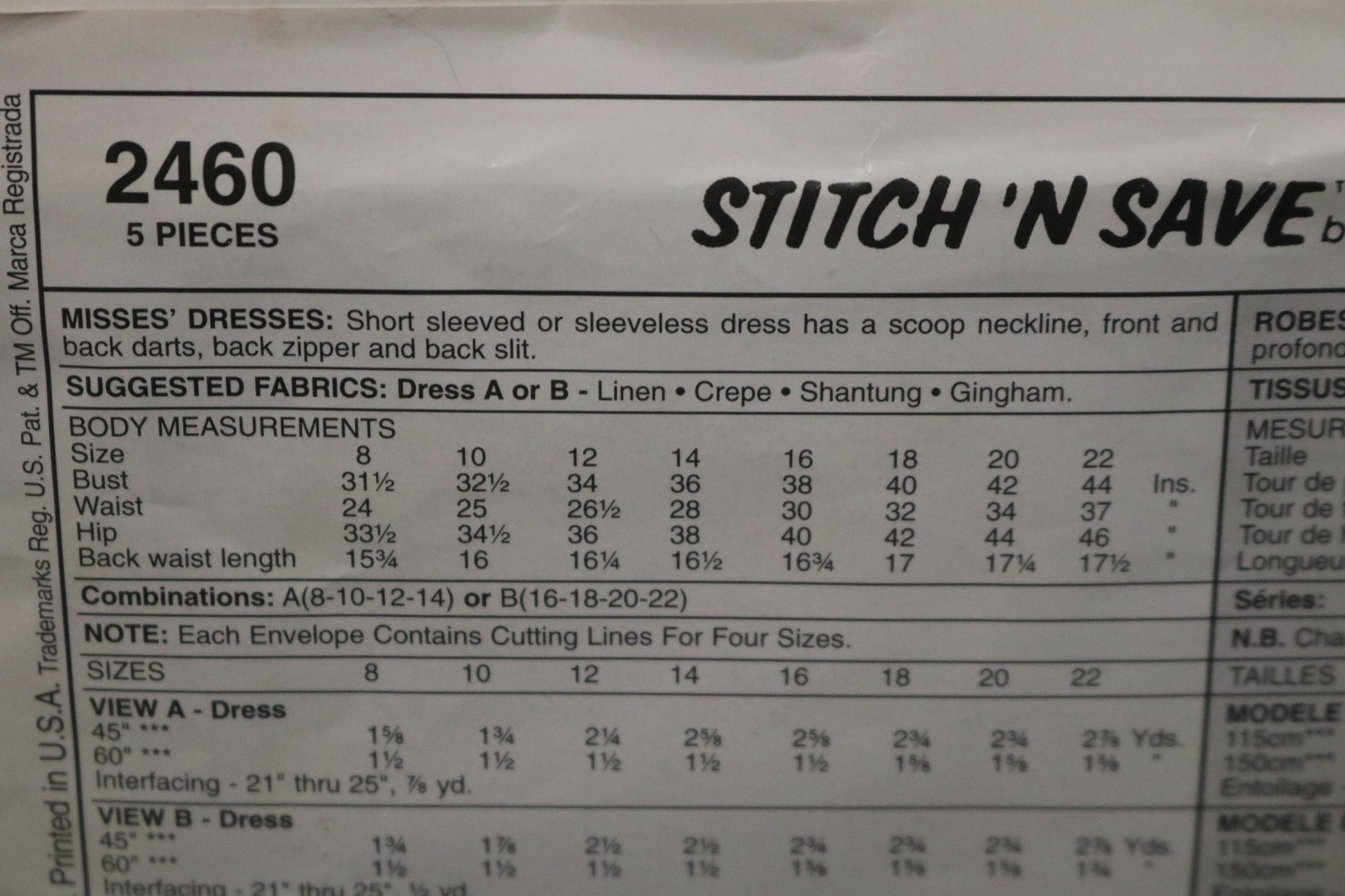 Stitch n Save 2460 Misses Dresses Sewing Pattern