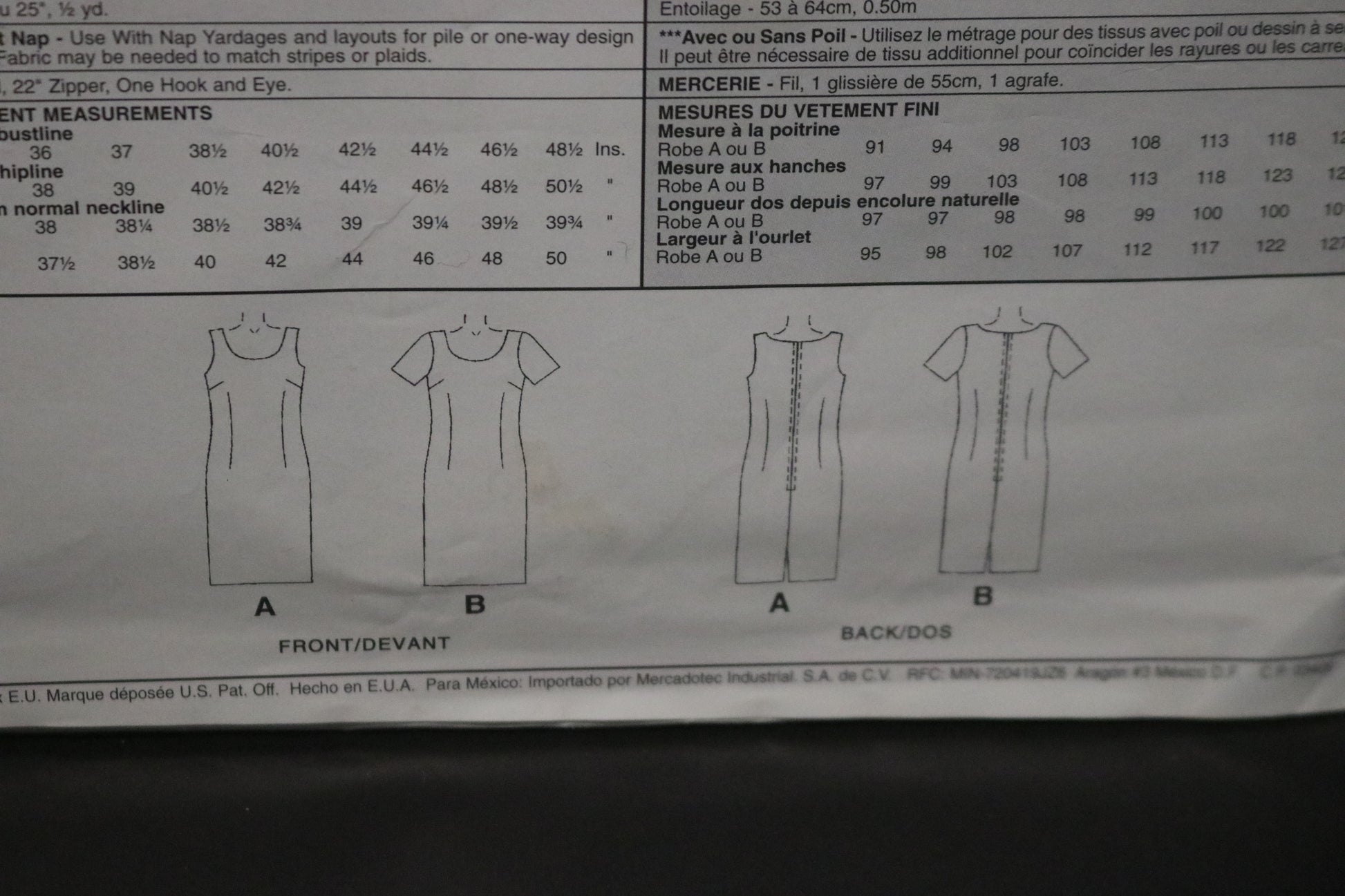 Short sleeved sleeveless dress with a scoop neckline, front and back darts, back zipper and back slit.