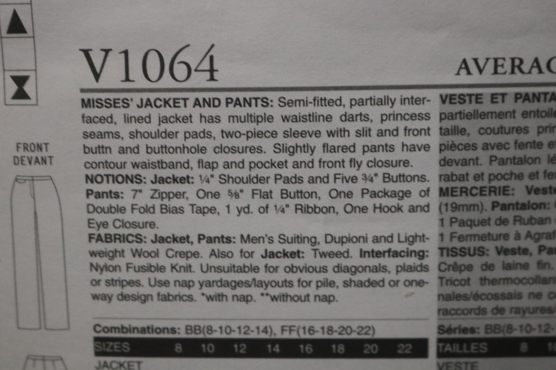 Vogue 1064 Anne Klein Misses Jacket and Pants Sewing Pattern