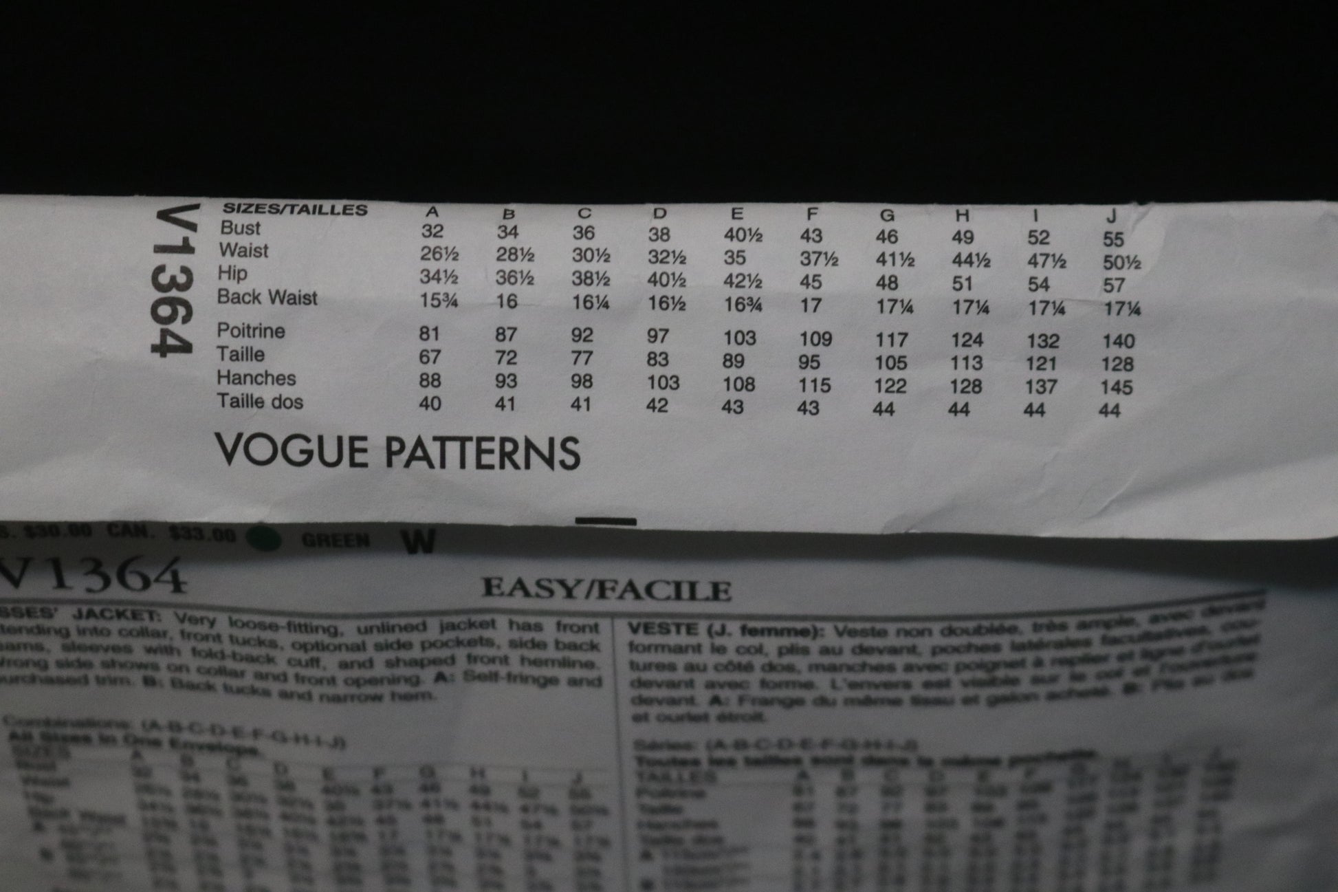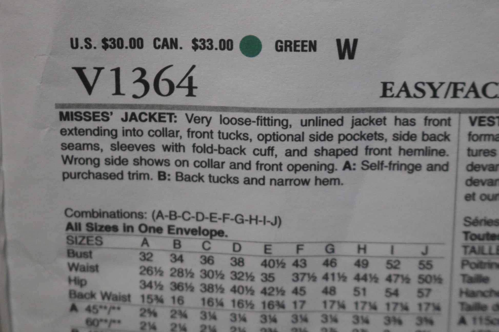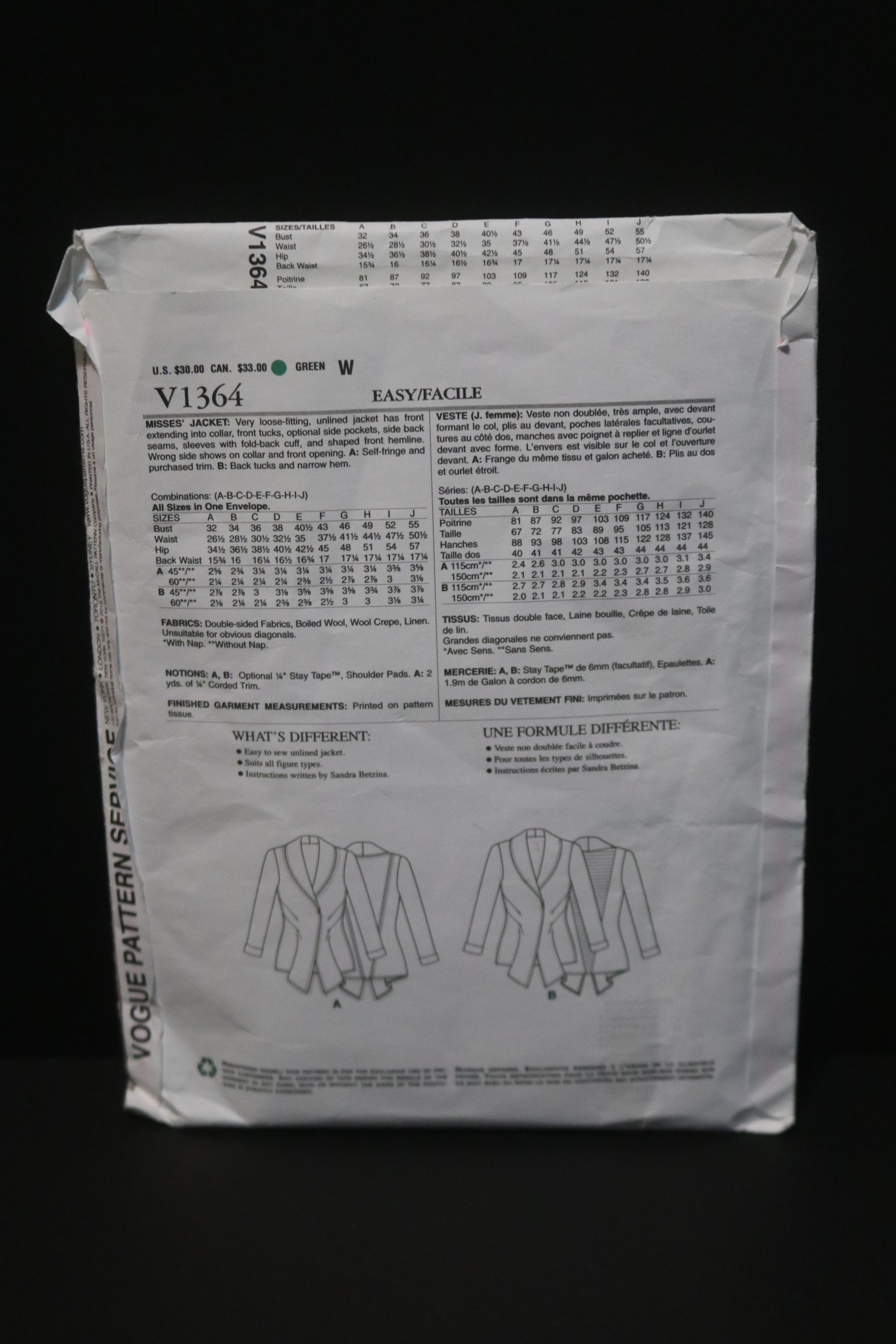 Vogue 1364 Sandra Betzina Misses Jacket Sewing Pattern - UNCUT - Size A B C D E F G H I J