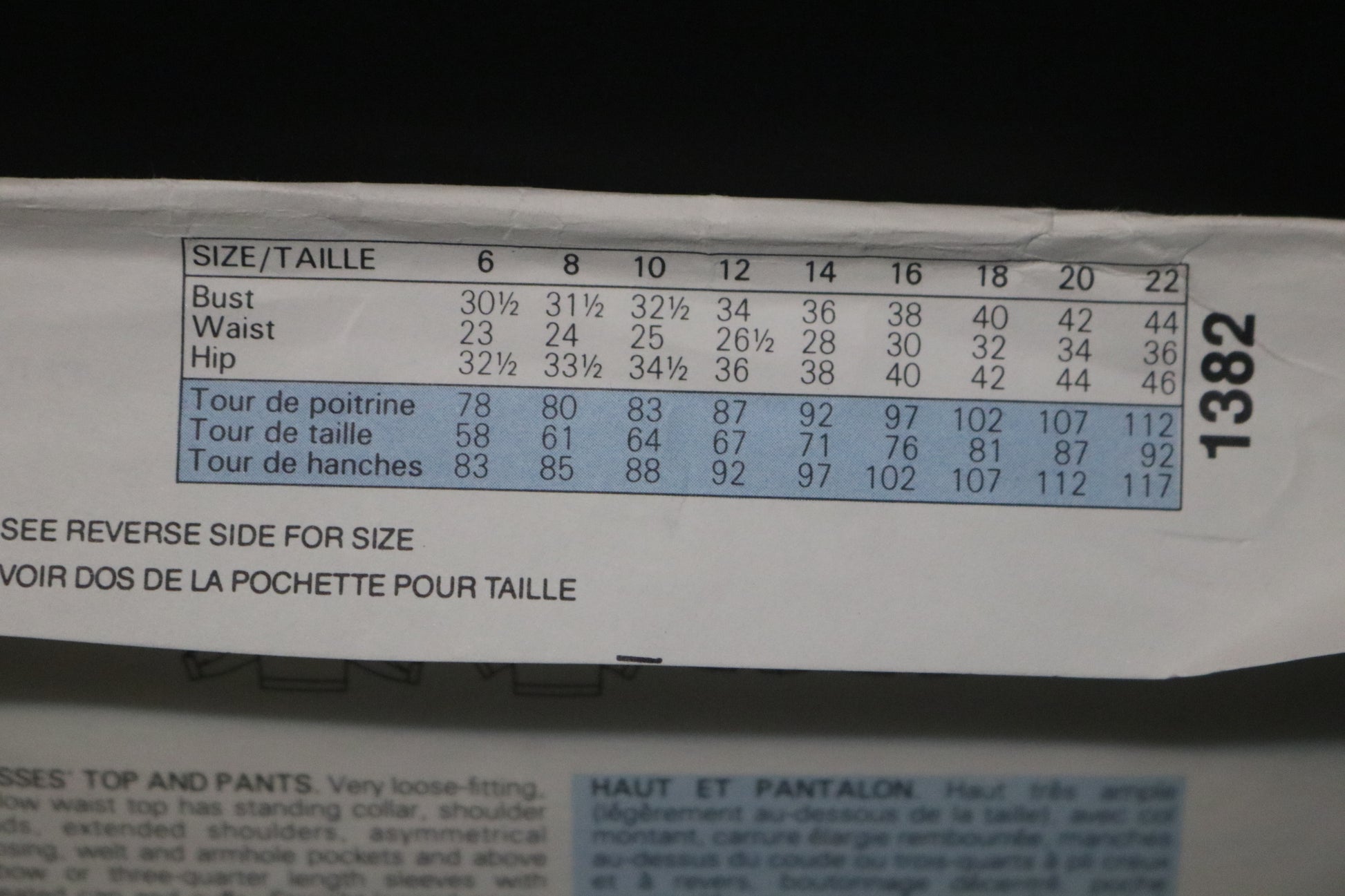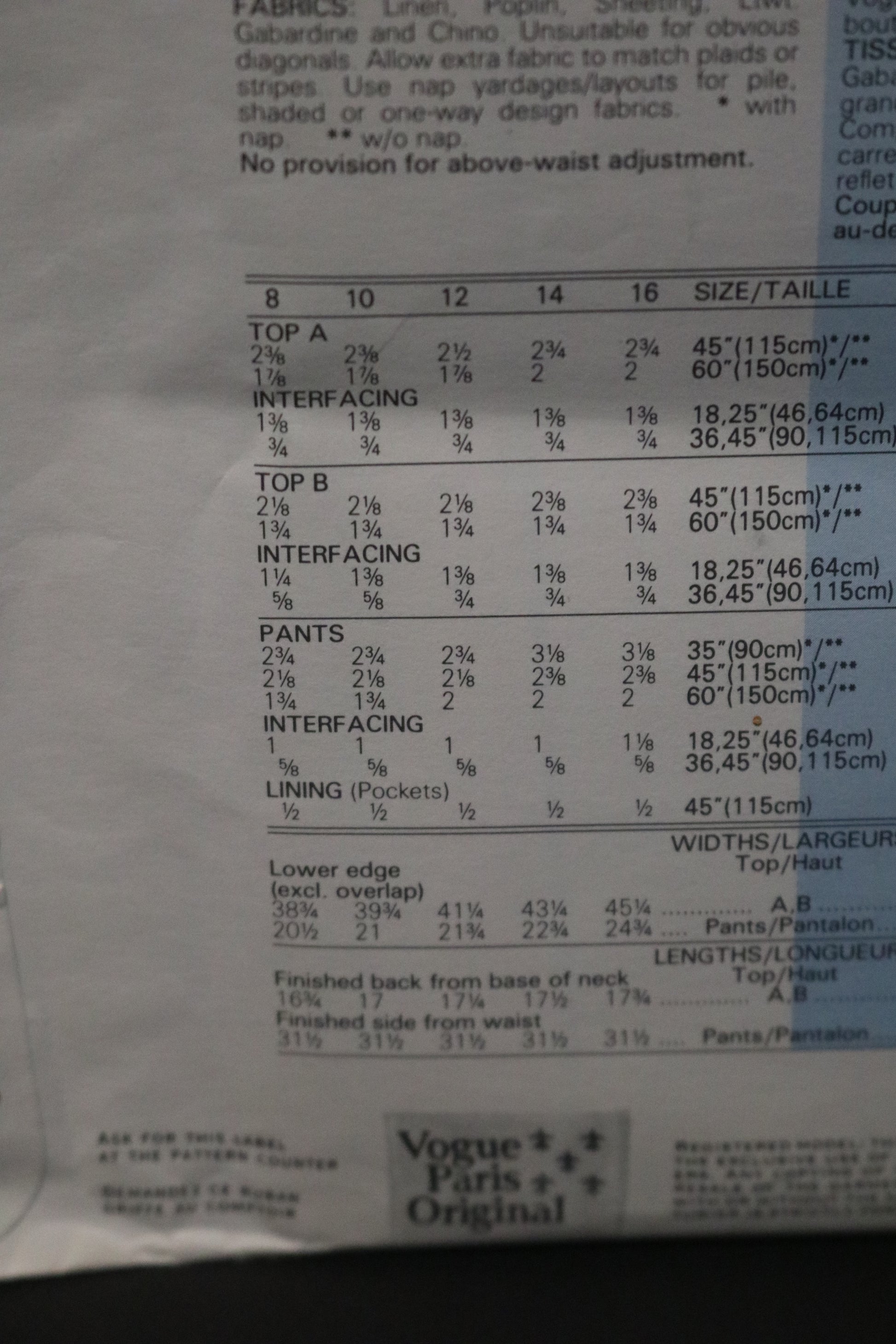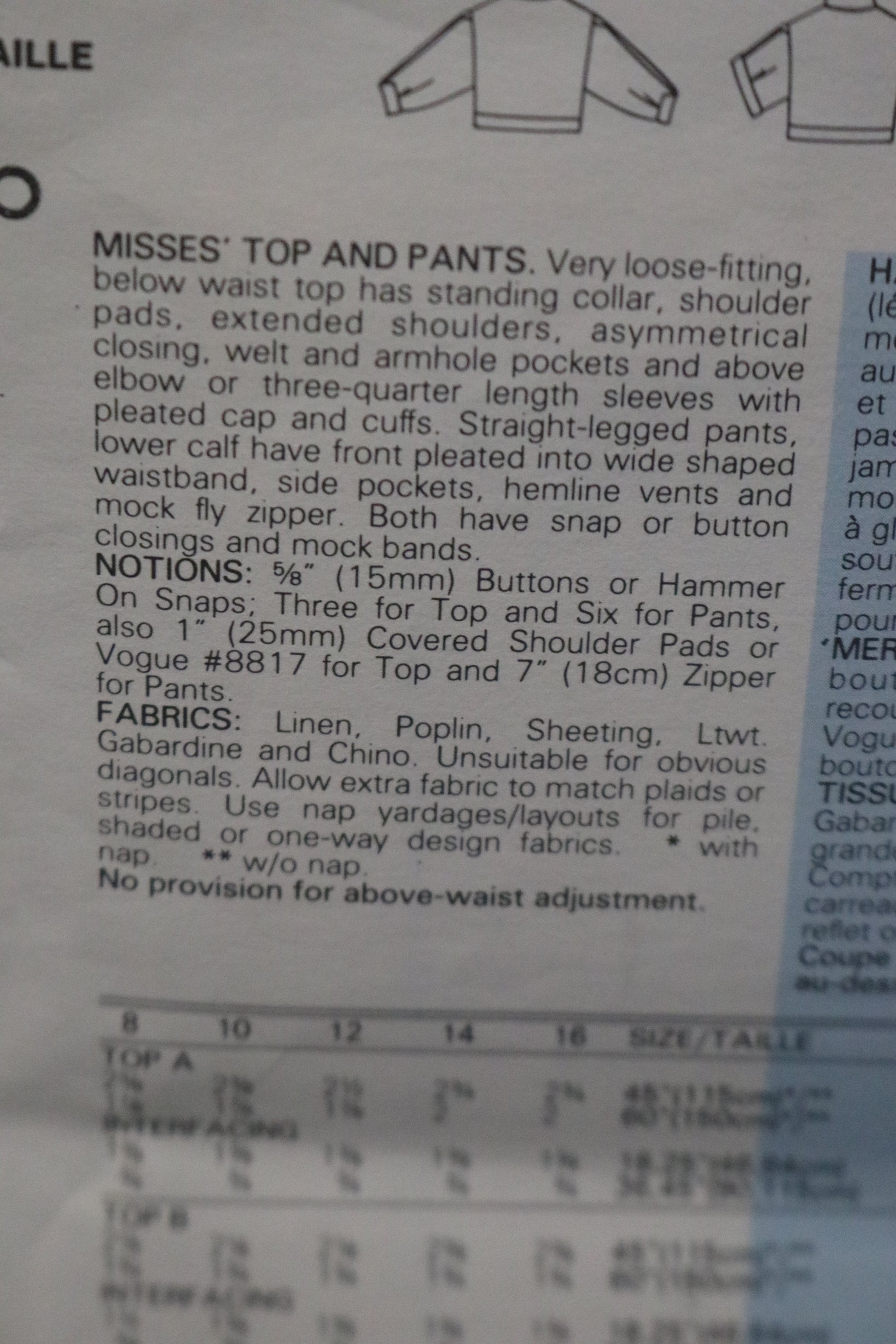 Vogue 1382 Claude Montana Misses Top and Pants Sewing Pattern