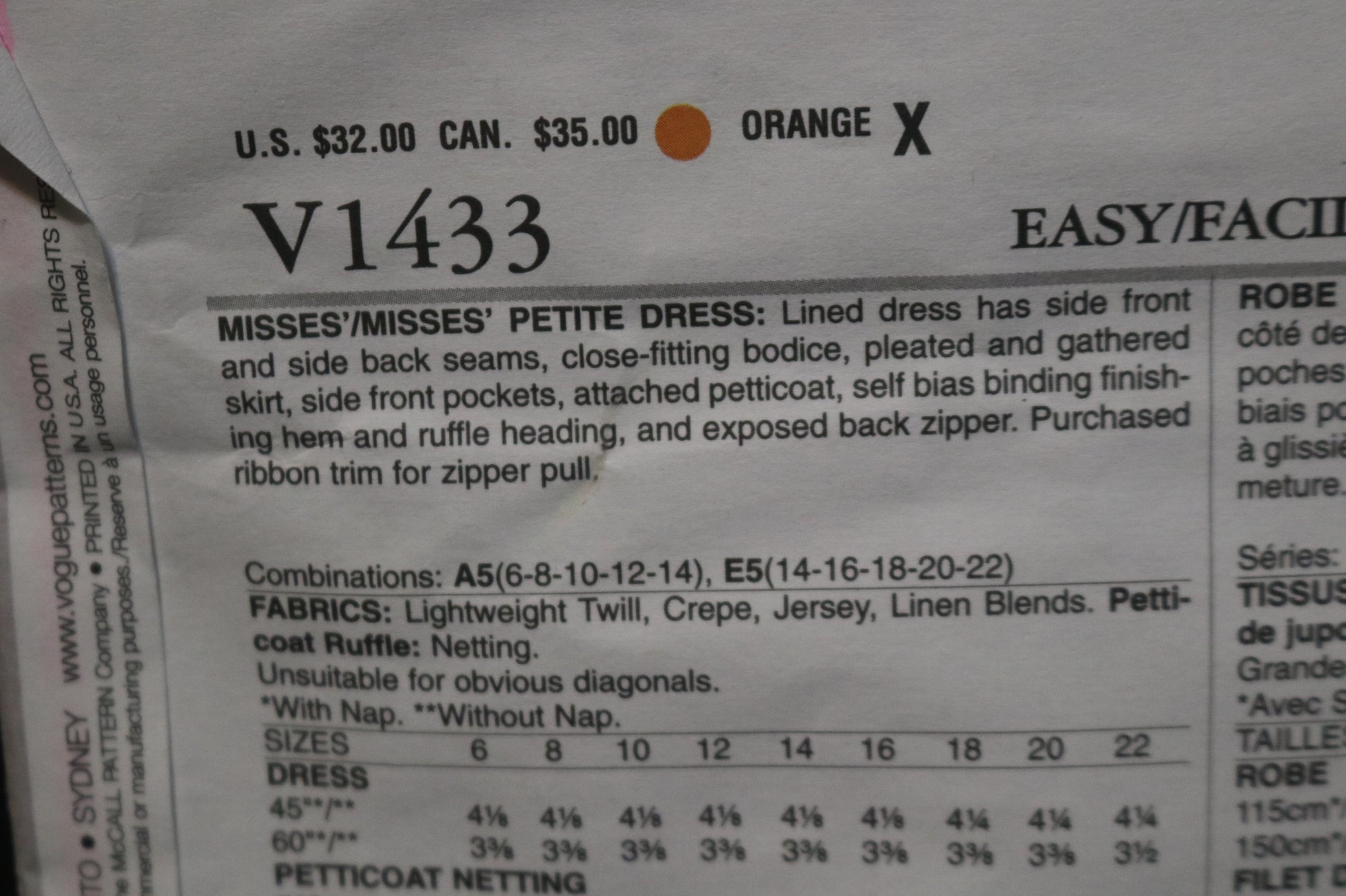 Vogue 1433 Misses / Misses Petite Dress Sewing Pattern