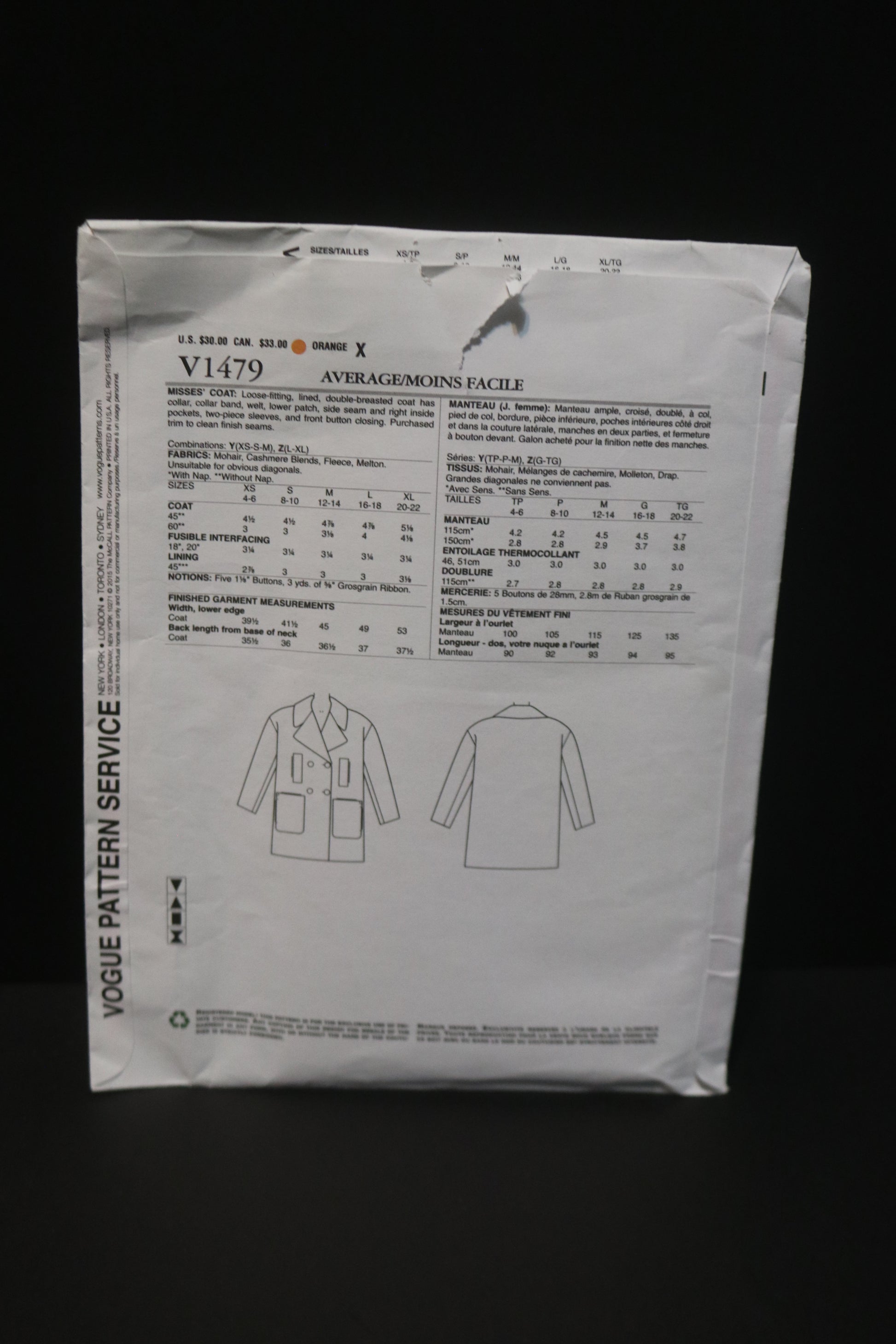 Vogue 1479 Isaac Mizrahi Misses Coat Sewing Pattern - UNCUT - Size Lrg - XxL