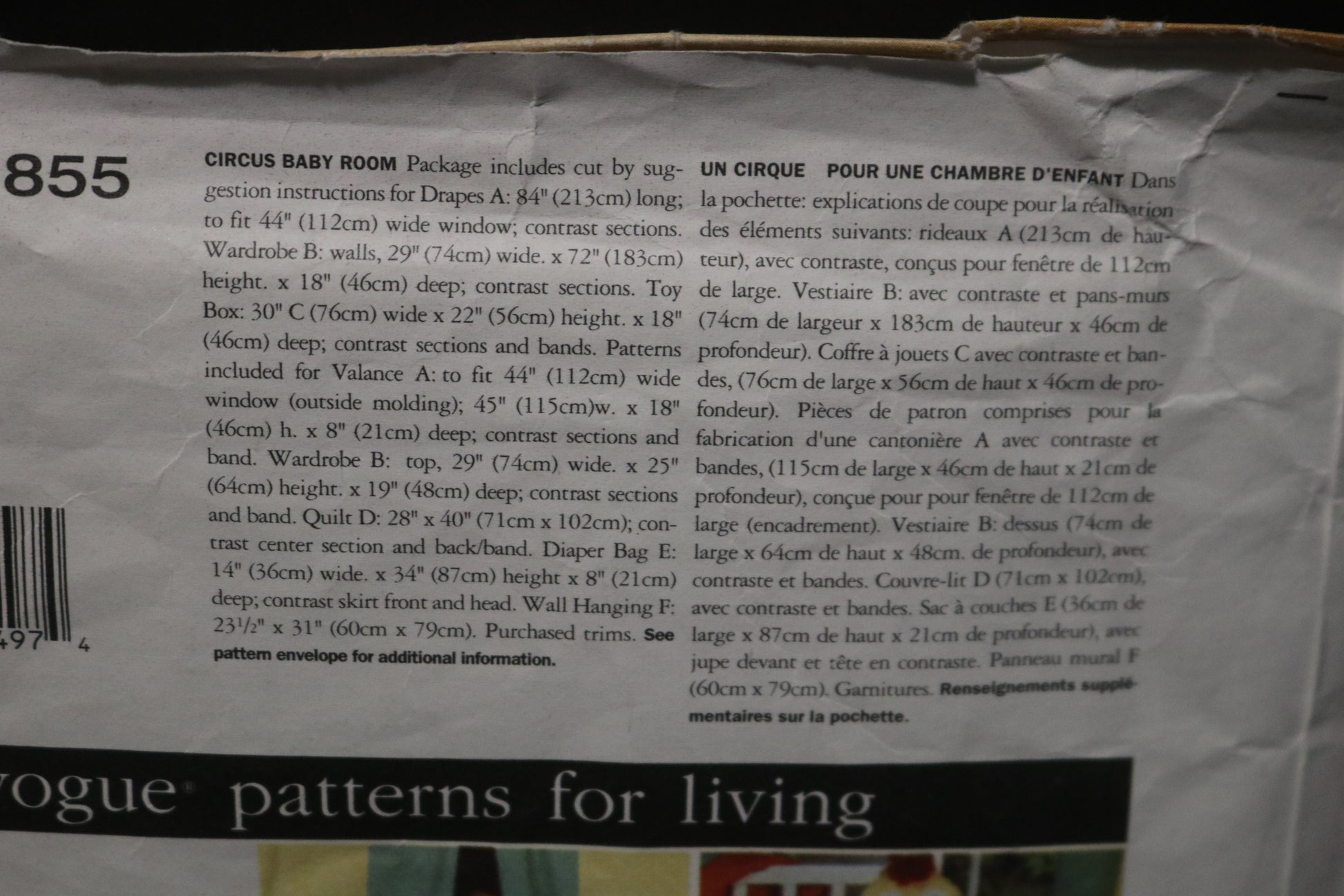 Vogue 1855 Patterns for living Circus Baby Room Sewing Pattern