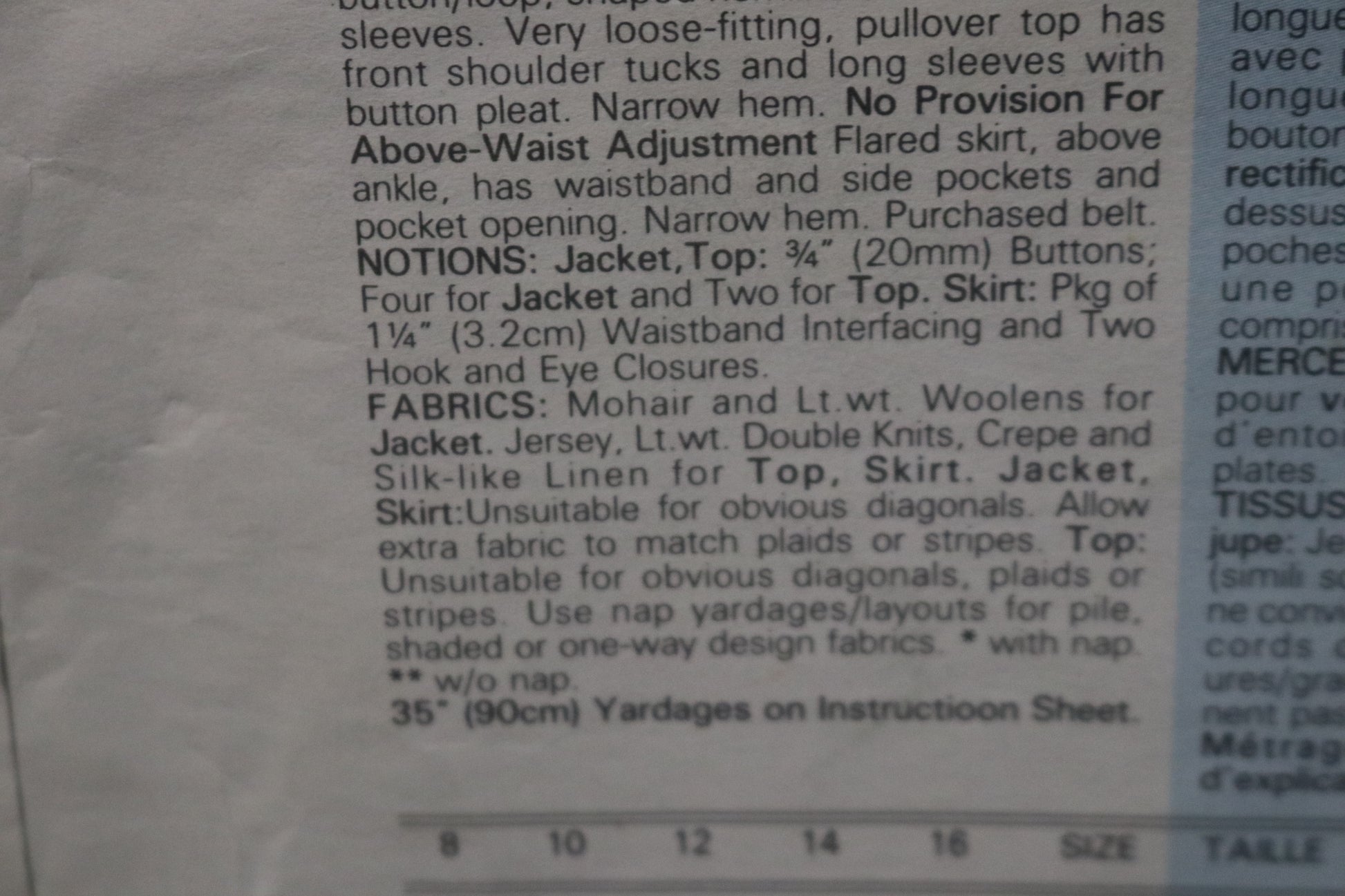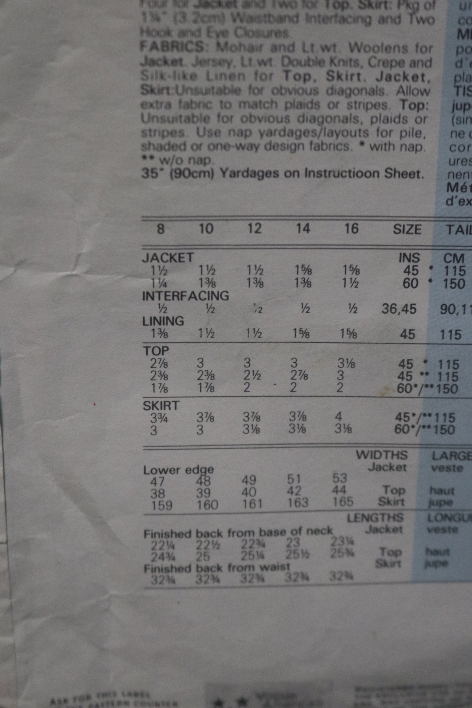 Vogue 1985 ADRI Misses Jacket Top and Skirt Sewing Pattern