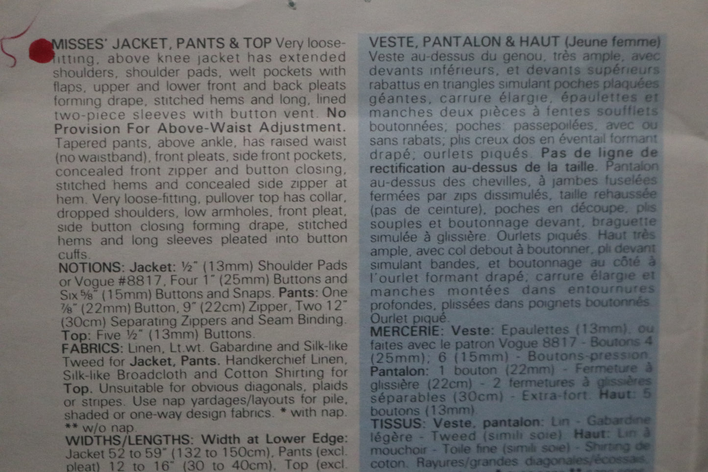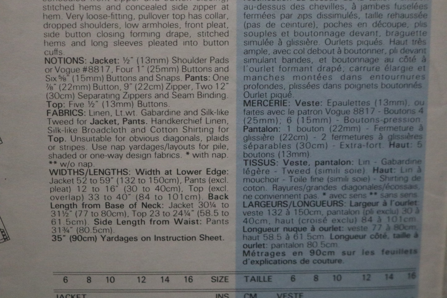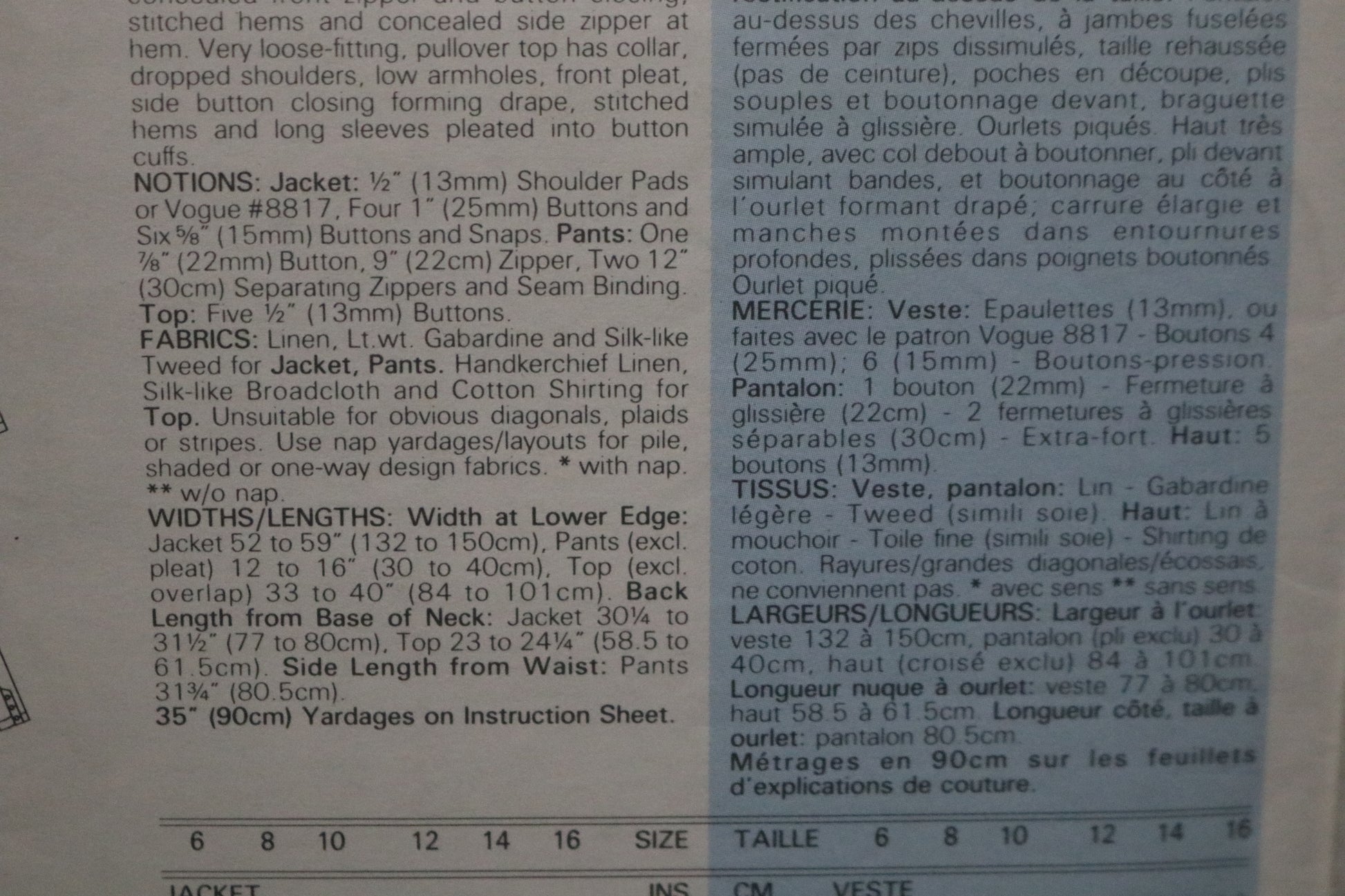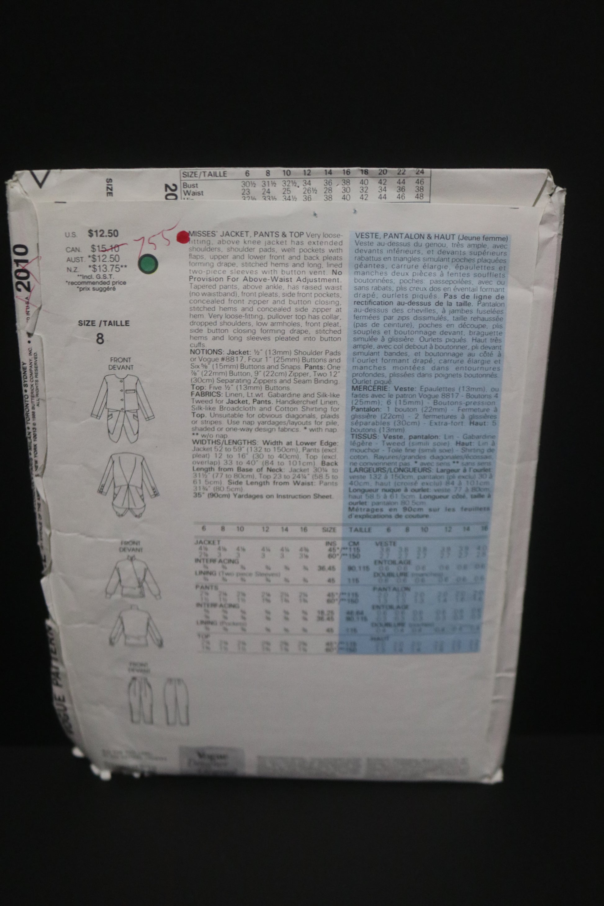 Vogue 2010 Issey Miyake Misses Jacket Pants and Top Sewing Pattern - UNCUT - Size 8