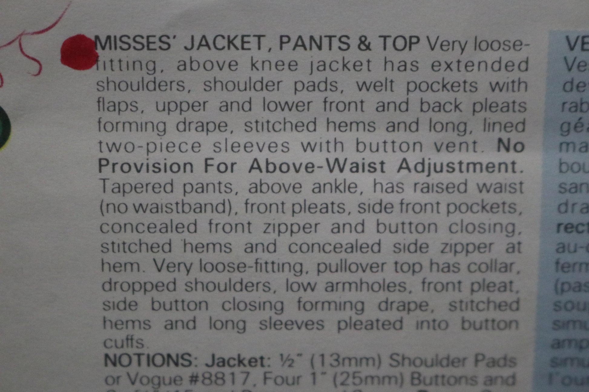 Vogue 2010 Issey Miyake Misses Jacket Pants and Top Sewing Pattern