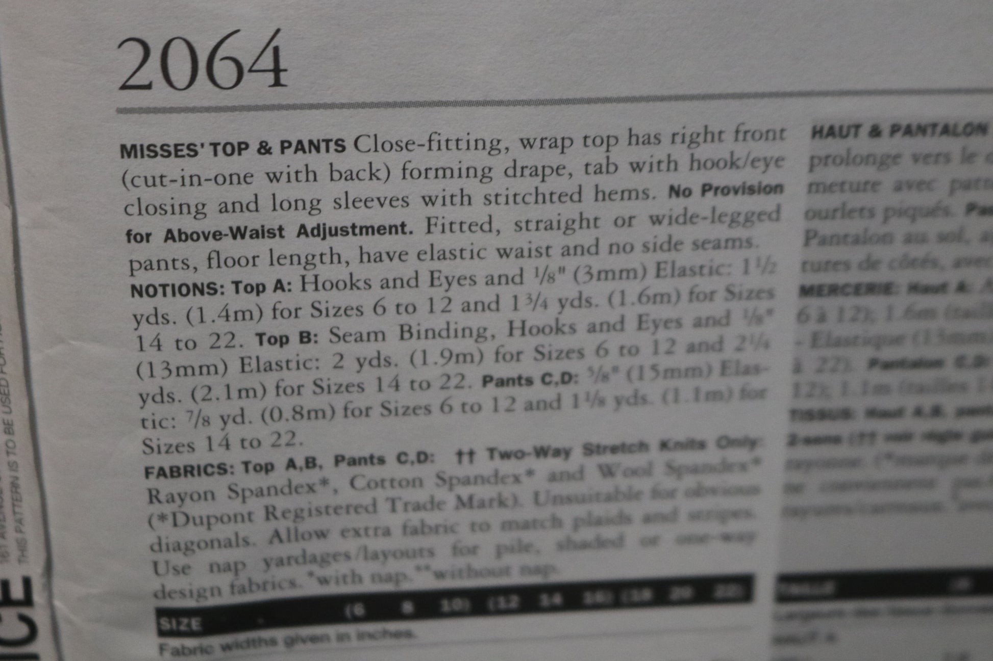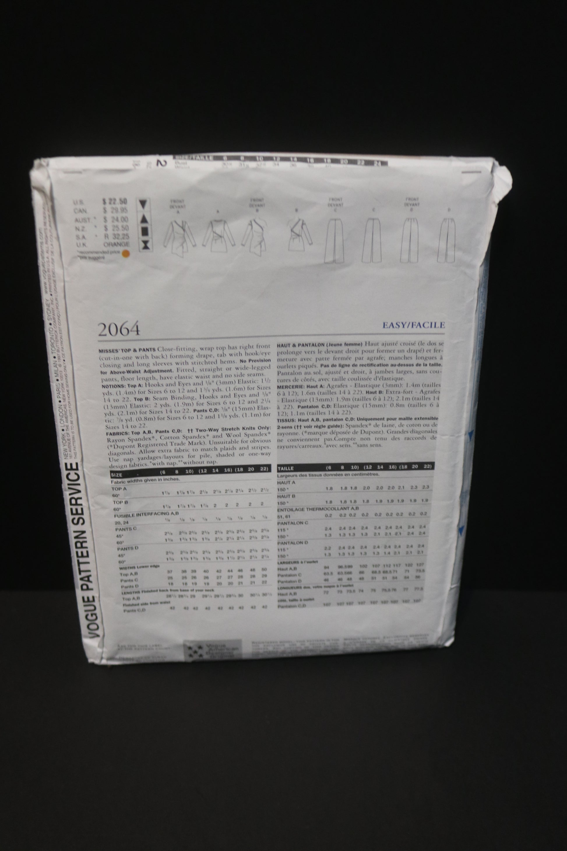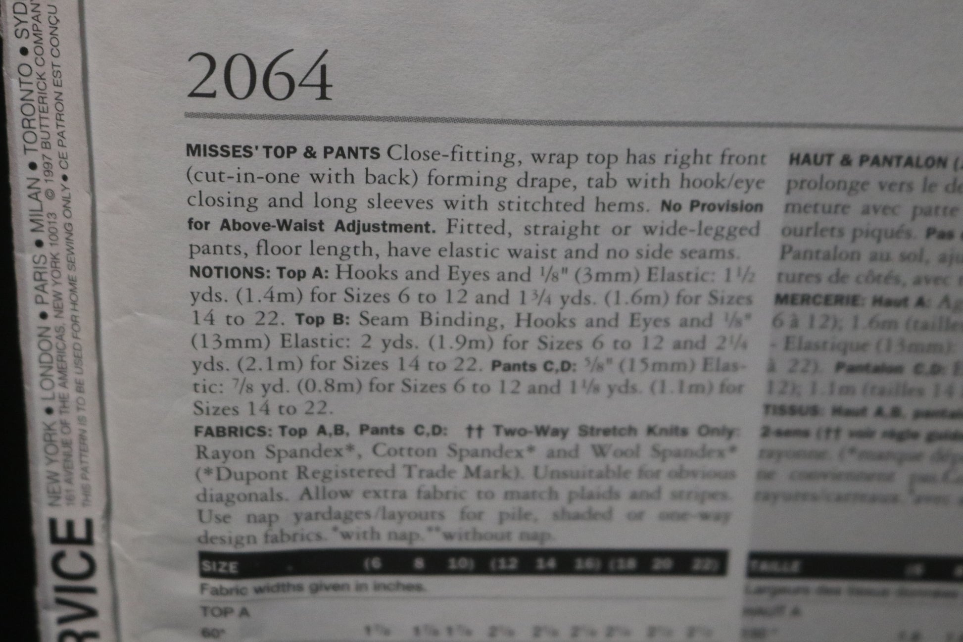 Vogue 2064 Donna Karan DKNY Misses Top and Pants Sewing Pattern