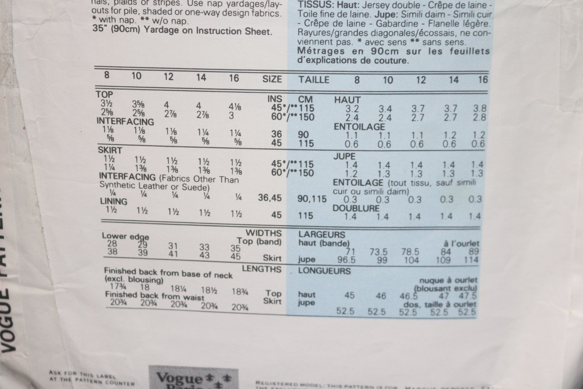 Vogue 2151 Emanuel Ungaro Misses Top and Skirt Sewing