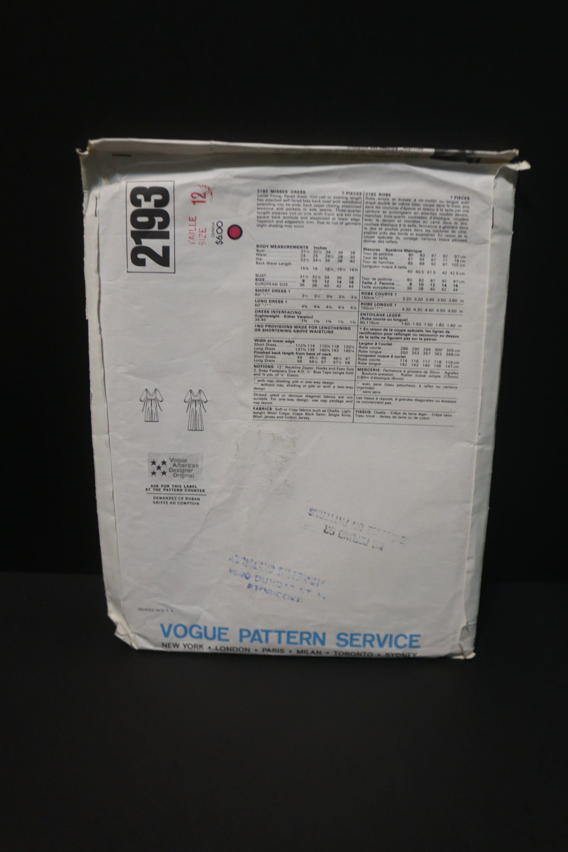 The pattern is UNCUT, the envelope is tattered