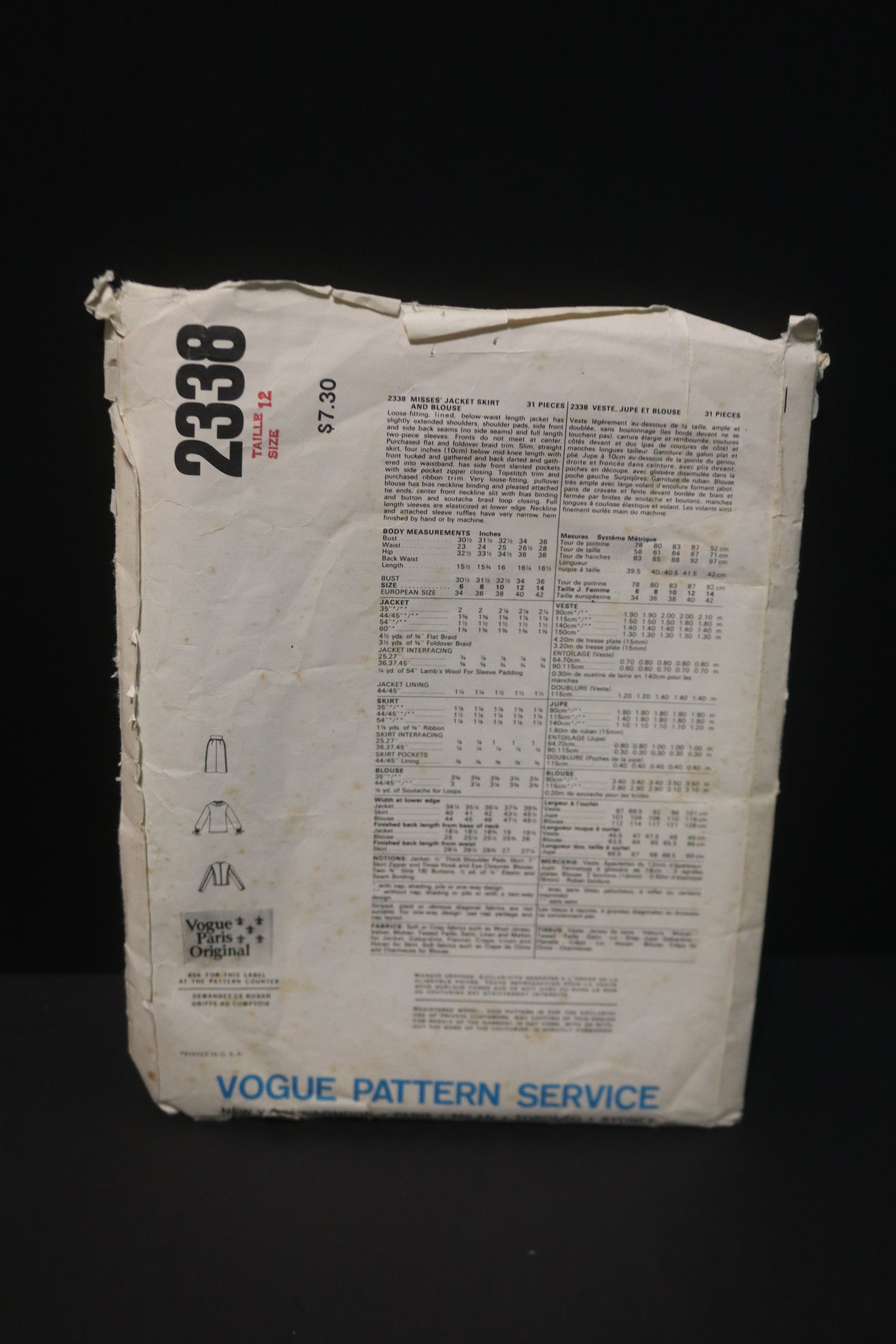 Vogue 2338 Yves Saint Laurent Misses Jacket and Dress Sewing Pattern