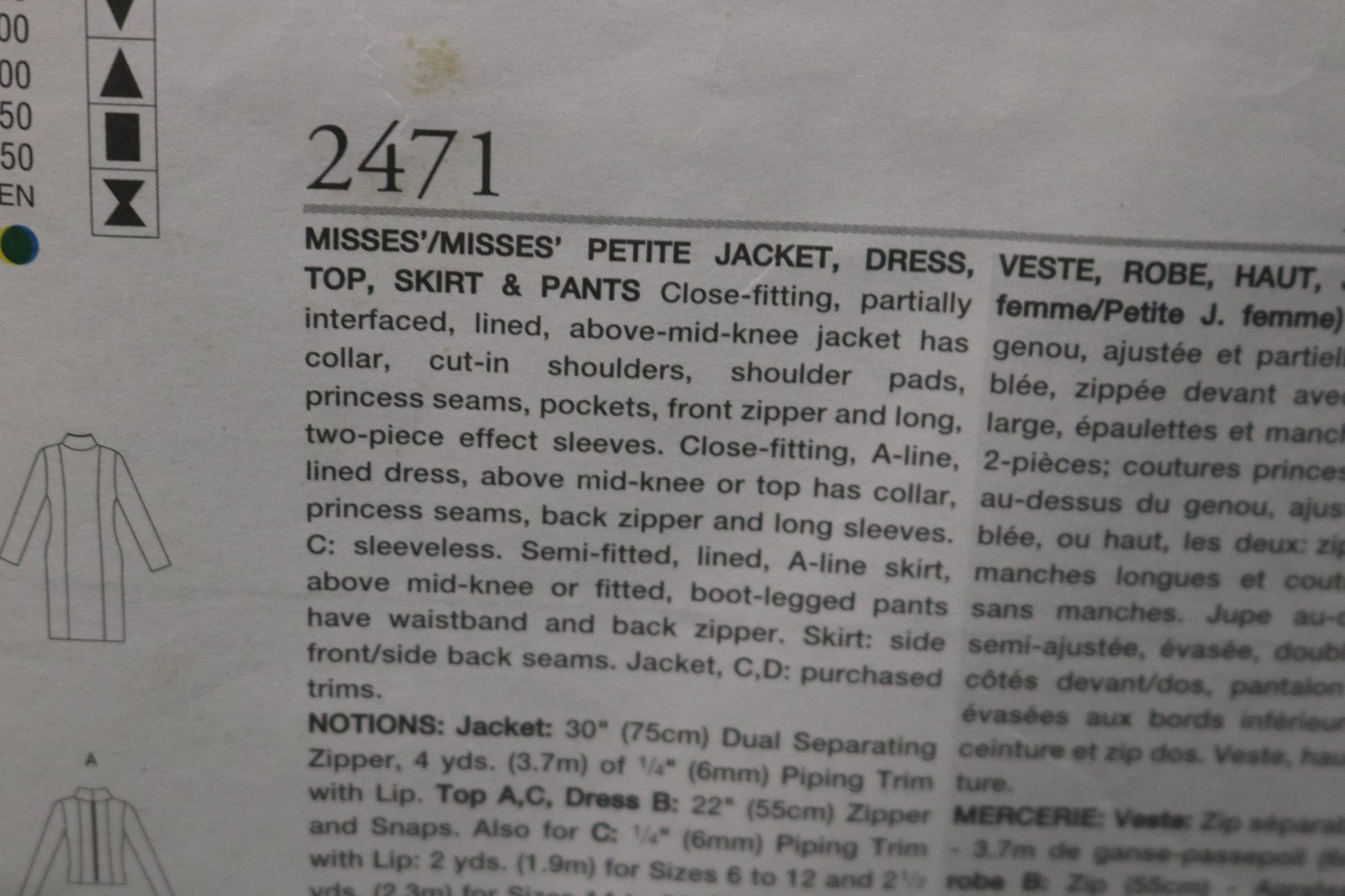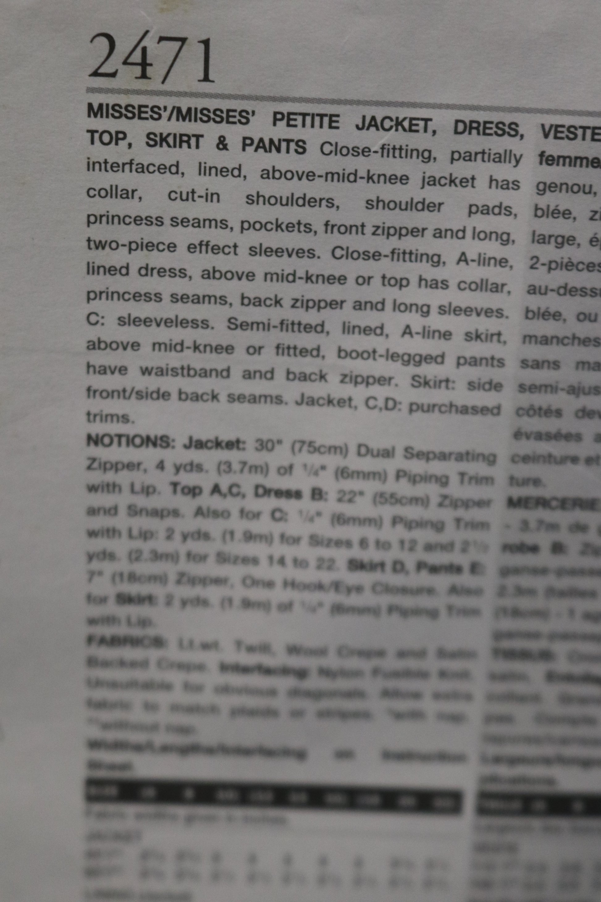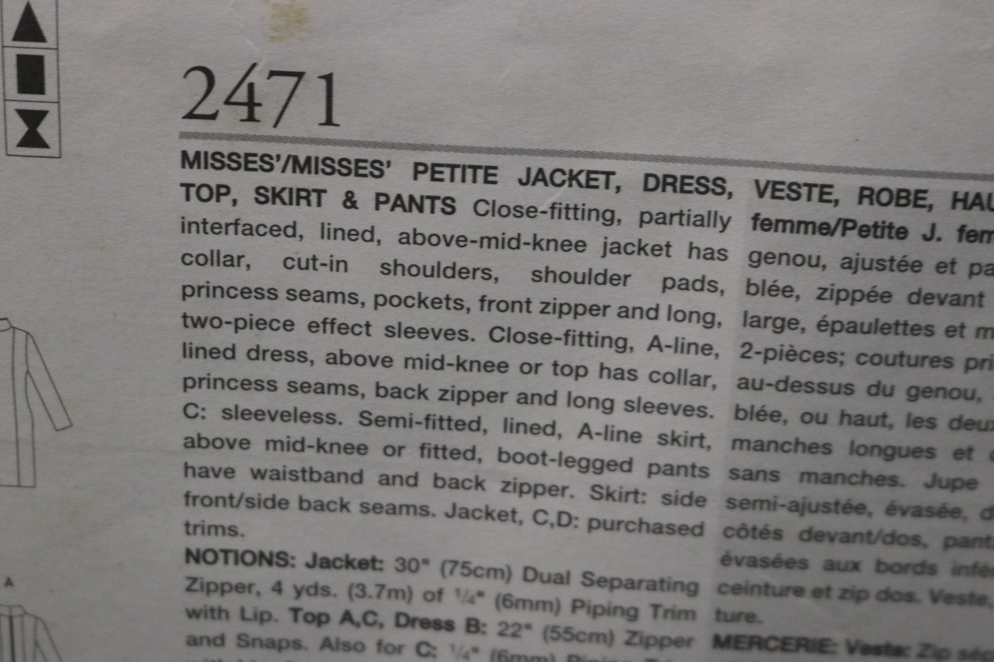 Vogue 2471 Misses / misses Petite jacket Dress Top Skirt and Pants Sewing Pattern